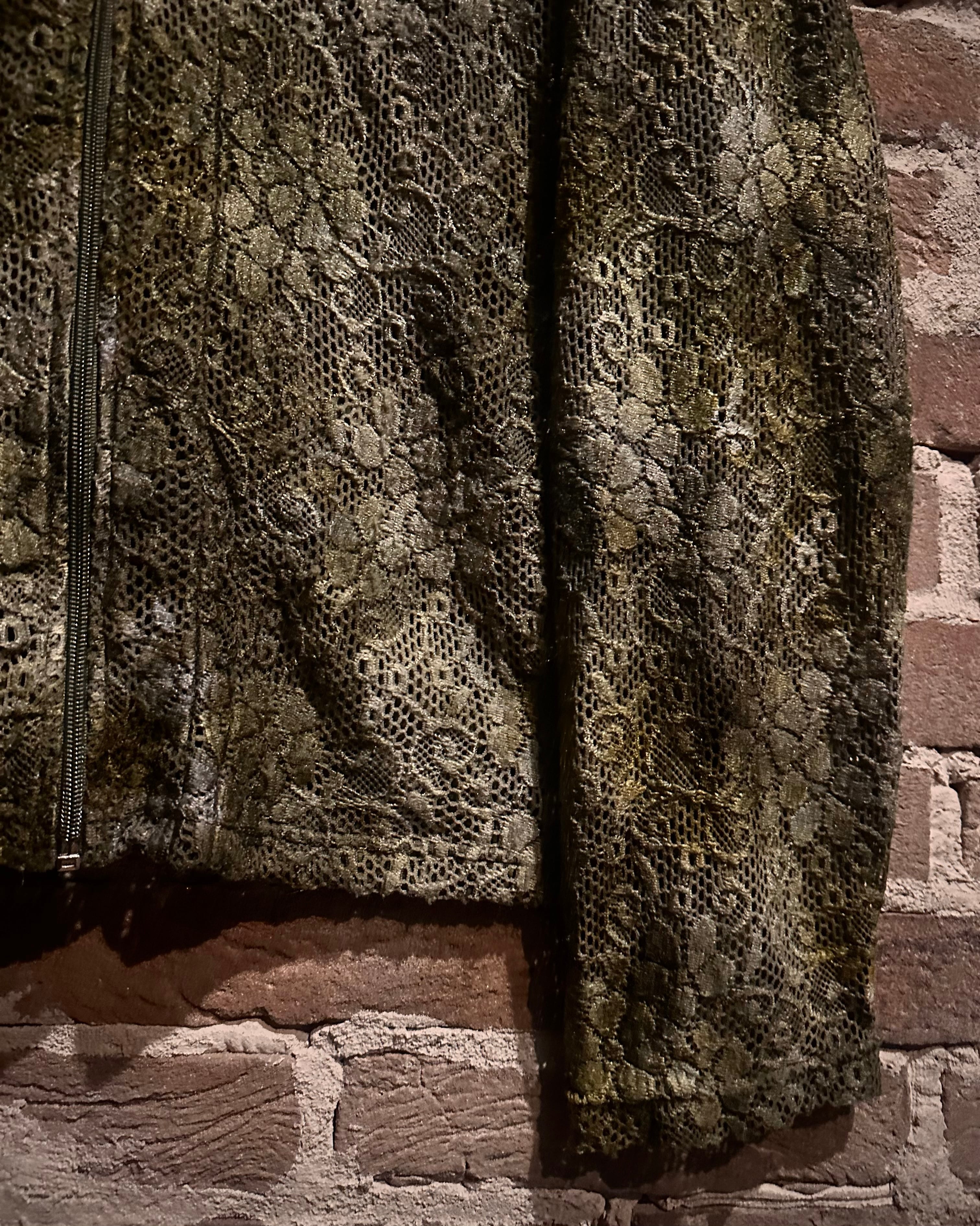 ボディはレースなので通気性も良く、薄手の素材感でジャケットとしてはもちろん、インナー使いとしても大活躍必至。いつものコーディネートにアーティスティックかつ唯一無二なエッセンスをプラスしてくれるかと。