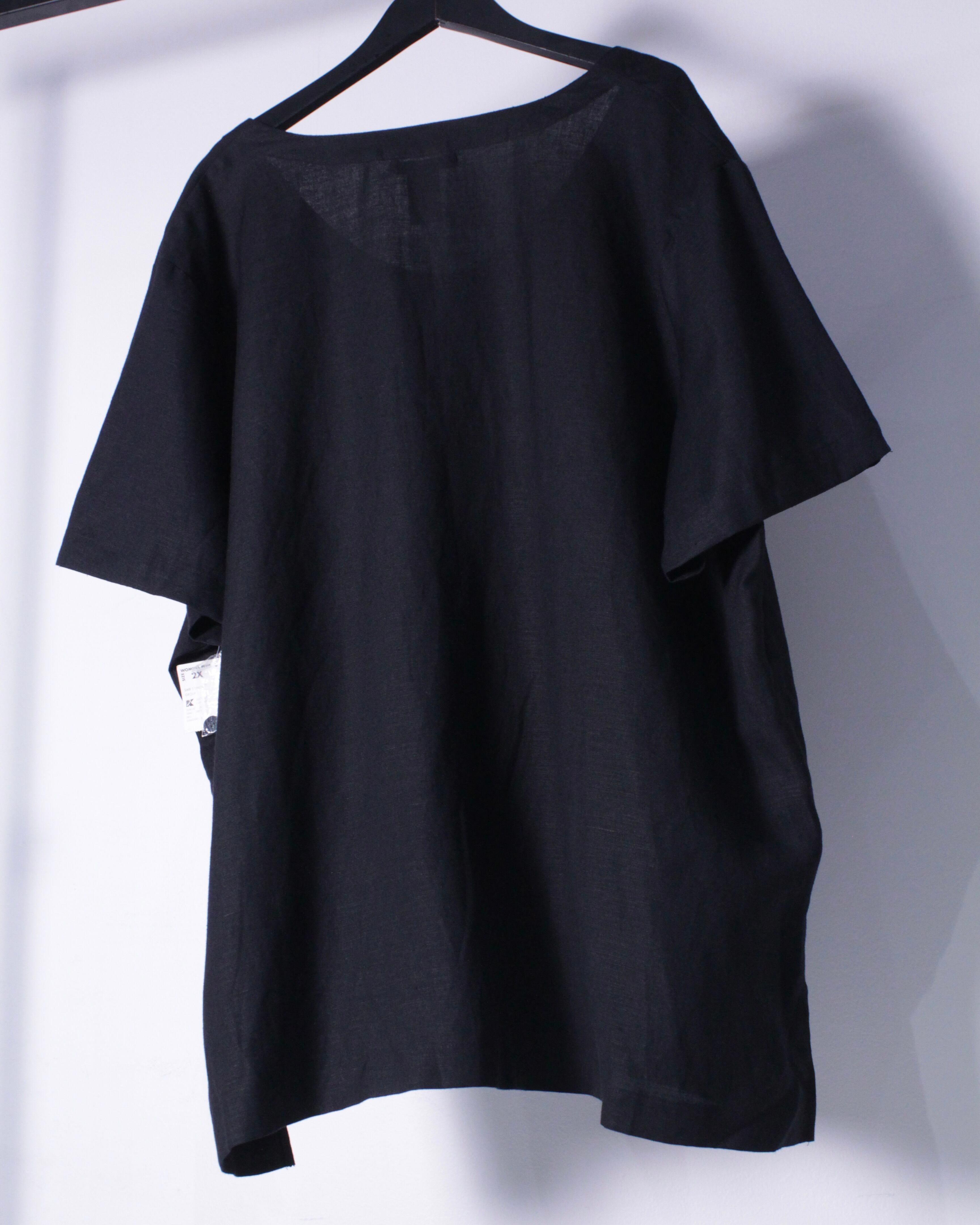 リネンとレーヨンを混紡したボディも言わずもがな着心地抜群、ドライな手触りの中にレーヨンの柔らかさが潜んだ、極上の着心地を誇ります。