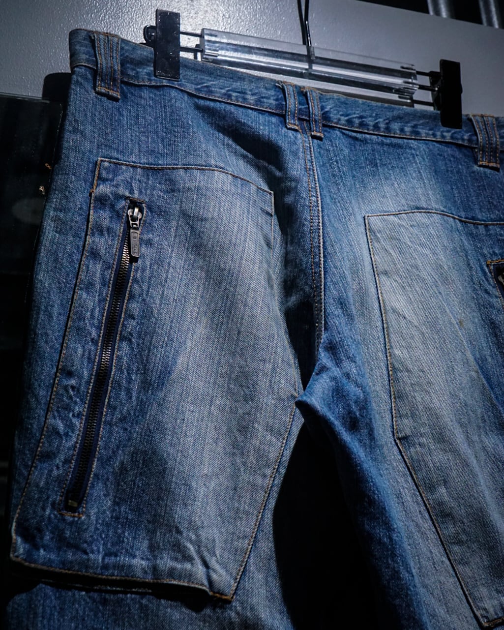 フェードの効いたインディゴデニムをボディに用い、マルチなポケットによるデザインが施されたデニムパンツ。