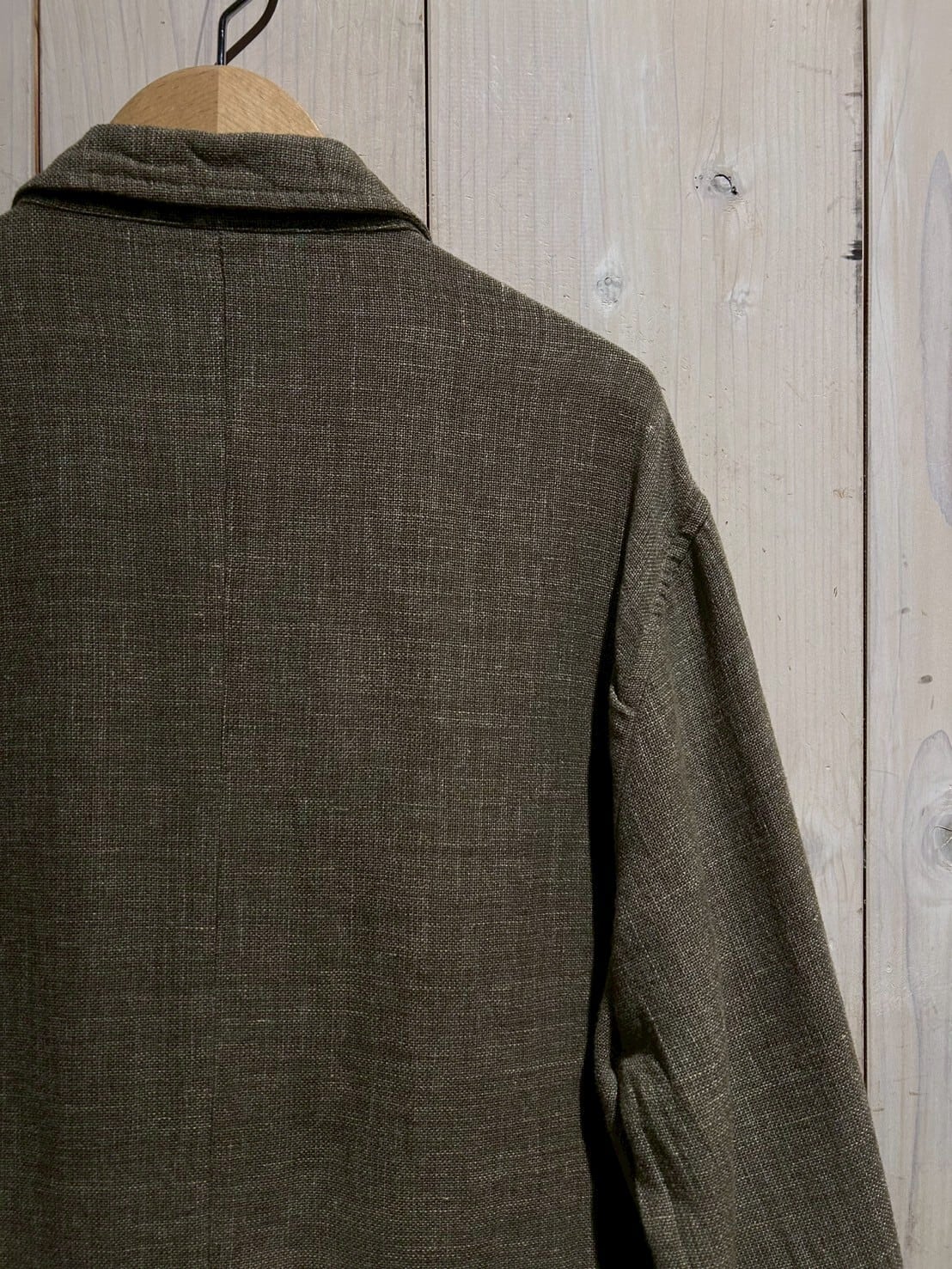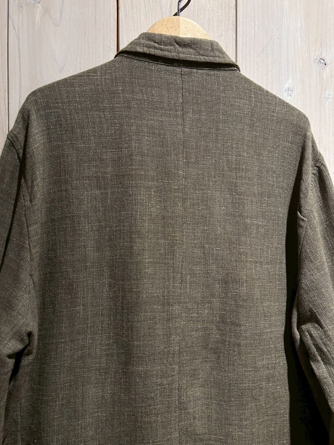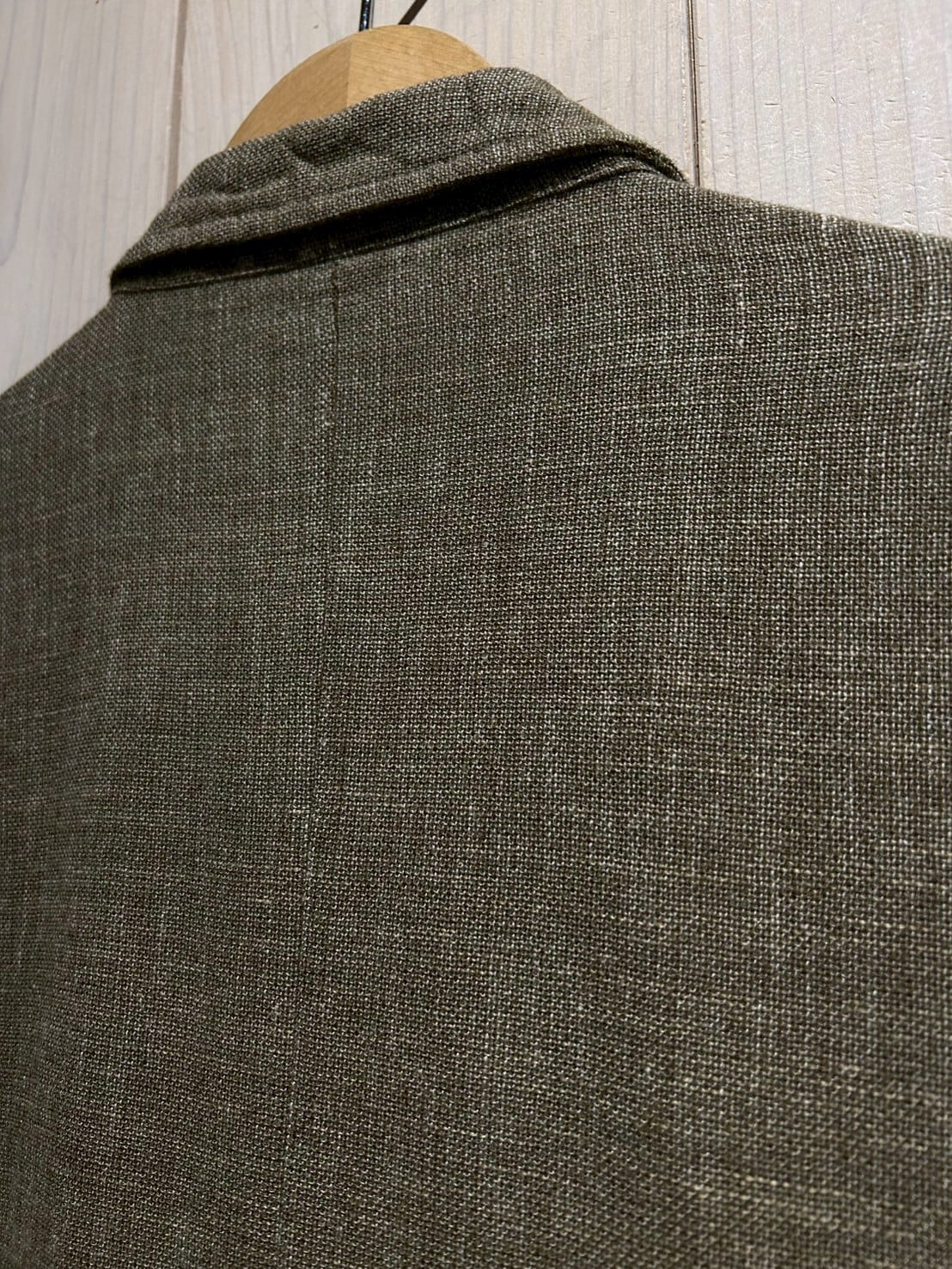 ルーズなサイズ感でインナーに仕込むアイテムの幅も広く、リネンを用いたことで着用感も非常に軽い。今の季節のアウターとして持ってこい。胸元は美しいネックラインで、ジャケットとしては勿論、コートやレザーアイテムとのレイヤードにも重宝間違いなし。