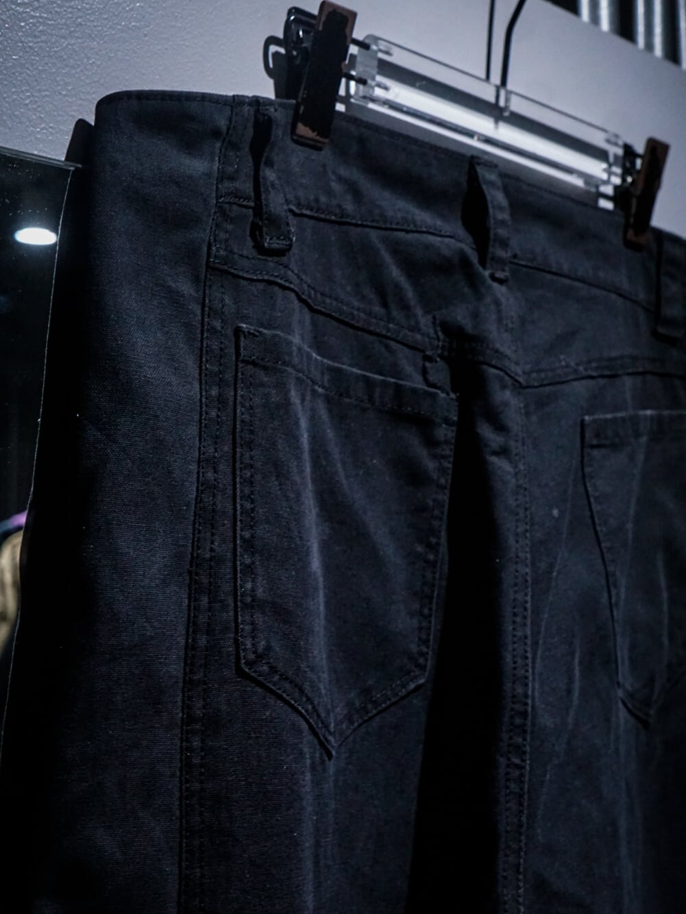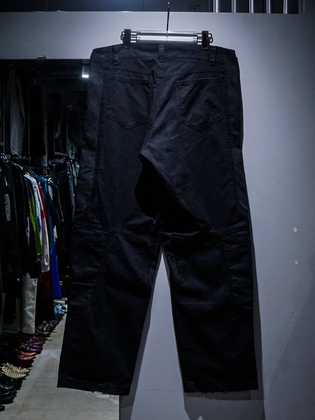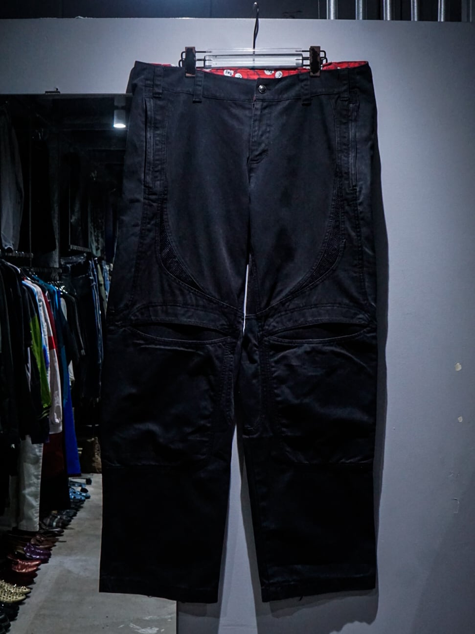 タフなブラックのボディに、モーターサイクルパンツならではの機能的な切り替えが施された1着。