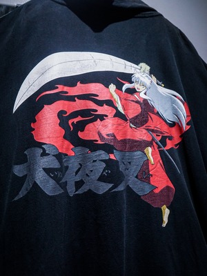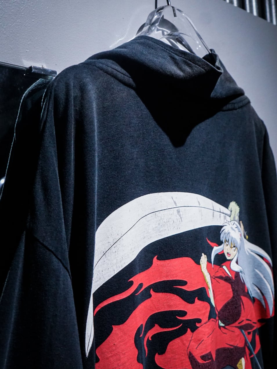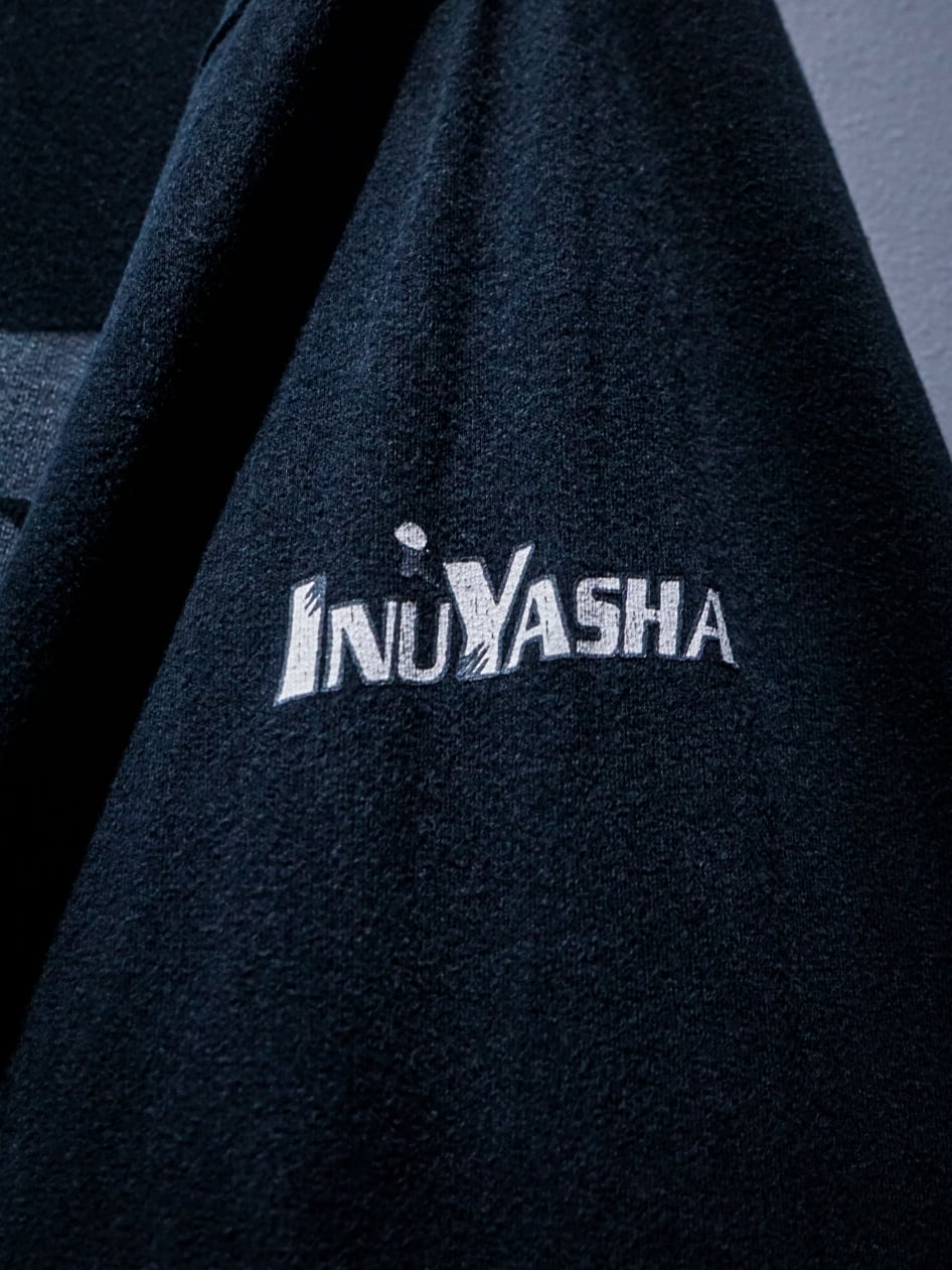 フェード感の良いブラックのボディをベースに、フロントにはネーム、背面には主人公"犬夜叉"の躍動感のあるプリントをON。アームに載せられた英語の"INUYASHA"の文字が絶妙にナードな雰囲気を漂わせています。
