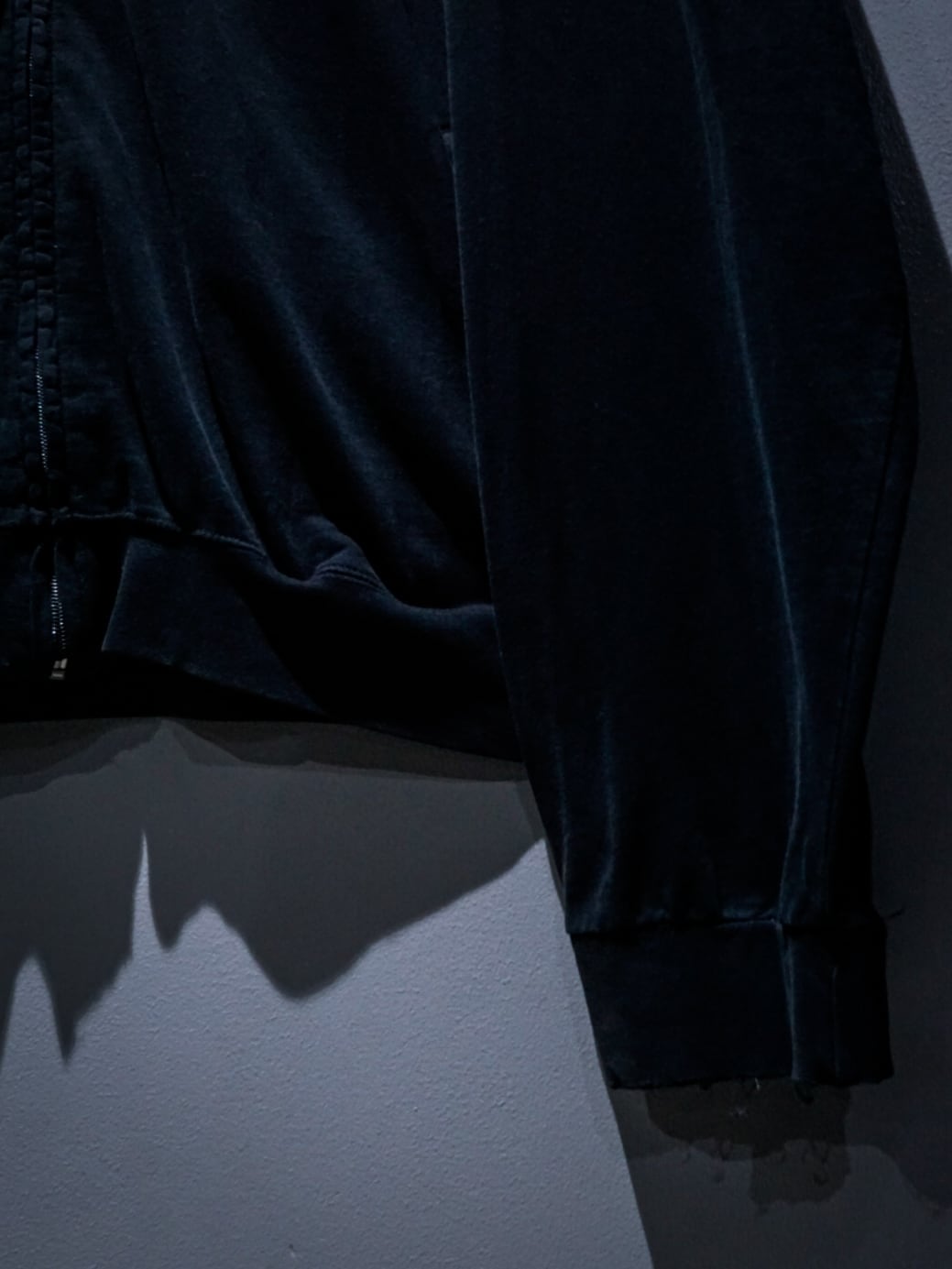 ルーズなサイジングで肩からの落ち感も良く、フルジップでスタンドカラー、襟を作ったりと様々な着こなしをお楽しみいただけます。