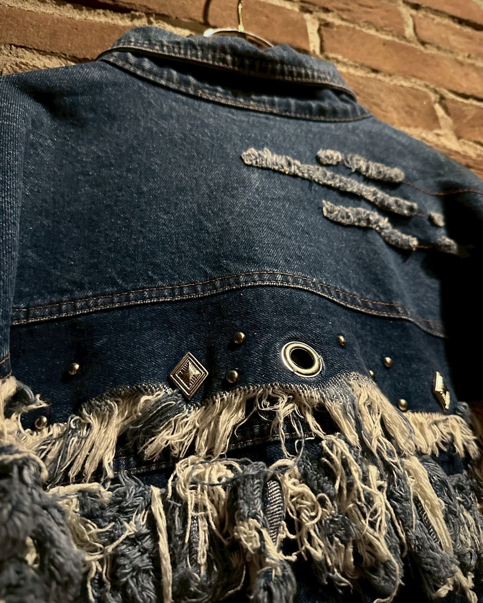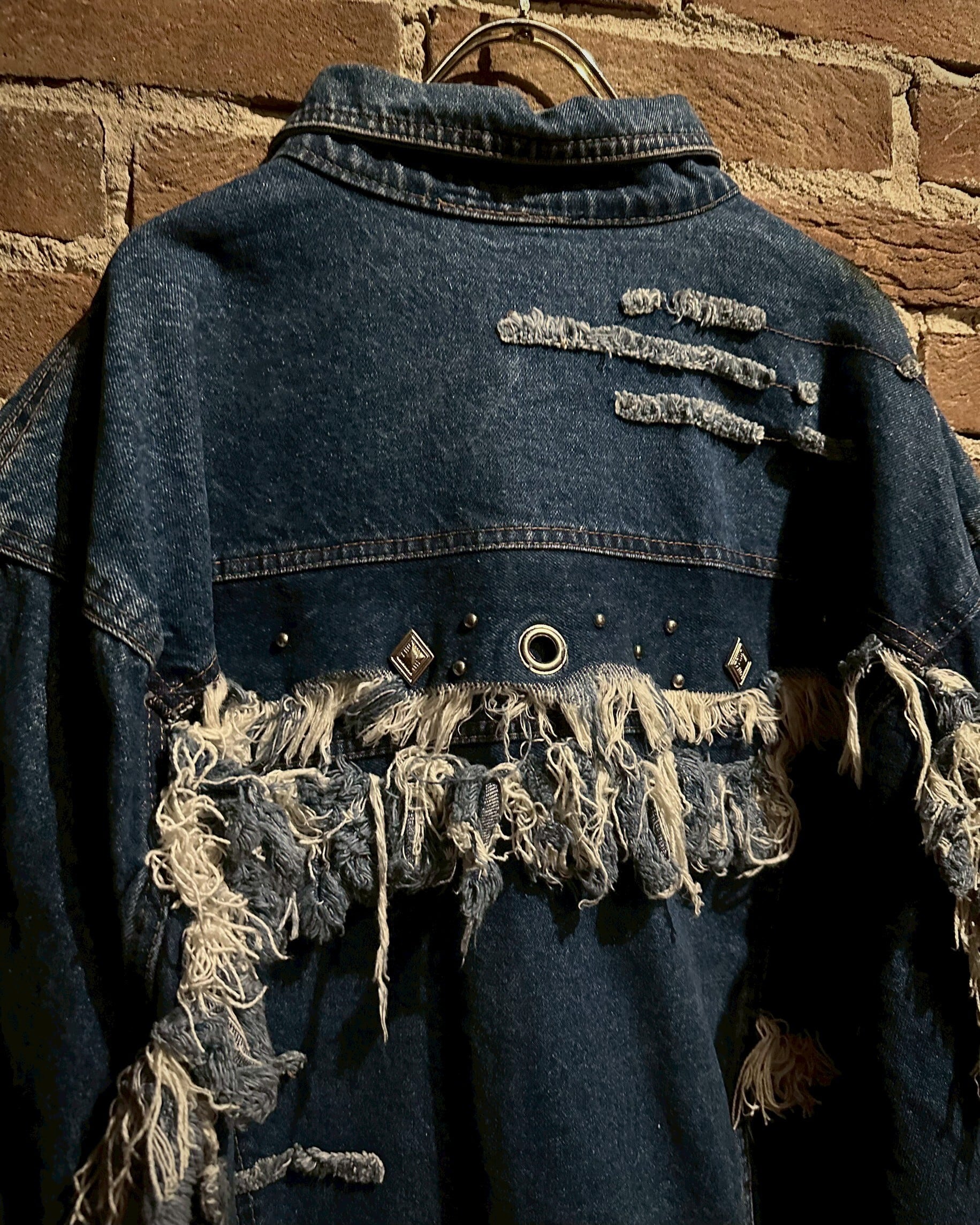 インディゴブルーのボディに、随所にフリンジを施した唯一無二な雰囲気を漂わせるデニムジャケット。
