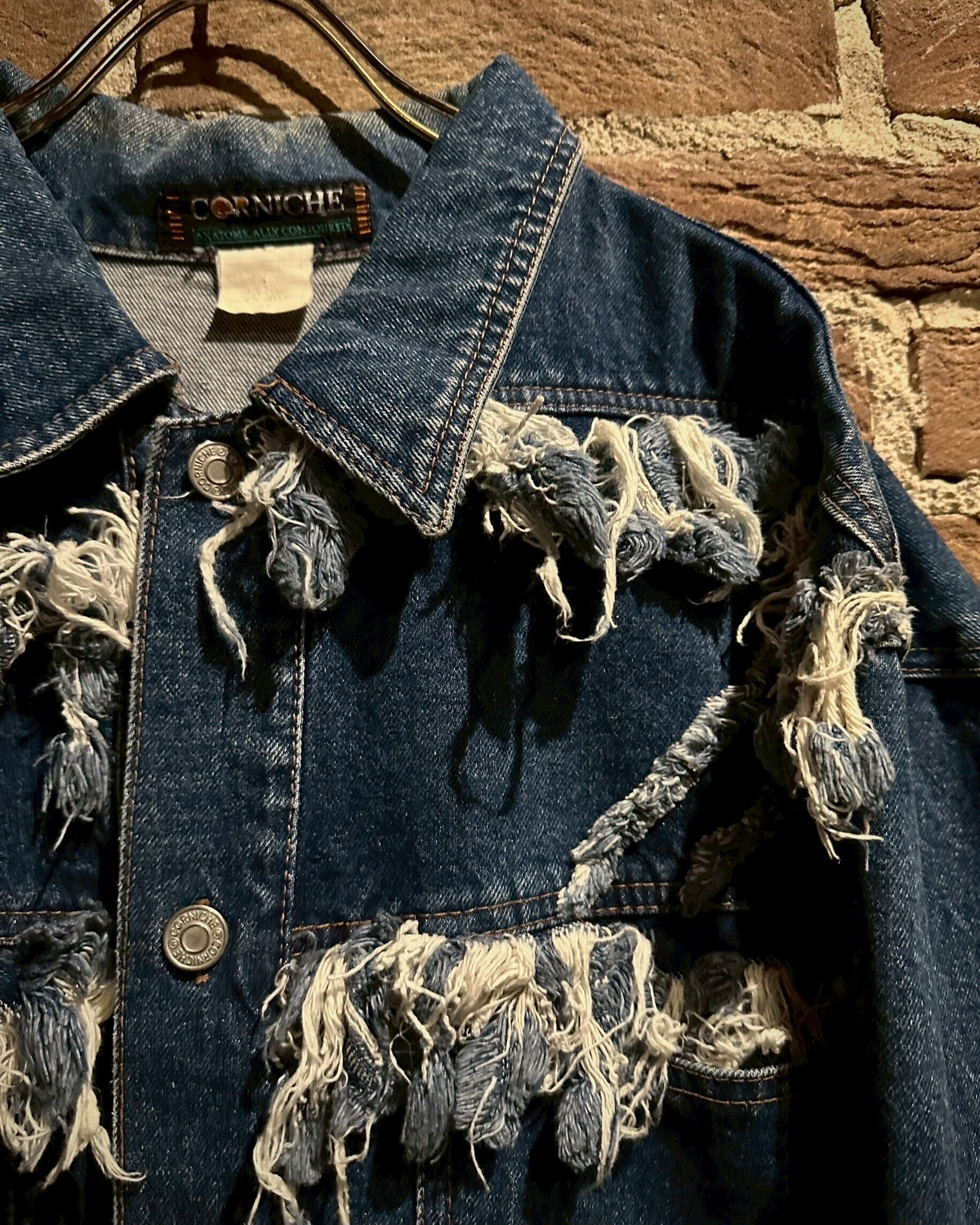 古着の定番アイテムとして安定的な人気を保ち続けるデニムジャケット。その中でも一風変わった存在感を放つ、デザイン性に富んだ稀有な逸品となっております。