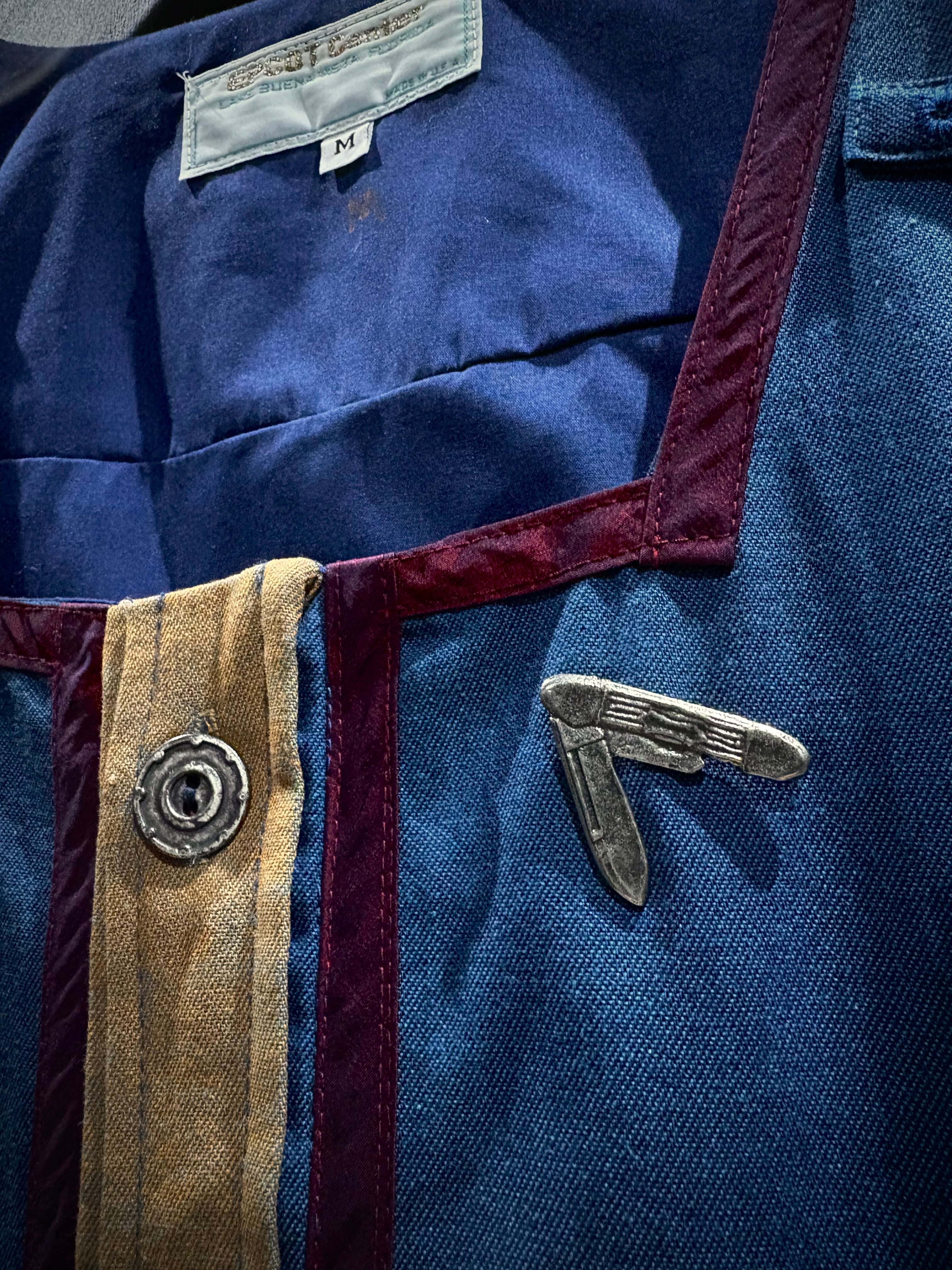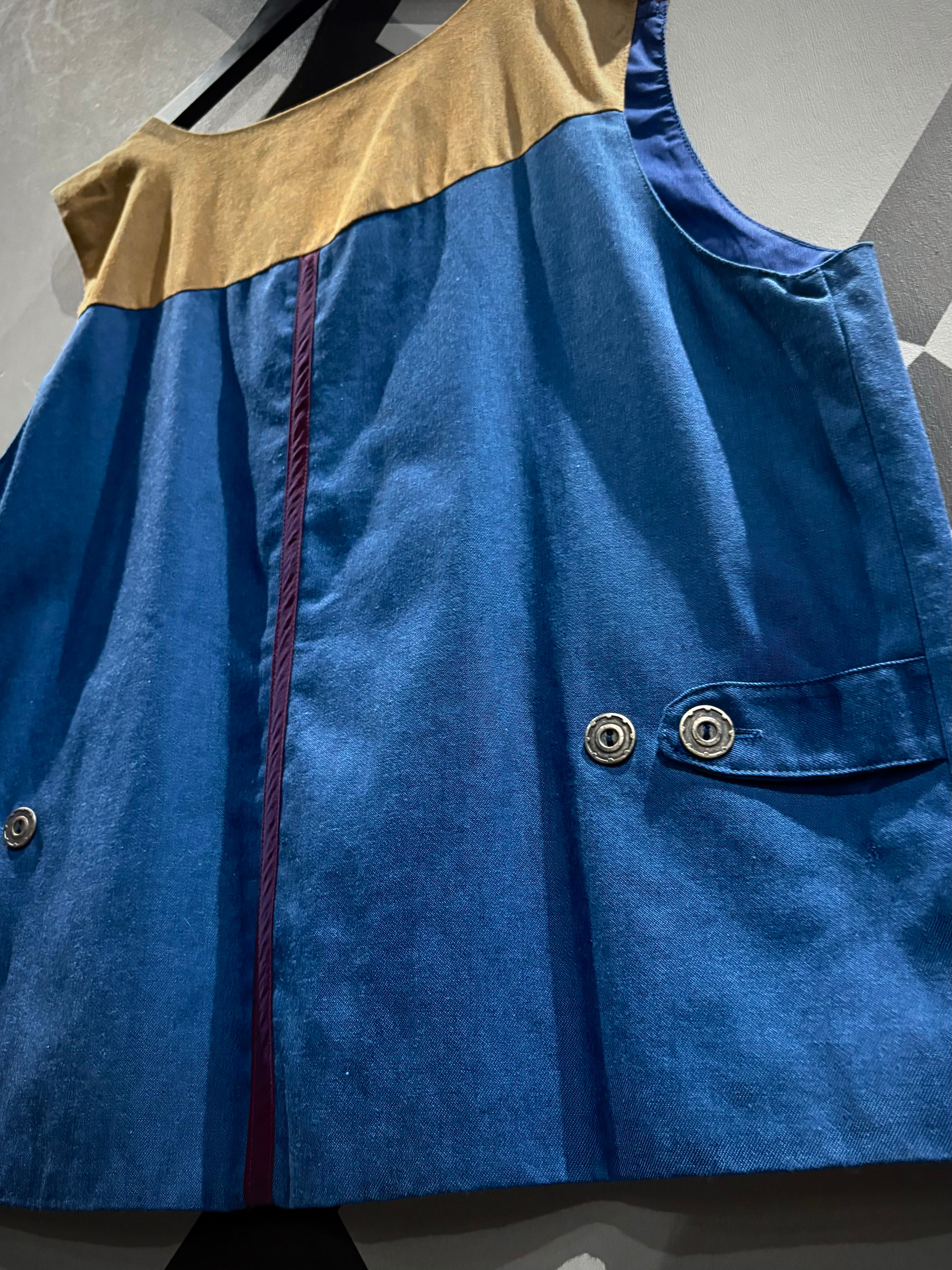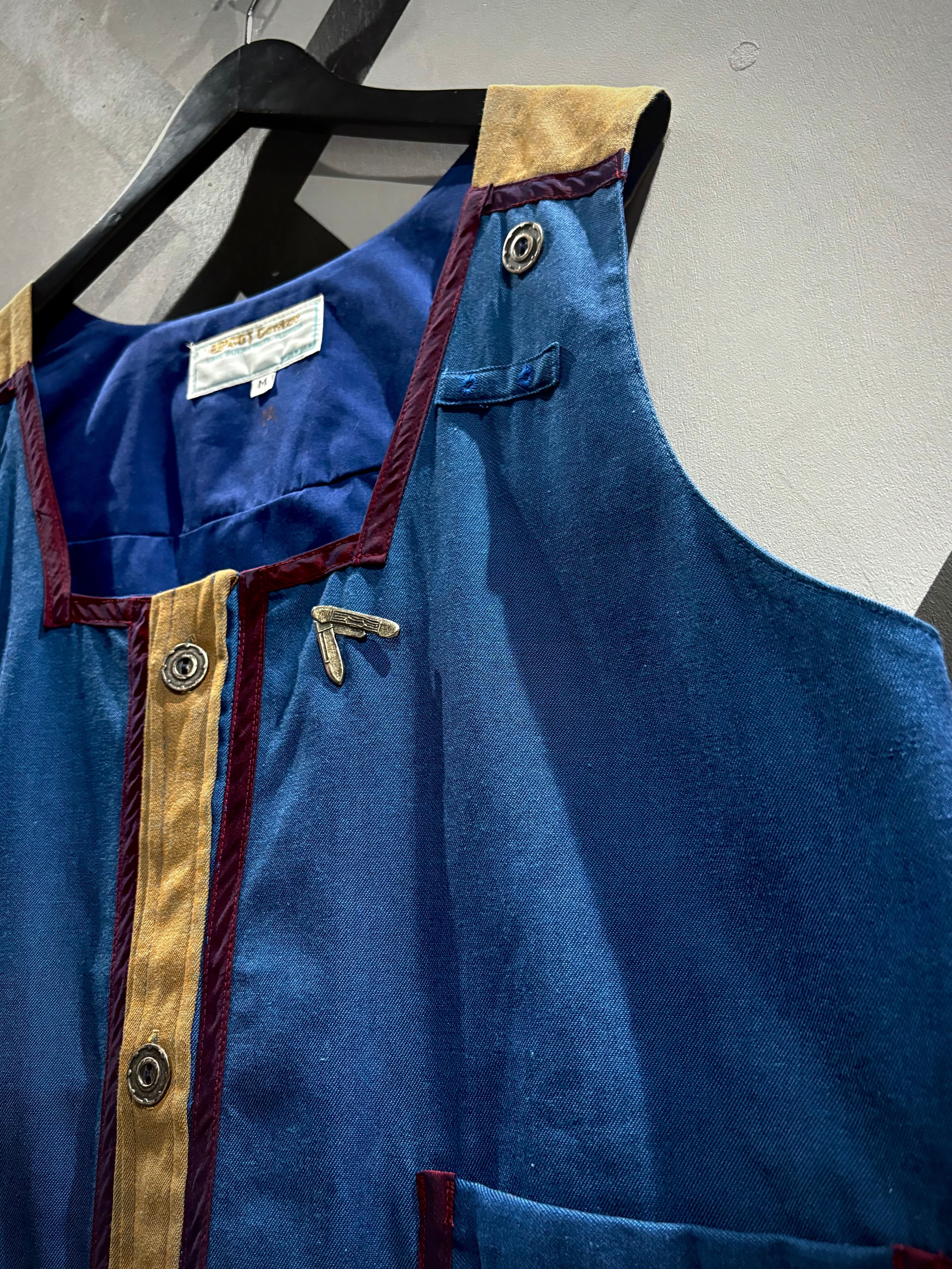 チロリアンモノの中でも鮮やかなカラーのアイテムは珍しいですね。装飾が施されたボタンや大きめのポケット、背面のアジャスターベルトのディテールも◎