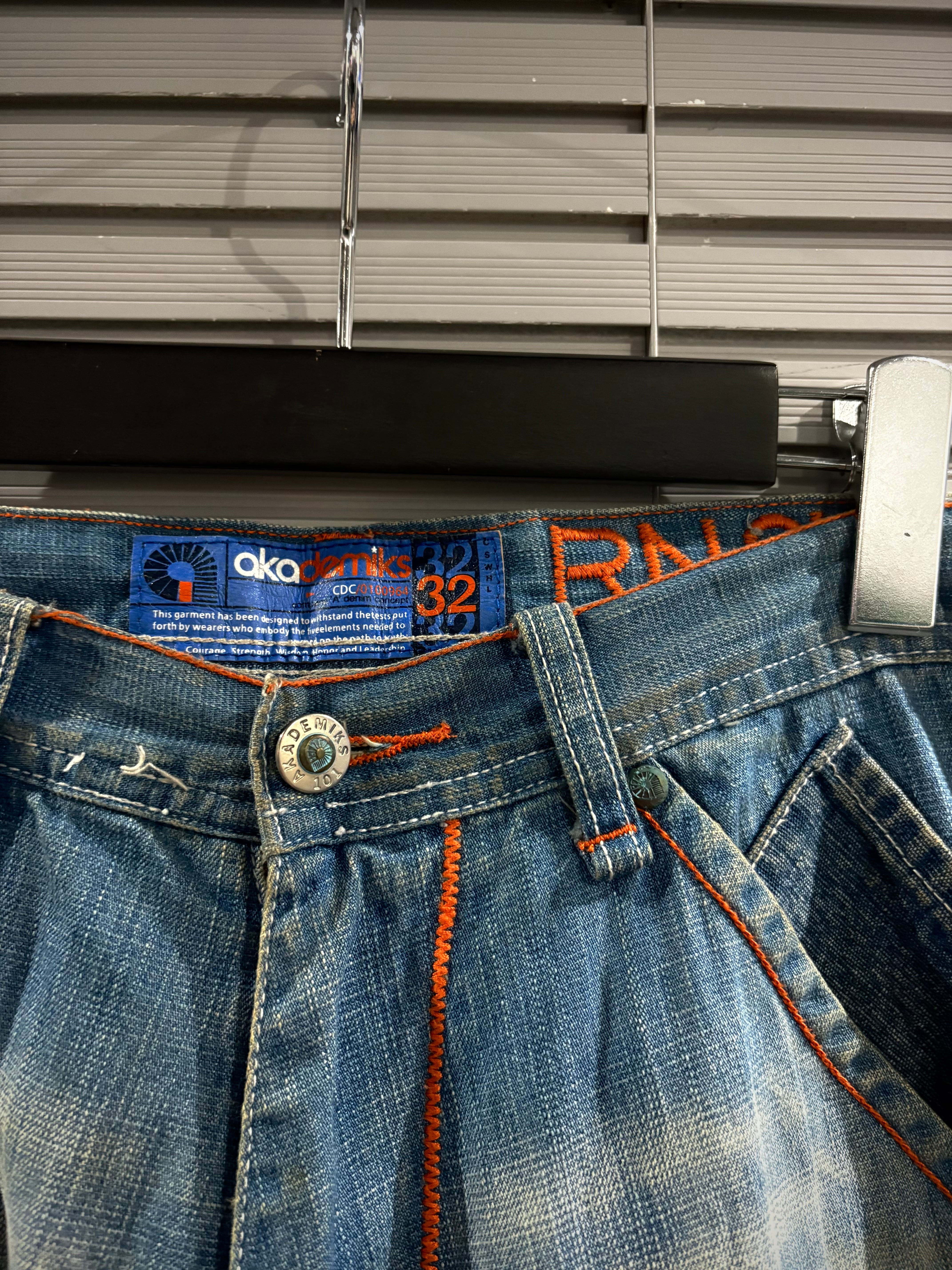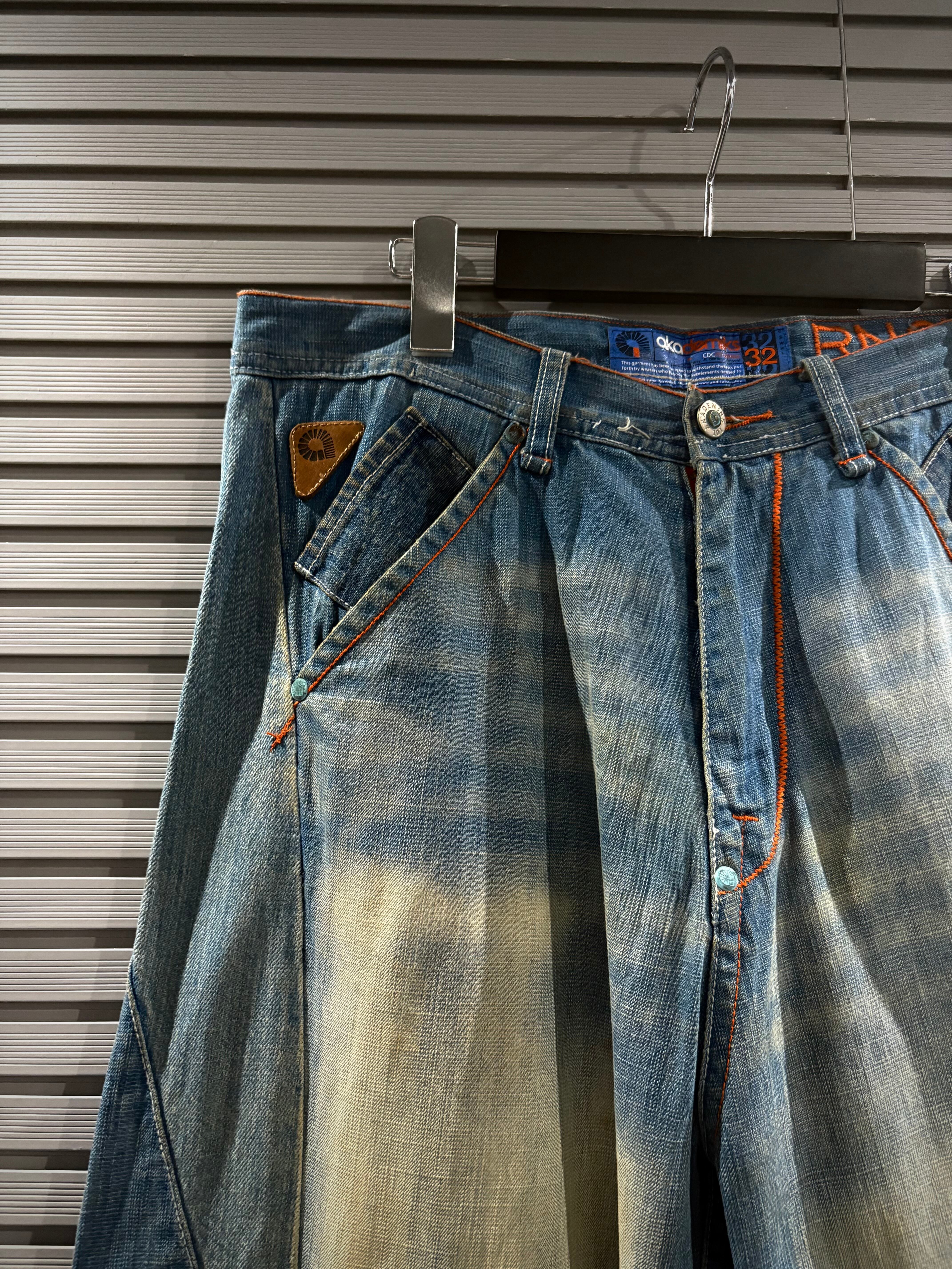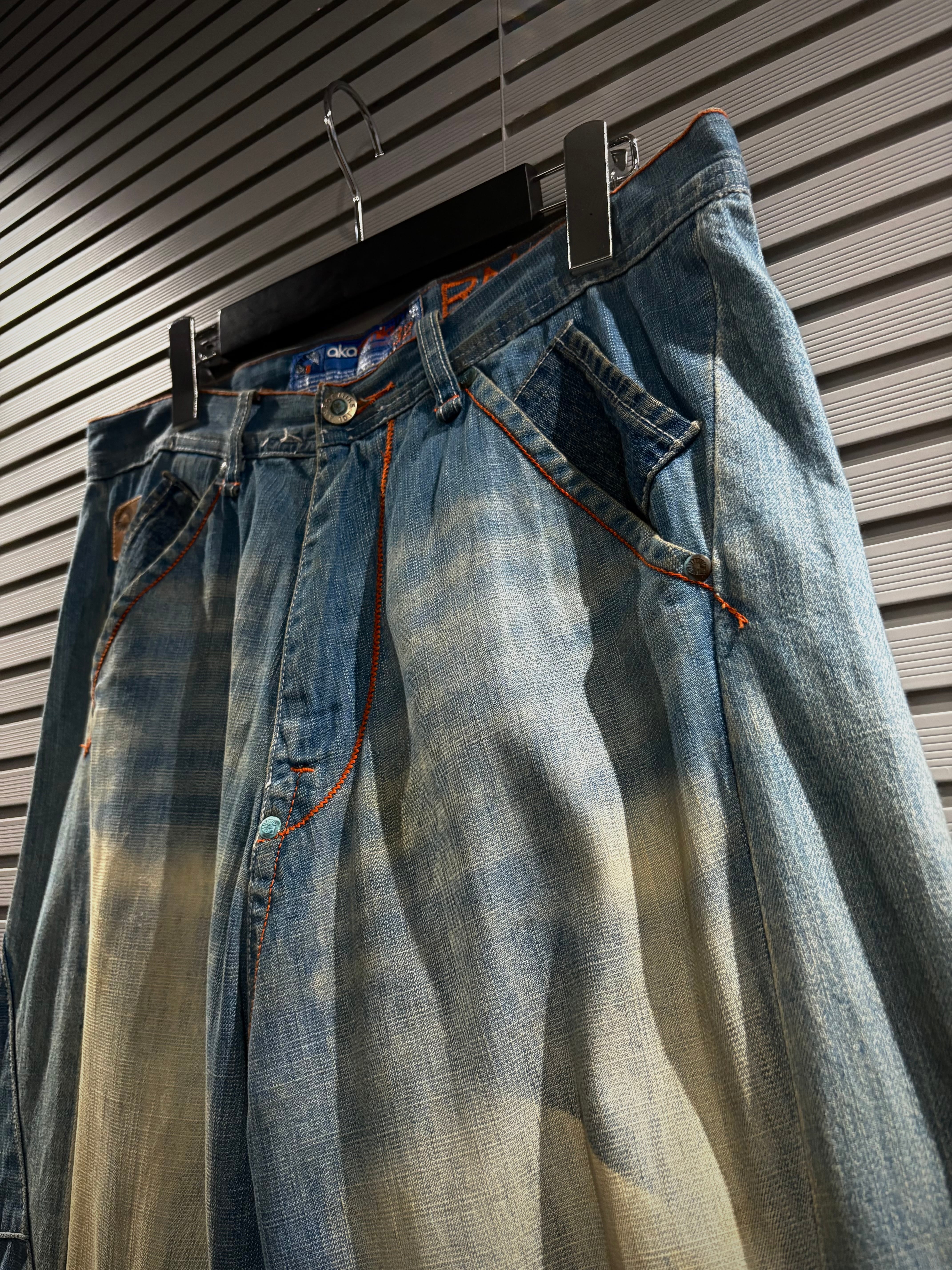 00年代のストリートシーンで確固たる地位を築いた"AKADEMIKS"からの1着。このブランドならではの遊び心が効いたバギーデニムの逸品です。