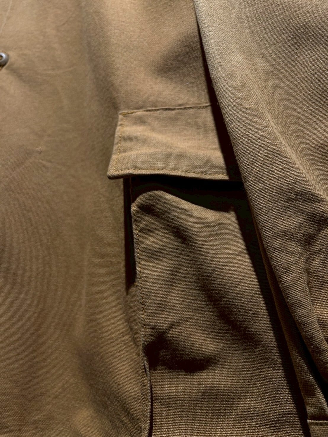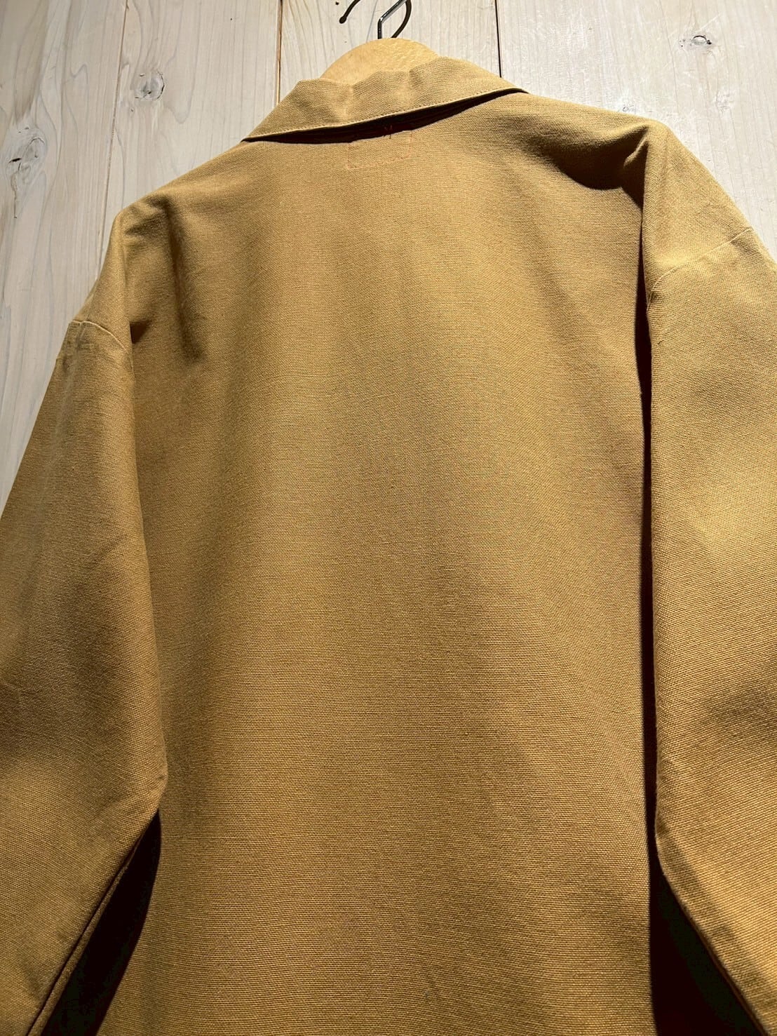 ハリのあるマスタードカラーのダック地をボディに用いたダックジャケット。