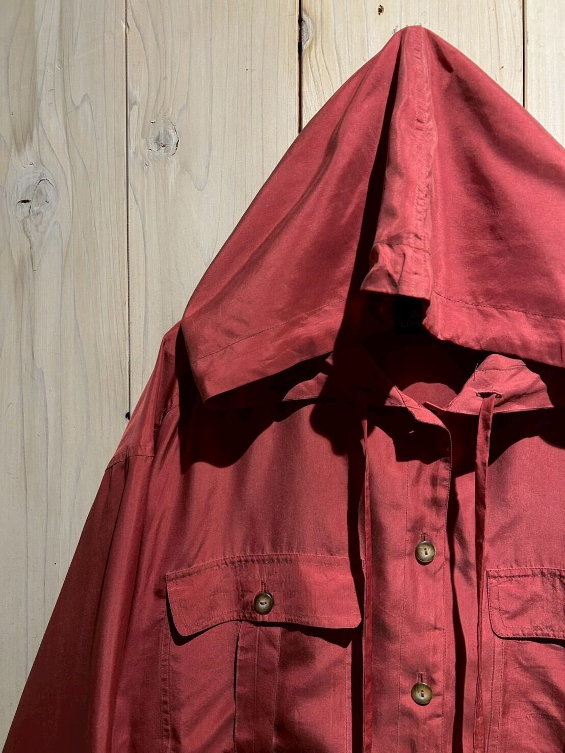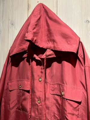 鈍い光沢を帯びたシルク素材をボディに使用したフード付きシャツジャケット。