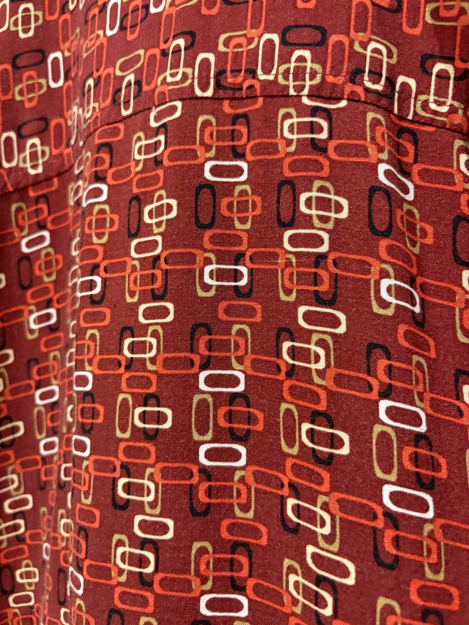 古着では定番の抽象的な柄を載せた柄シャツとはまた異なる風貌を見せる、高いデザイン性を誇る当店ならではの逸品となっております。