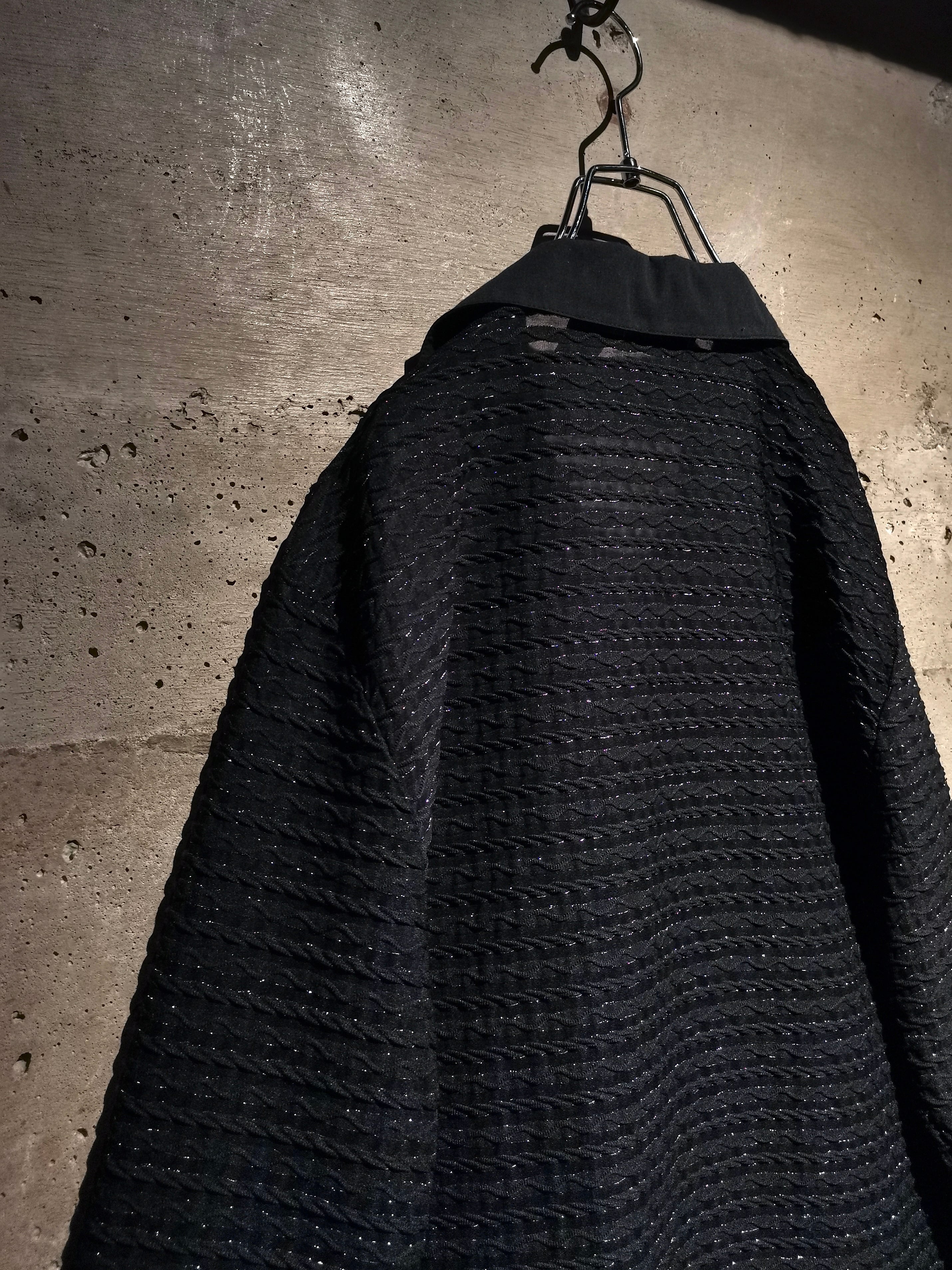シュリンク加工が施された、伸縮性の高いブラックシアー生地をボディに使用したシャツジャケット。