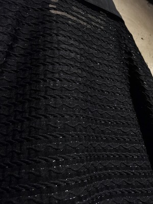 シアーの透け感にシュリンク加工による凹凸の立体感、そしてボディ全体に施されたラメの輝きが掛け合わさることで奥行きのある表情を演出。