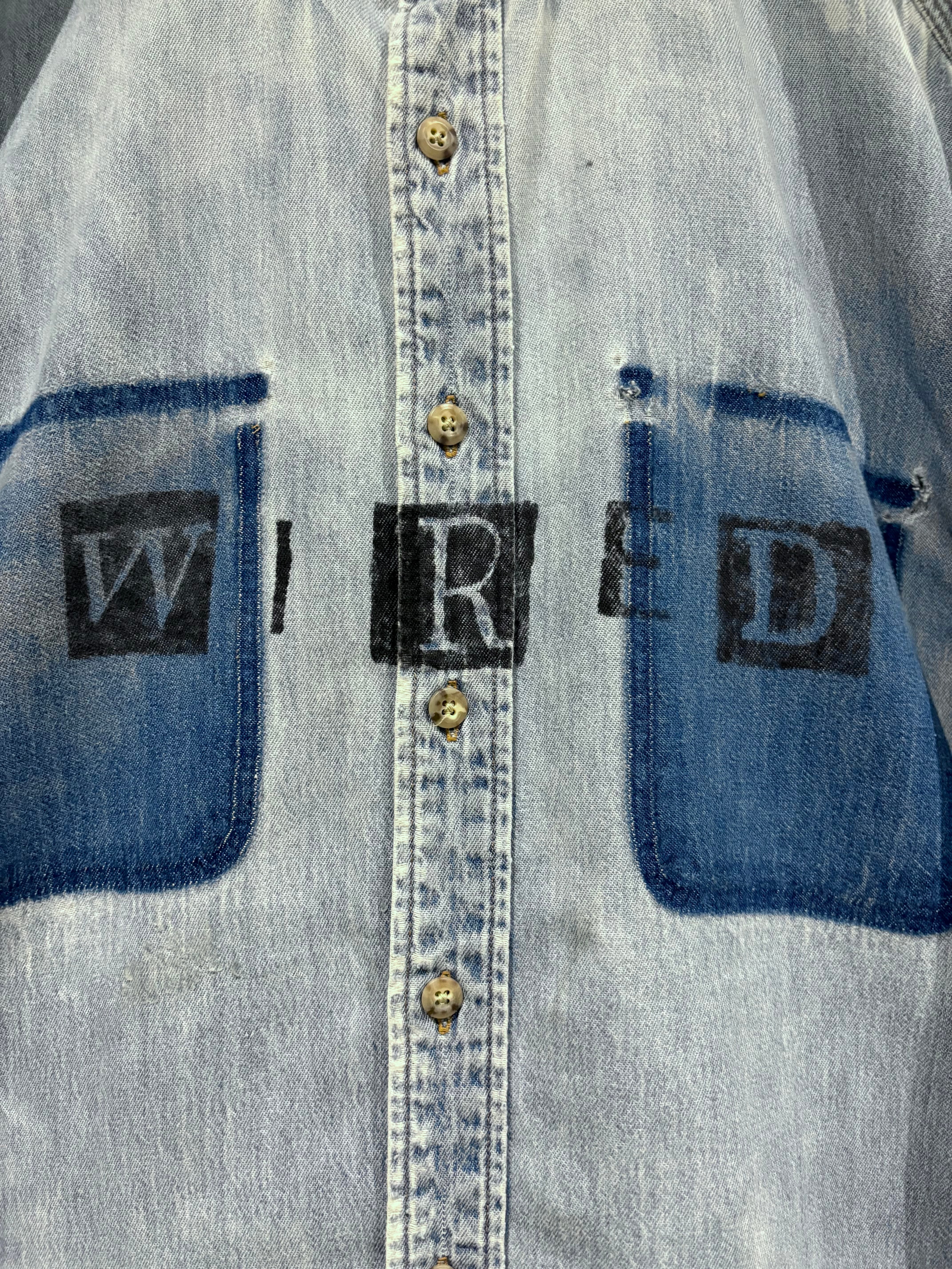 デニムシャツをベースに用い、襟や胸ポケットを切除し、スラングとしても用いられる"WIRED"の文字を前背面にペイントした1着。