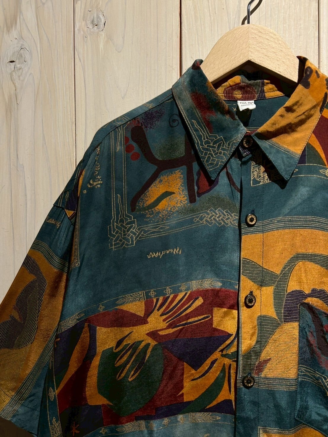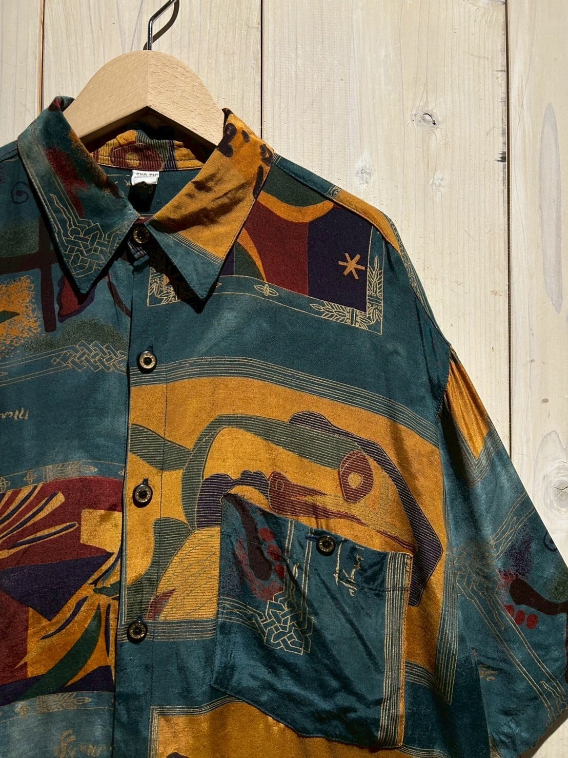 ハリ、柔らかさを併せ持ったボディに、アート柄を載せたヴィンテージ半袖シャツ。