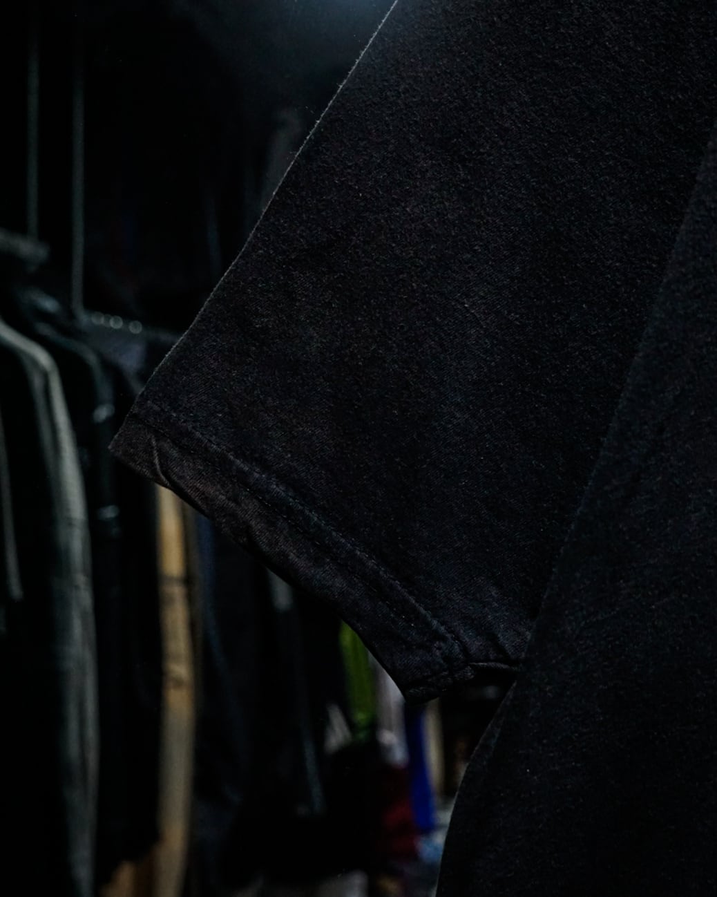 ゆったりとした黒のボディに、死神たちの衣装である黒の“死覇装”が同化して描かれており、一護の特徴的な髪色のオレンジと相まってアーティスティックかつ立体感が生まれる様なデザイン。