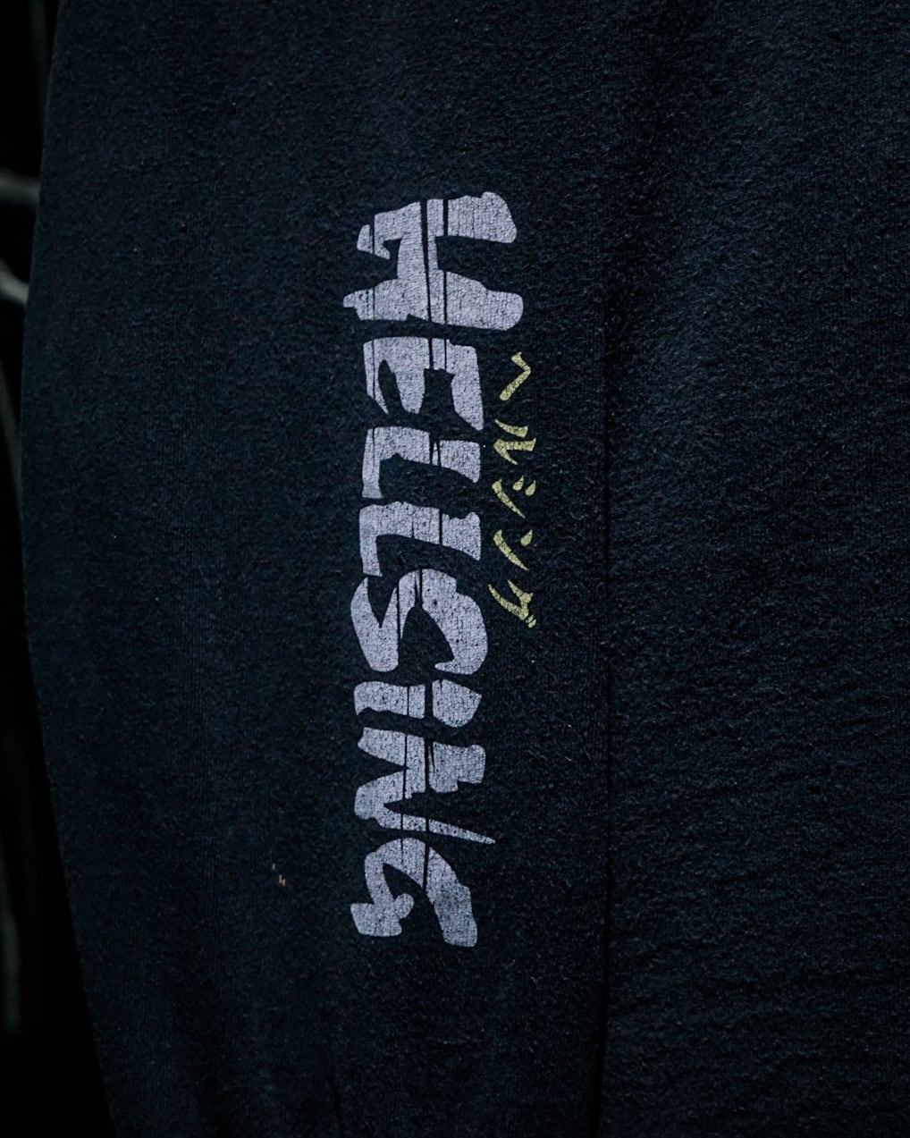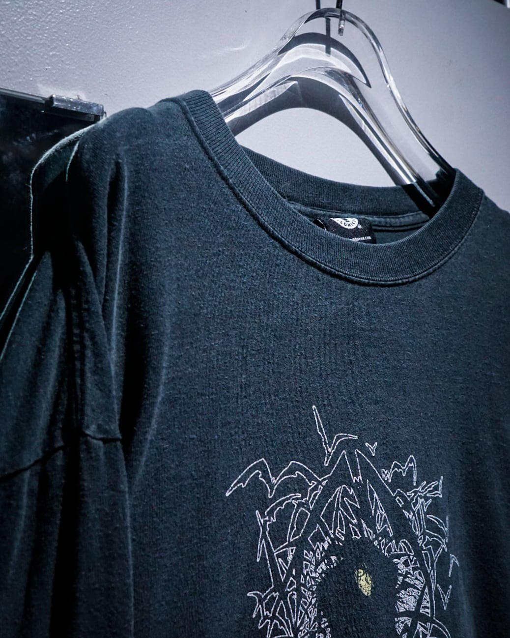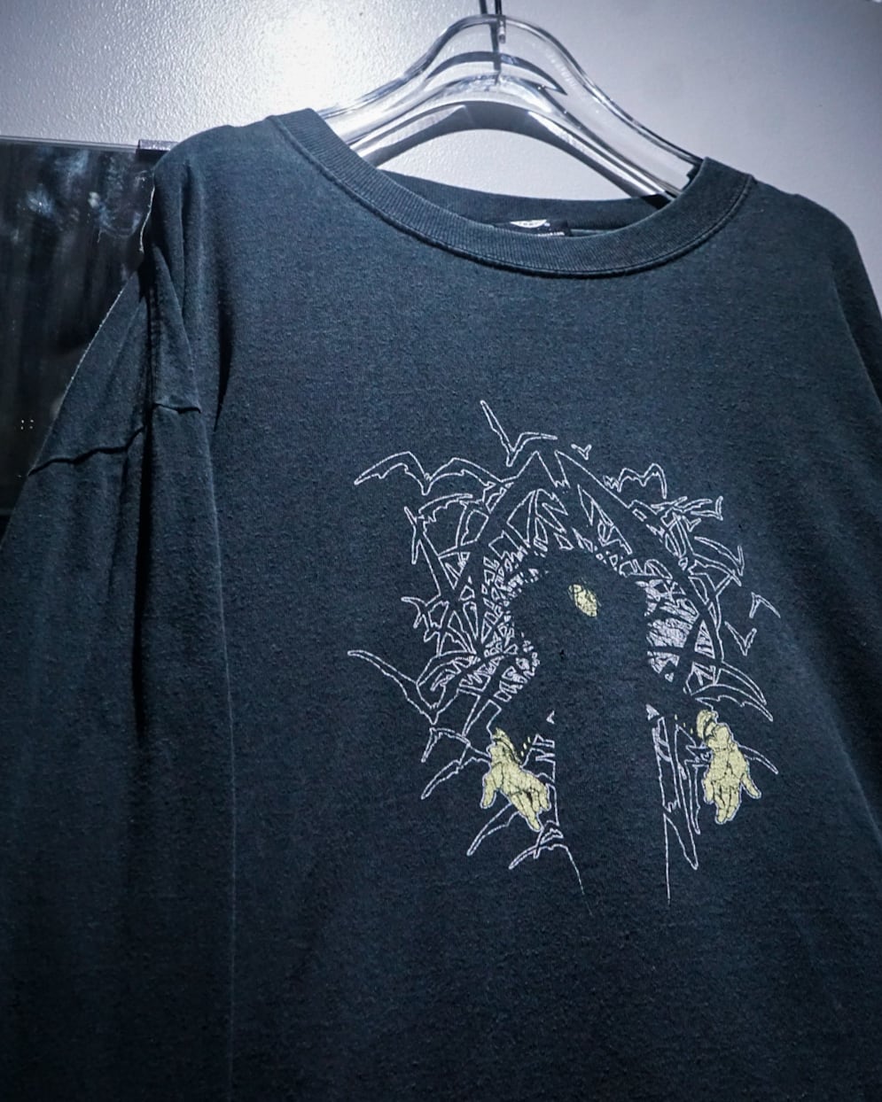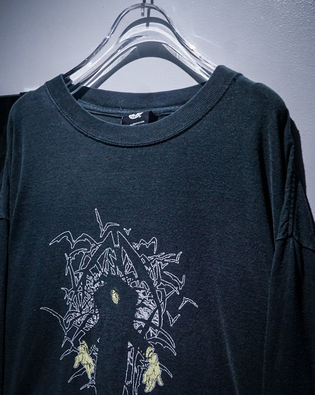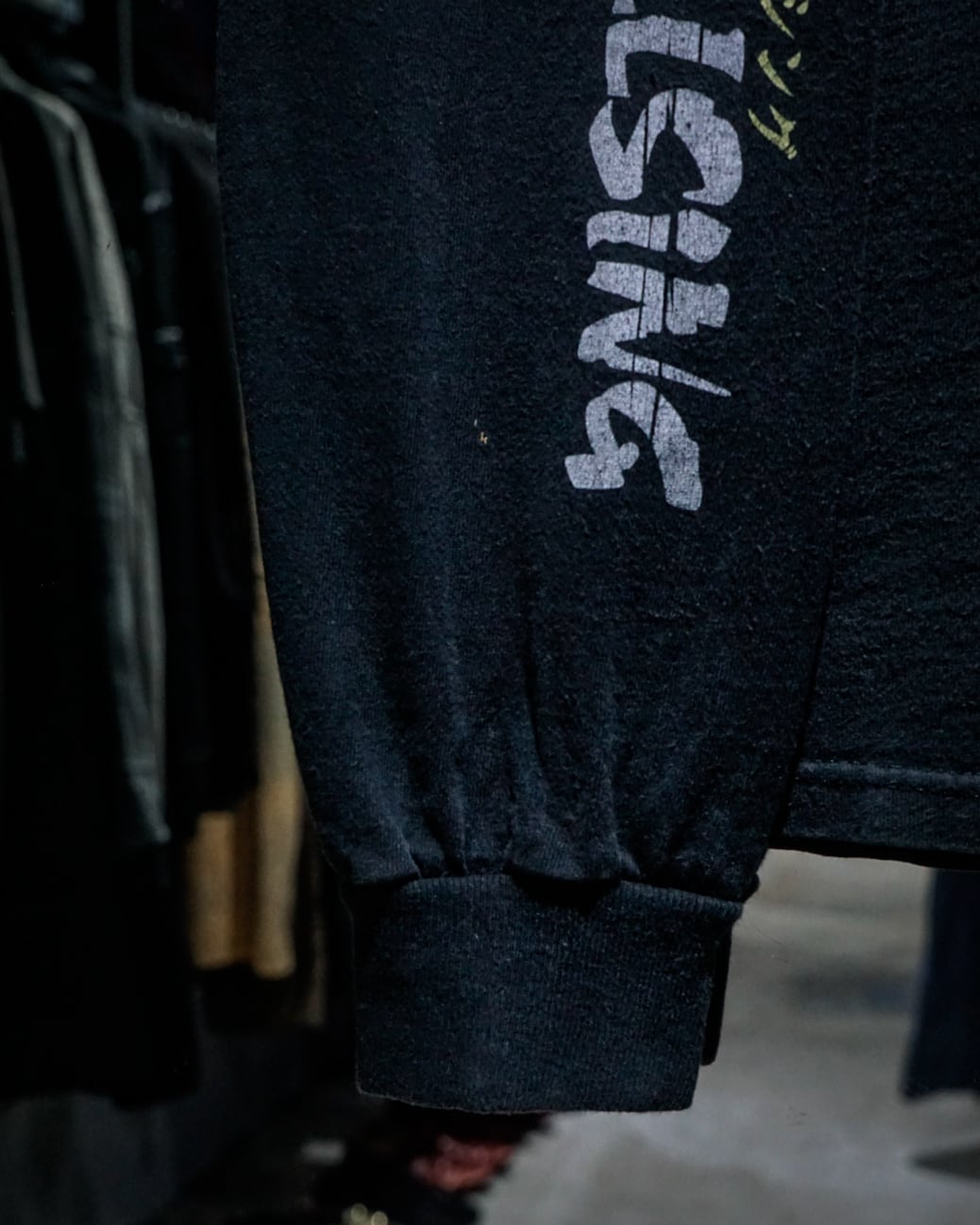 全体にフェードの効いたボディやプリントのクラック感、そしてこの作品が持つダークな雰囲気を感じさせるプリントのノリとのバランスが最高にイケてますね。