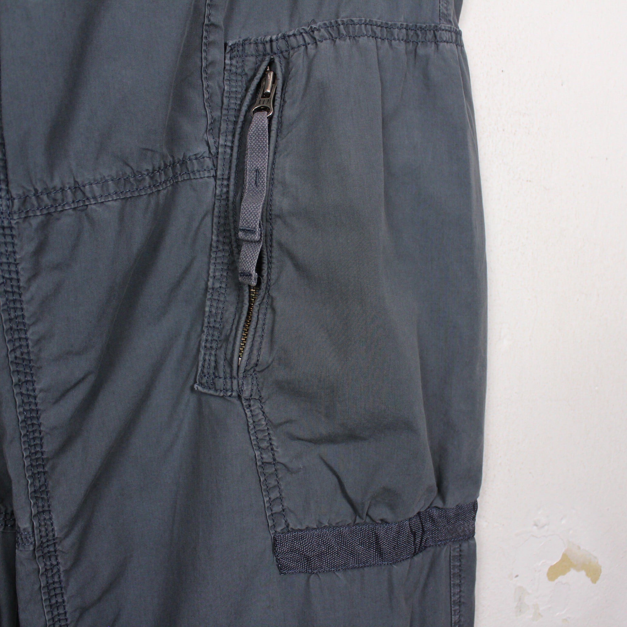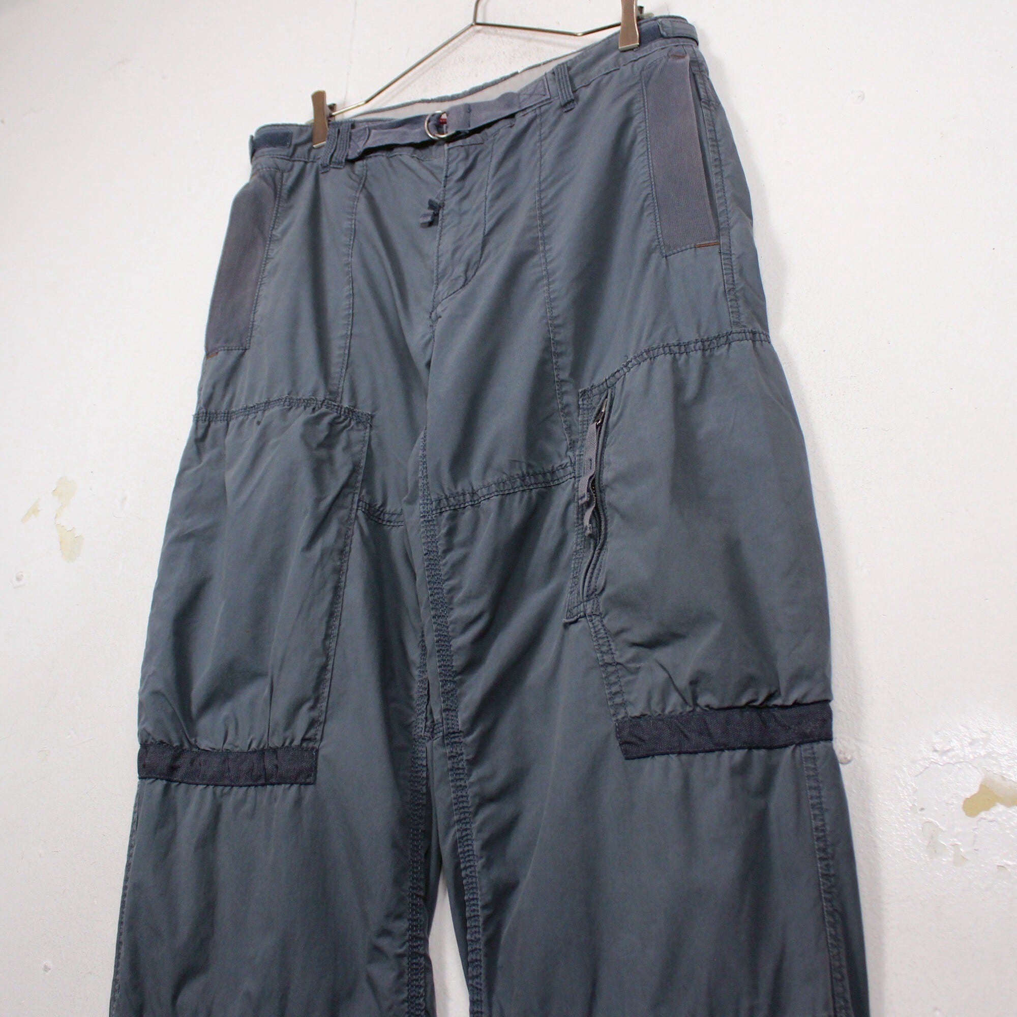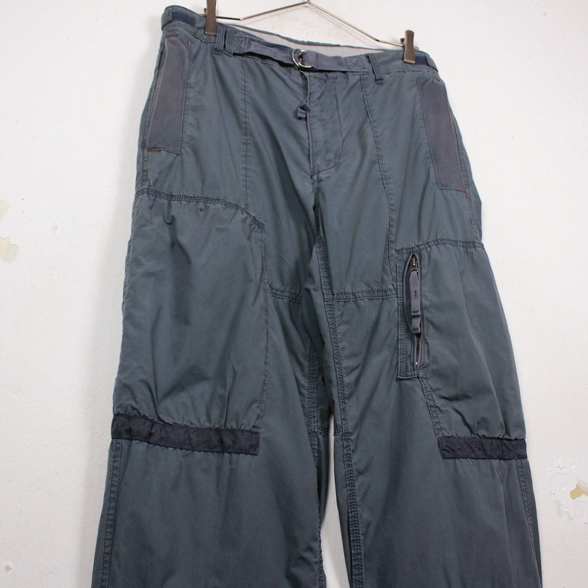 フロント両サイドにはスラッシュポケット、両太腿部分にはそれぞれサイズの異なるジップポケットを施した、機能性高い仕上がり。