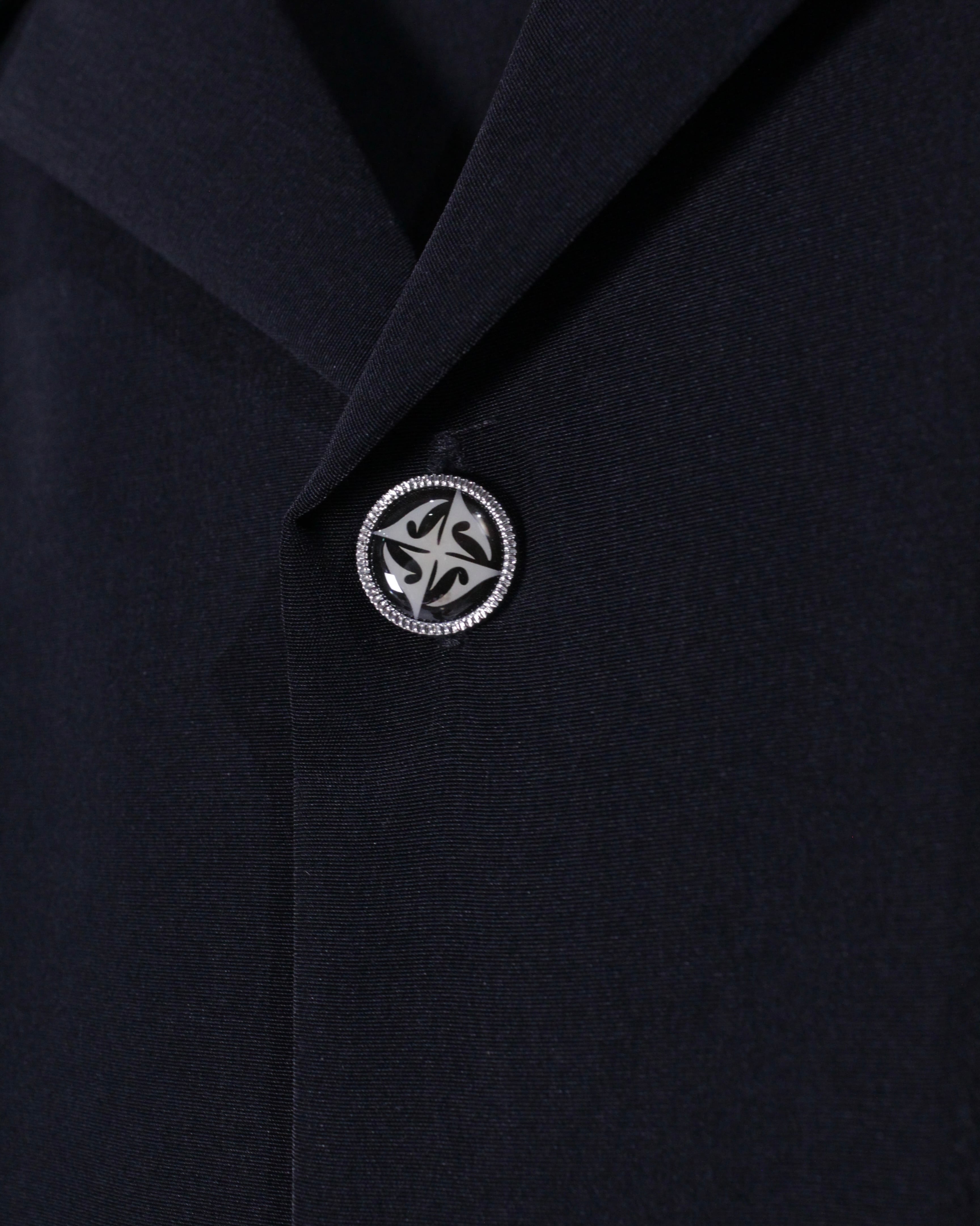 刺繍の中にはアイアンクロス風のモチーフに、ボタンにも同様のデザイン。この手のアイテムの中でもモノトーンでの仕上がりで、キメつつやりすぎていない、絶妙なデザインバランスがGOOD。しかしながら存在感も抜群に放ってくれます。