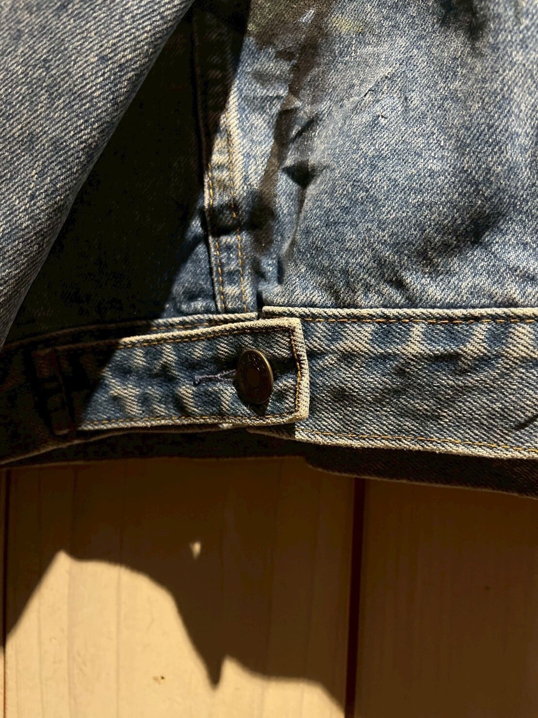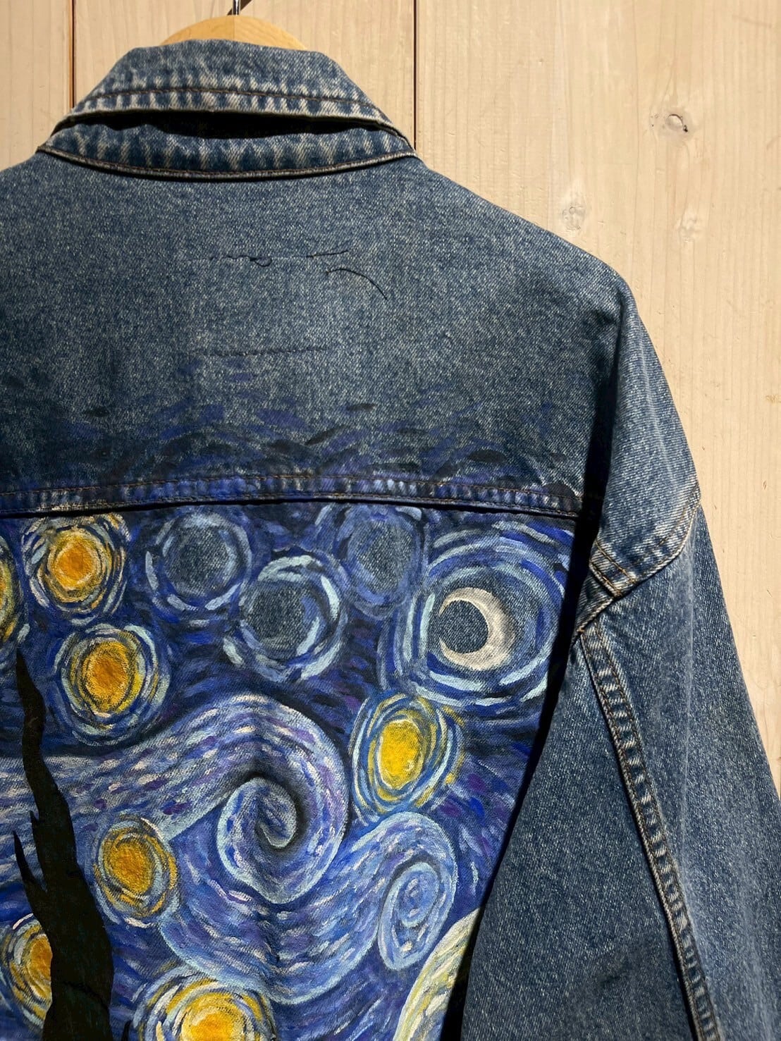 "GAP"のデニムジャケットをベースに、前所有者によってゴッホの名作"星月夜"をハンドペイントで載せた、スペシャルな1着。