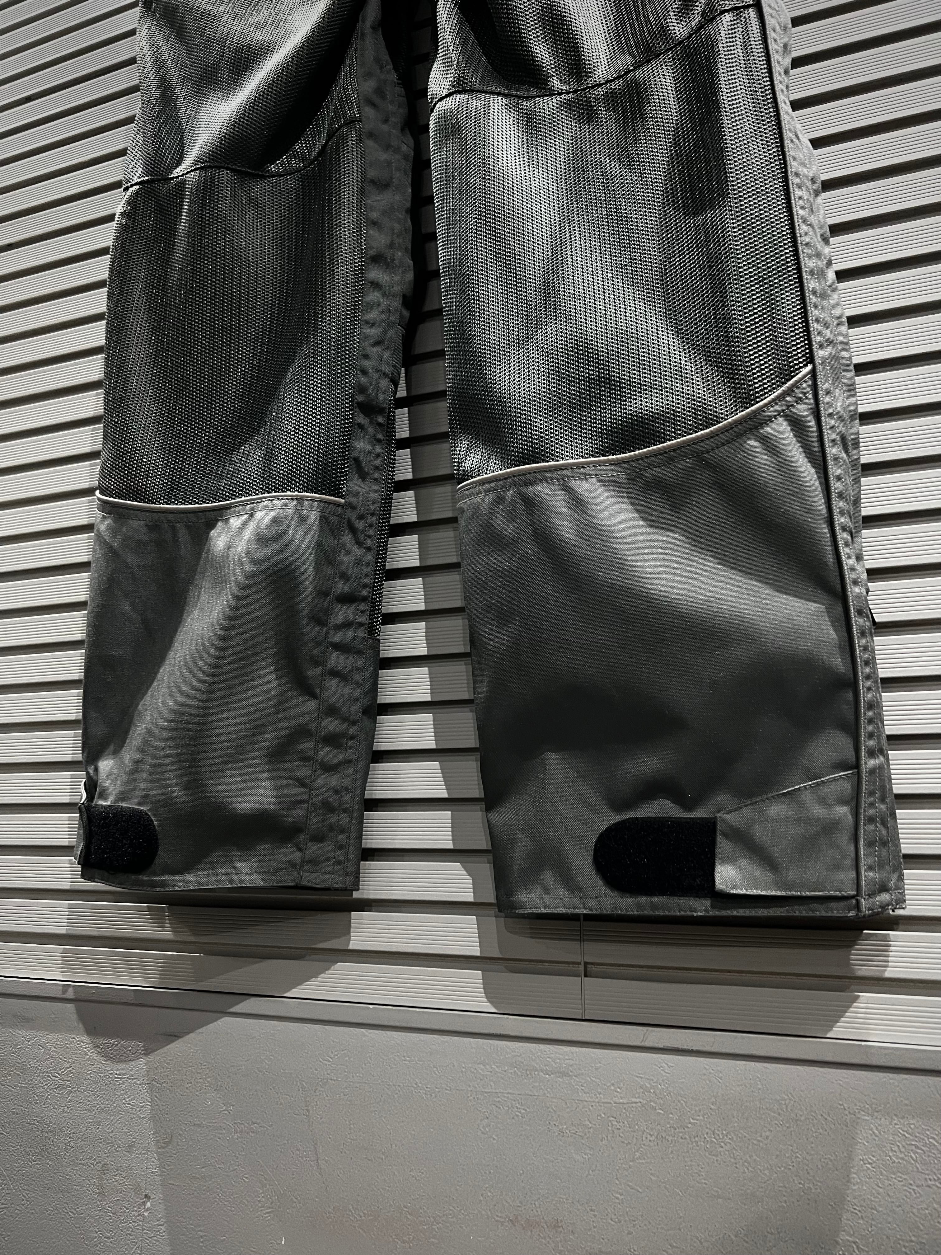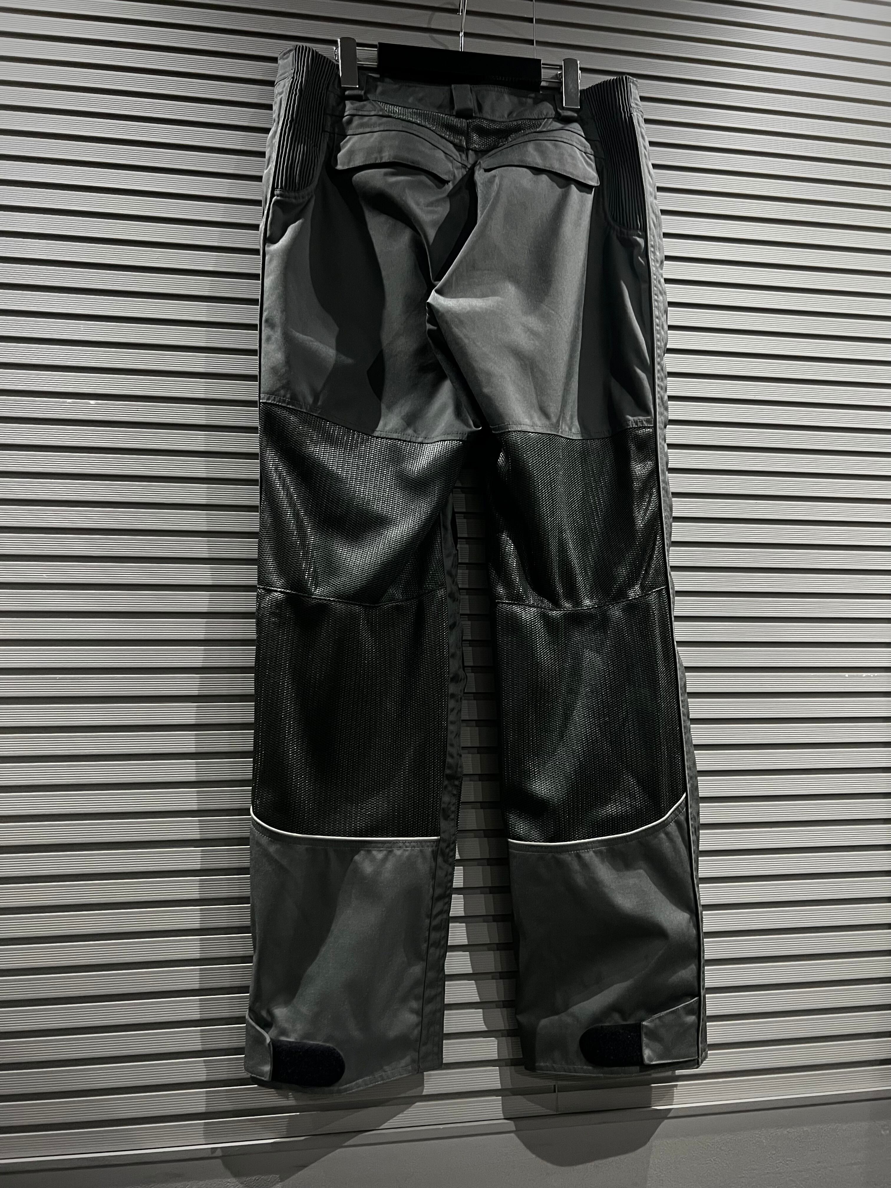 ハリ、タフさのあるナイロンのボディに、通気性を考慮したメッシュ切り替えを施したモーターサイクルパンツ。