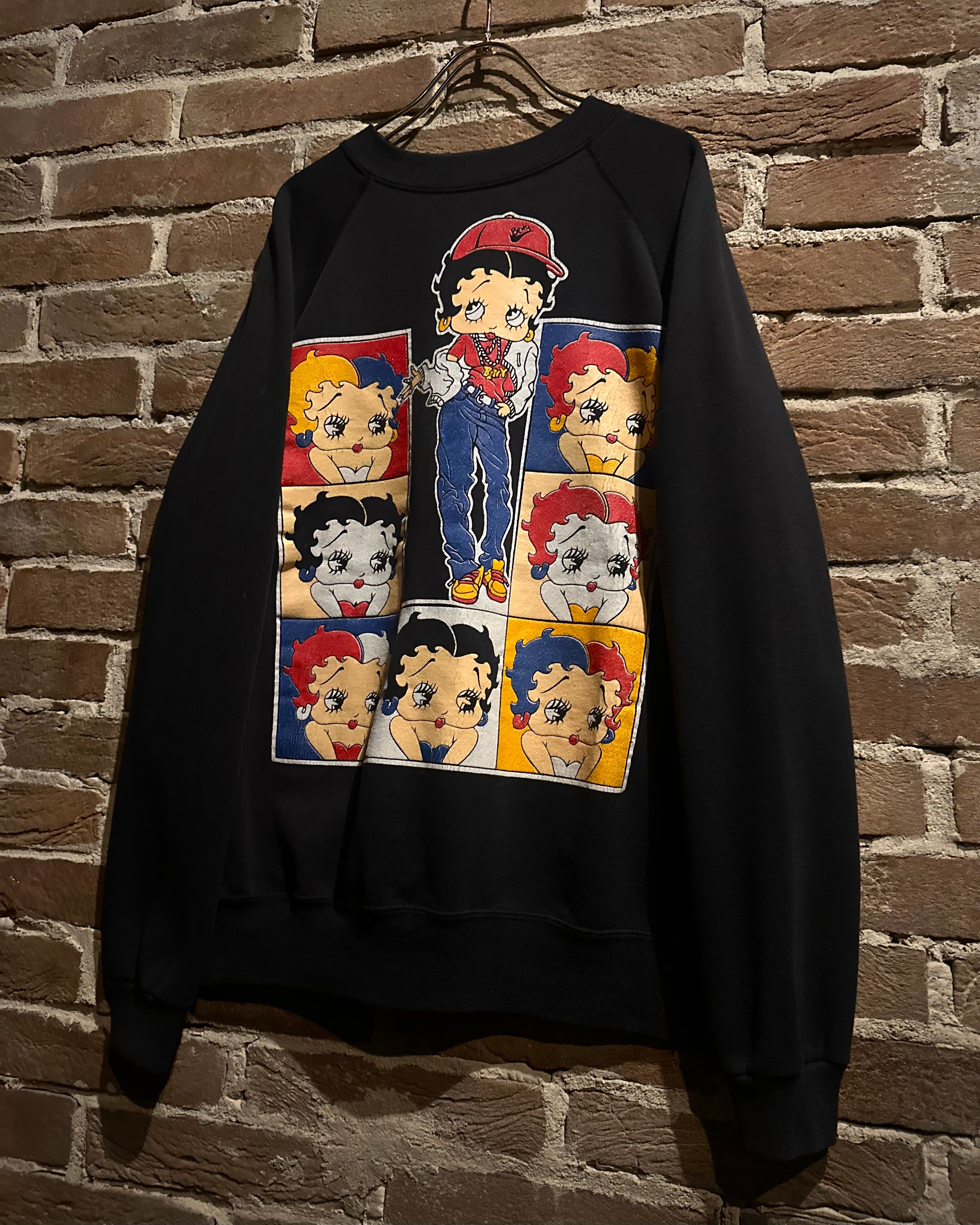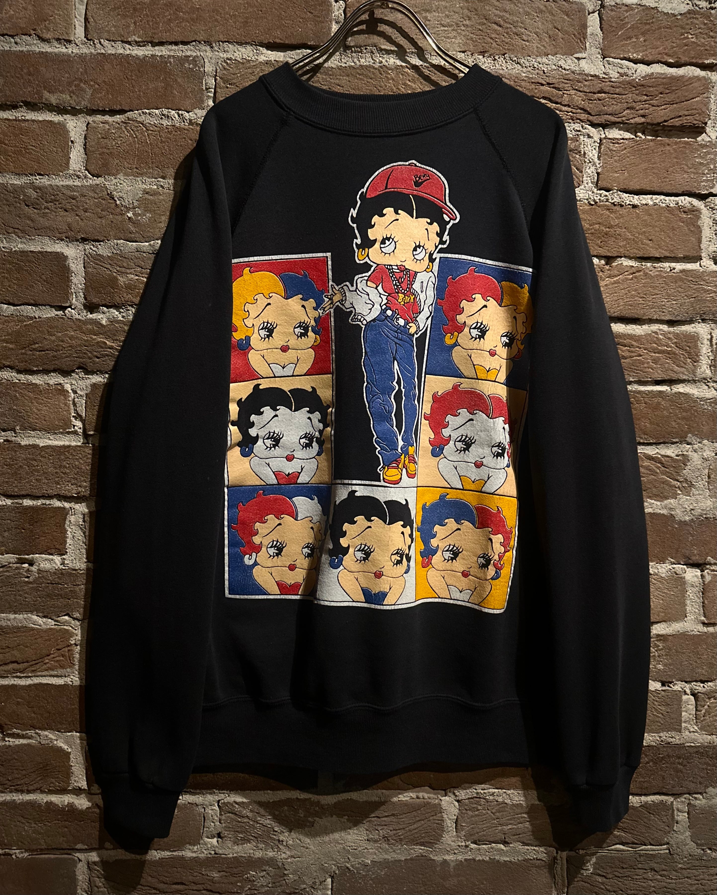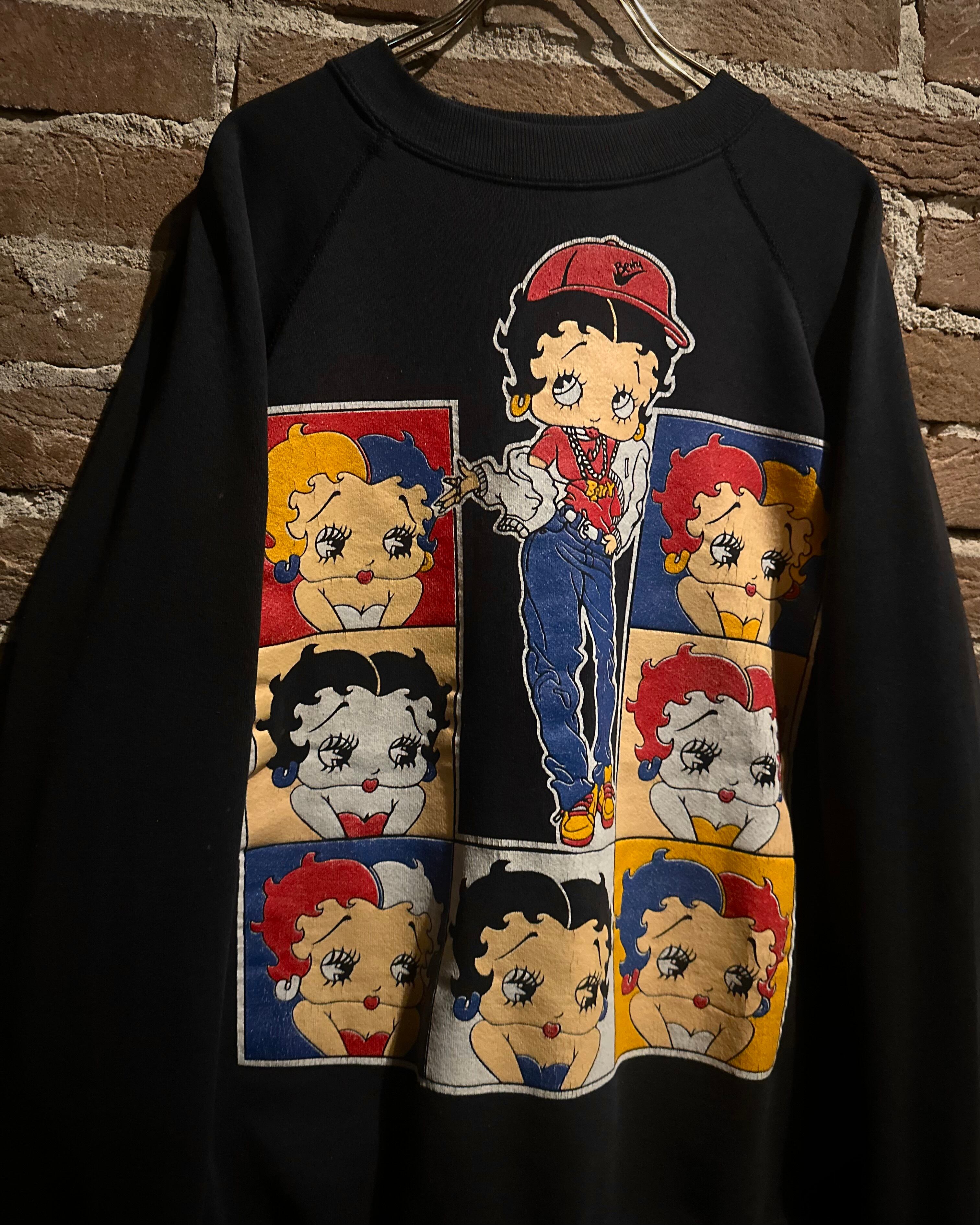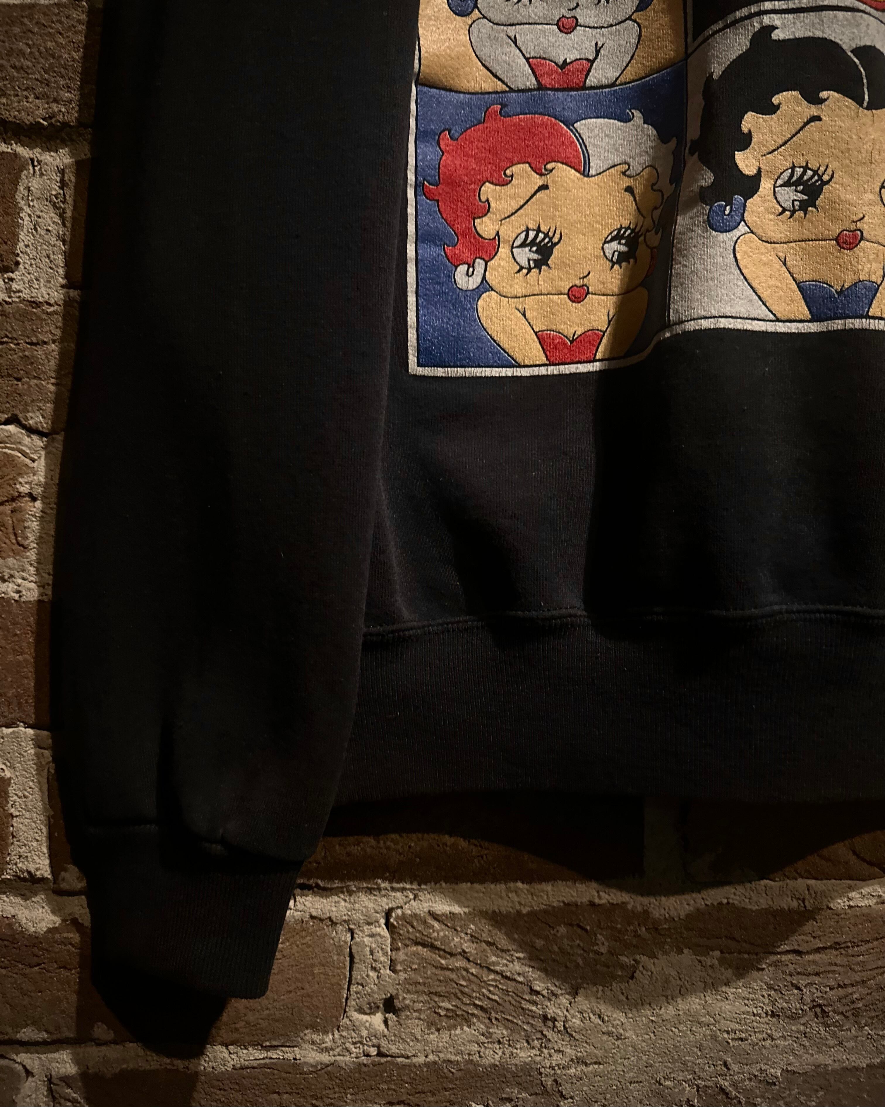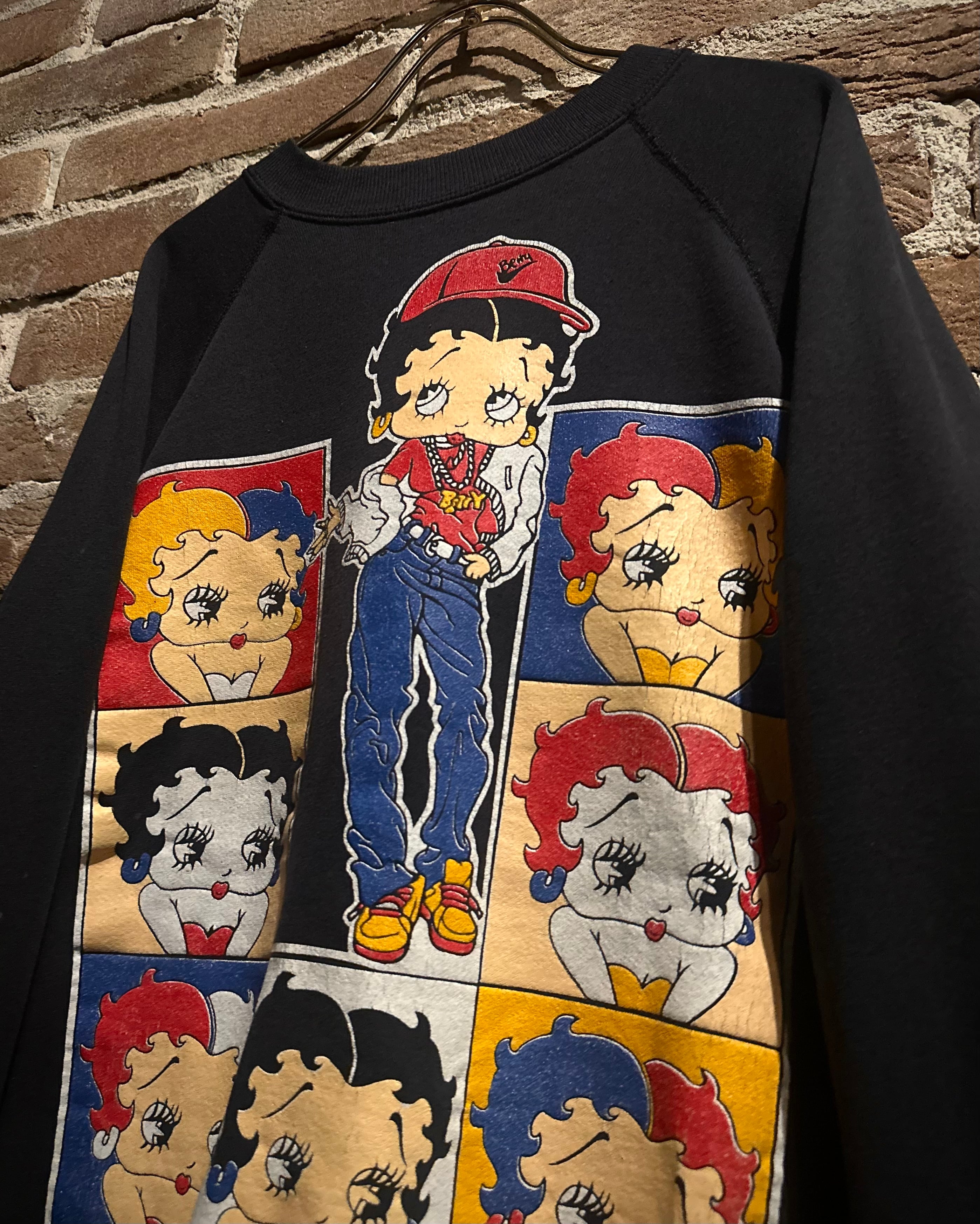 ベティちゃんモノはヴィンテージTシャツでもジワジワと稀少性が高まっている中、こちらはスウェットかつ超ノリの良いデザインを載せた一着。春先はもちろん、秋冬とガッツリ活躍してくれる逸品です。