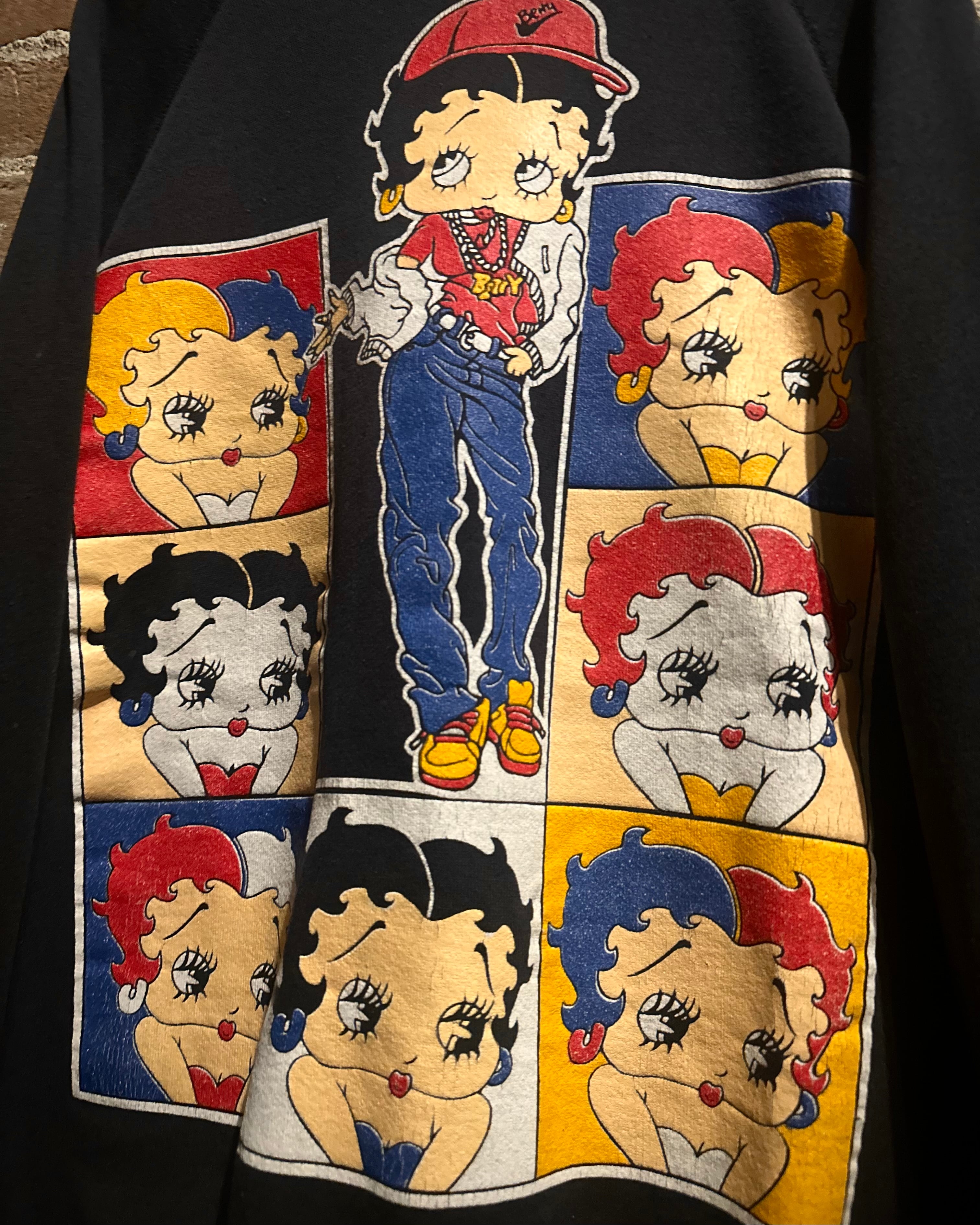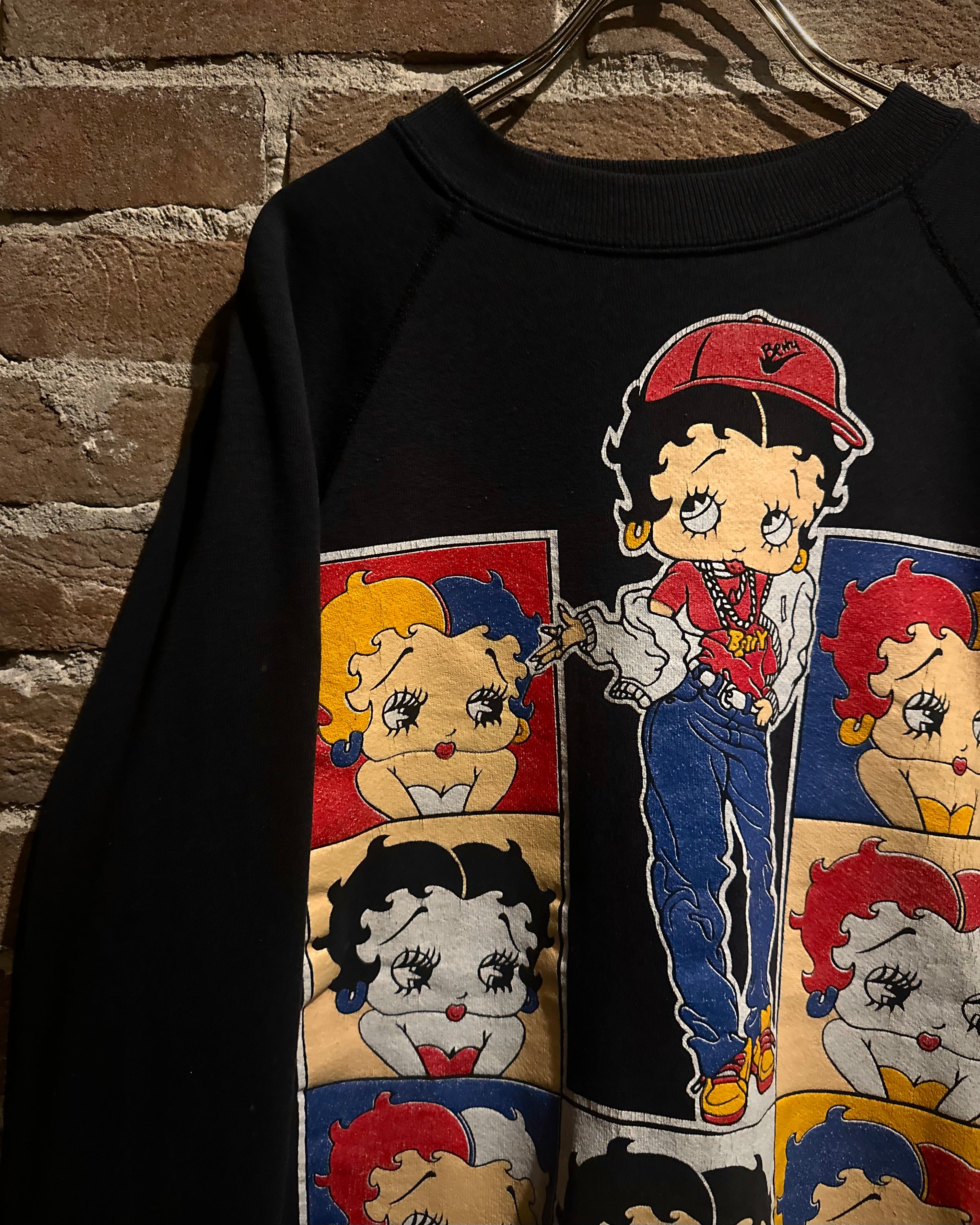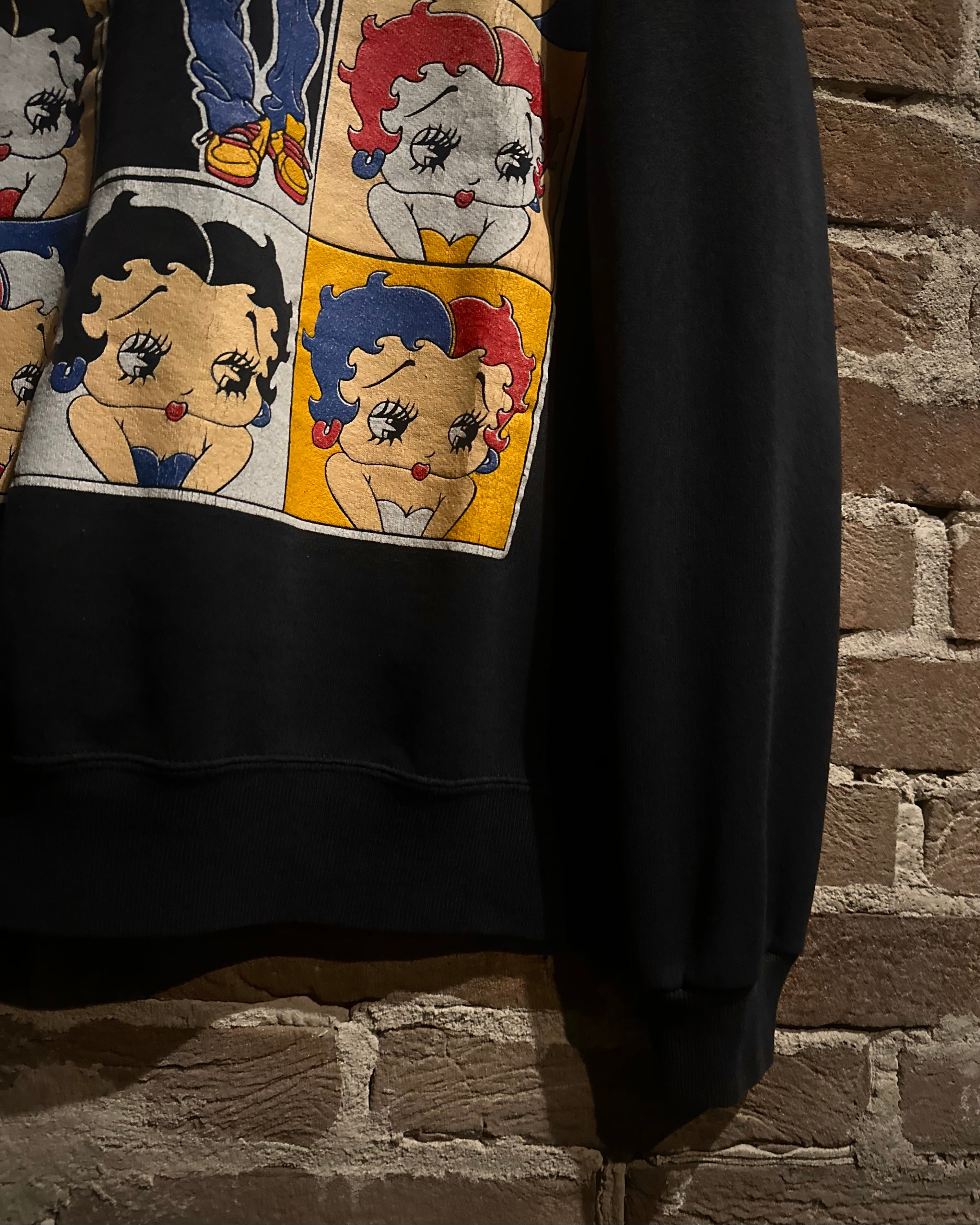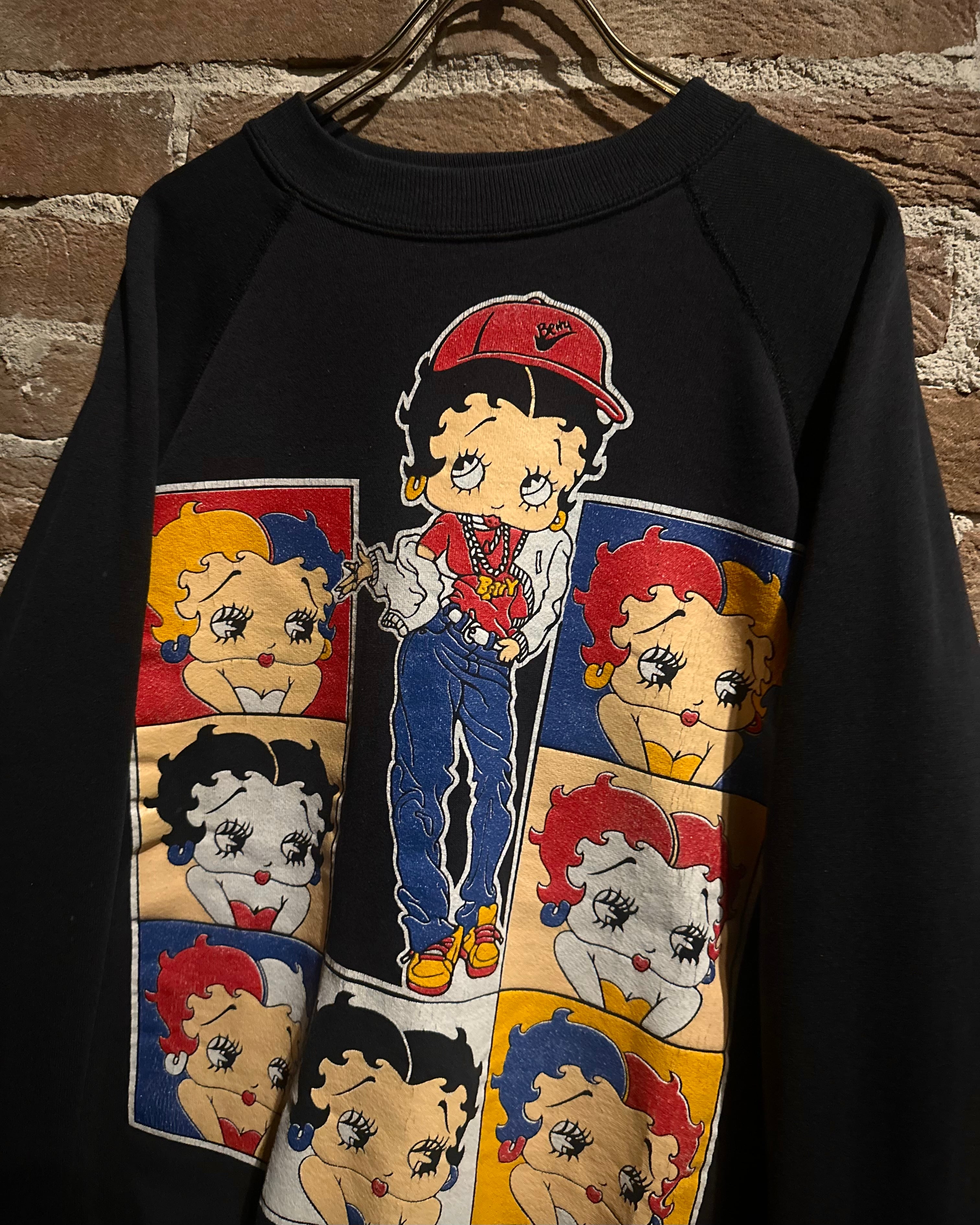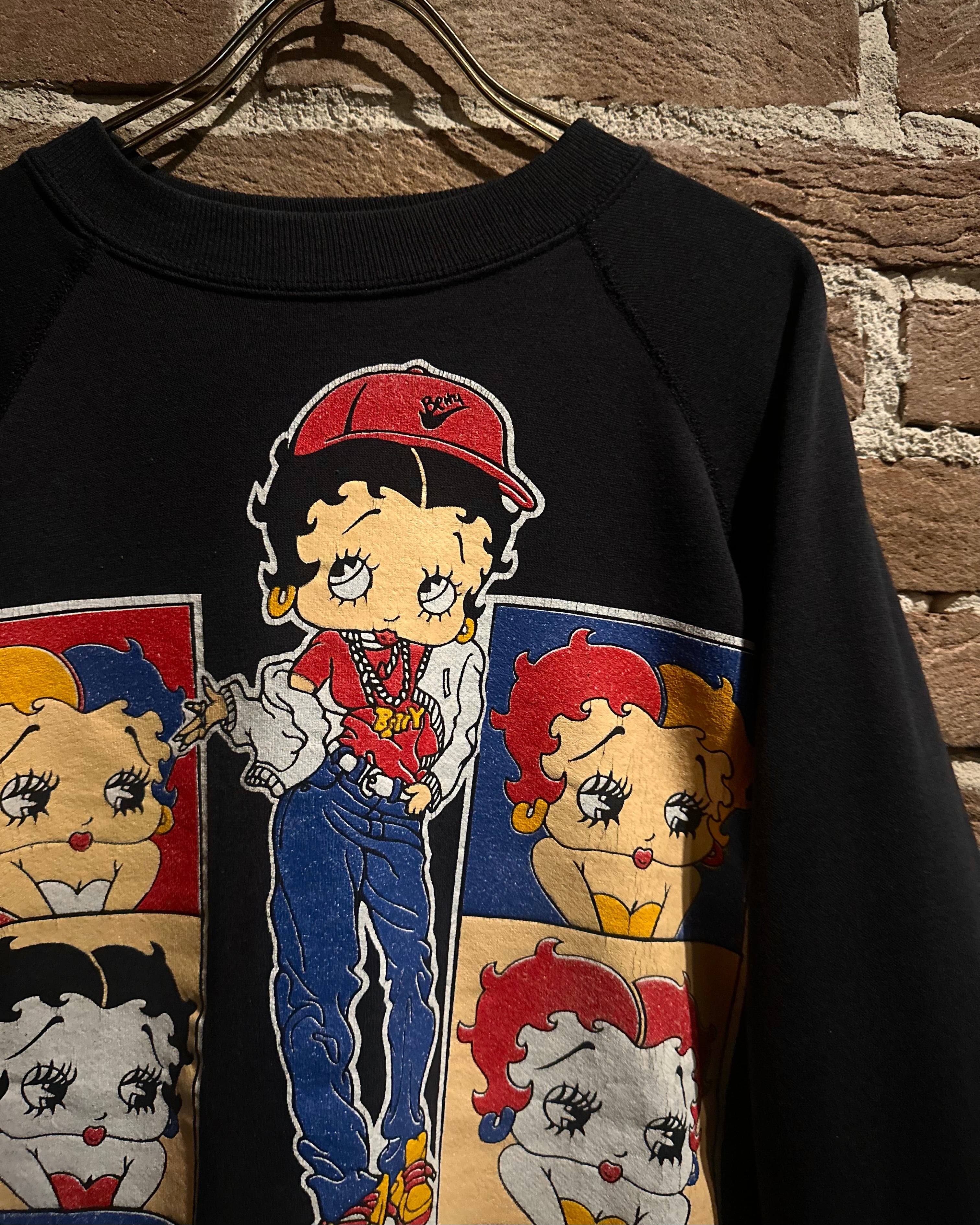 ベティちゃんモノはヴィンテージTシャツでもジワジワと稀少性が高まっている中、こちらはスウェットかつ超ノリの良いデザインを載せた一着。春先はもちろん、秋冬とガッツリ活躍してくれる逸品です。