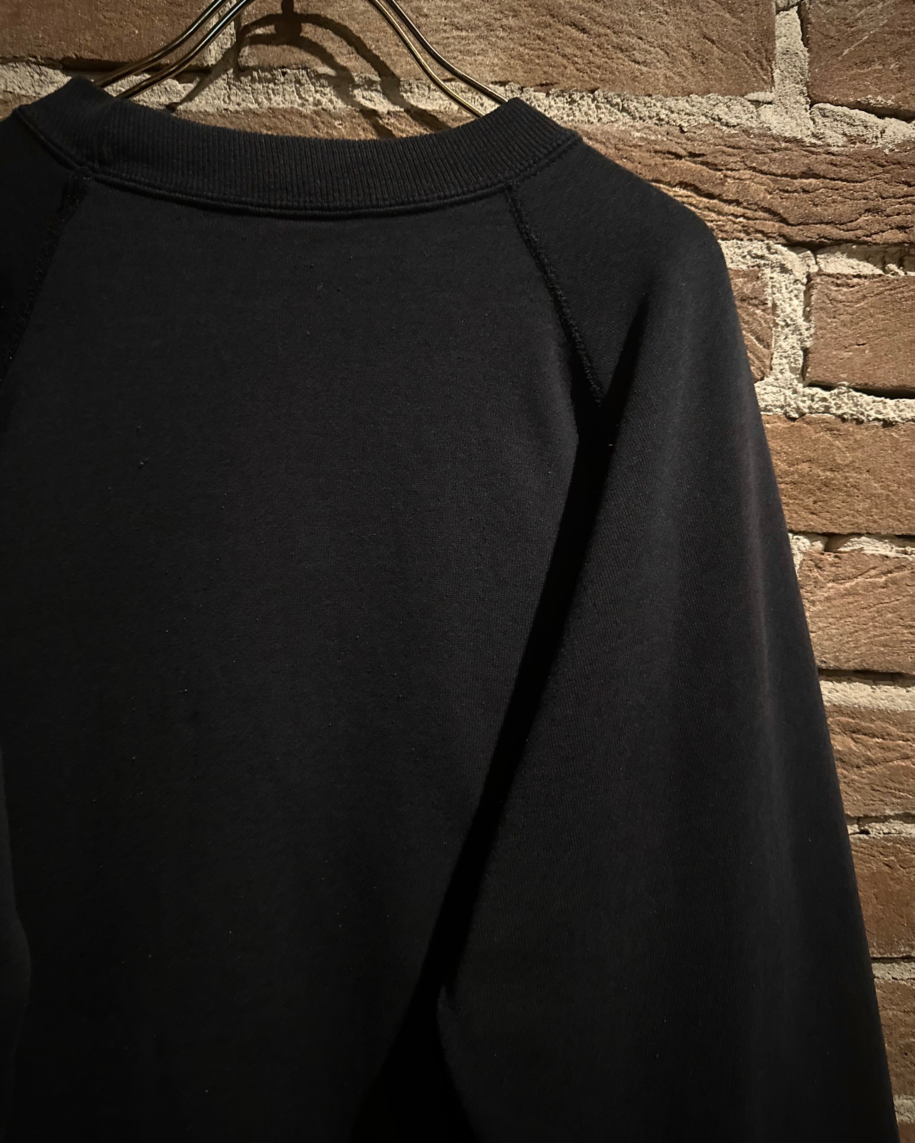コットン50%、ポリエステル50%、L表記の"Hanes"ボディ。稀少なルーズなサイジングに加えラグランスリーブの仕様で、肩の落ち感も良くゆったりとしたシルエットで身に纏えます。