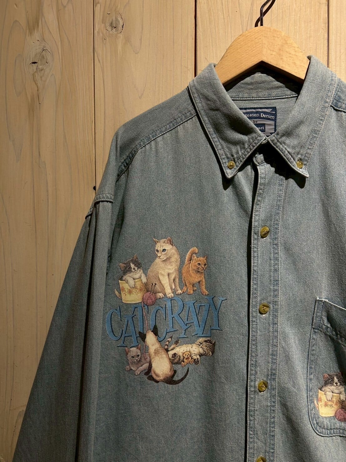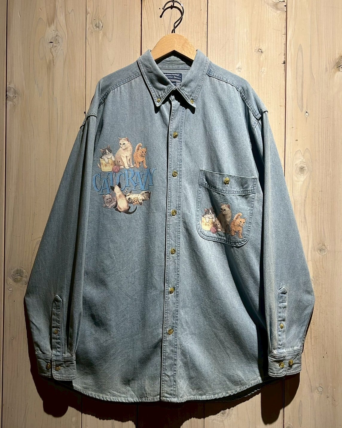 愛らしい猫に目と心の双方を奪われる、でデニムシャツの稀有な1着です。