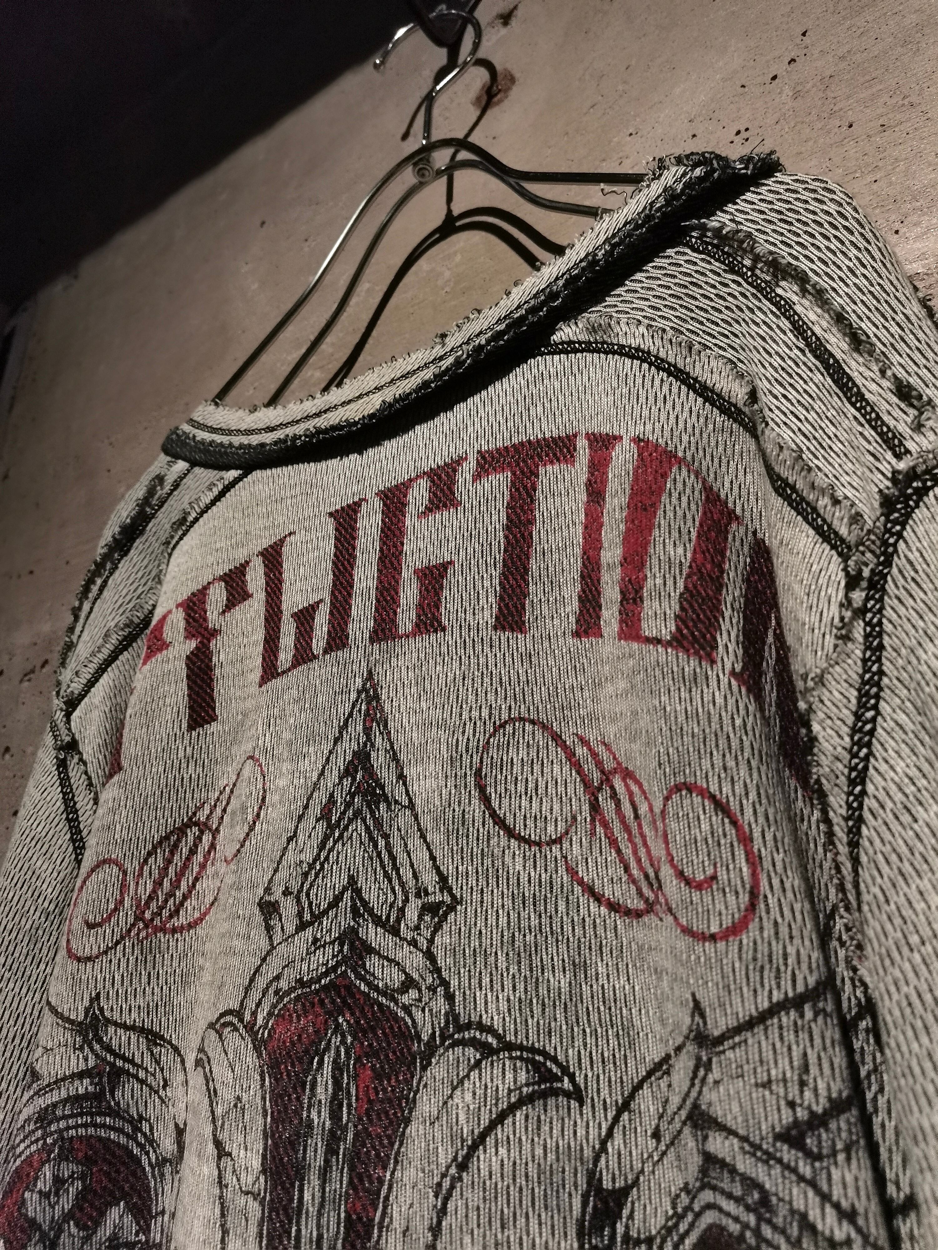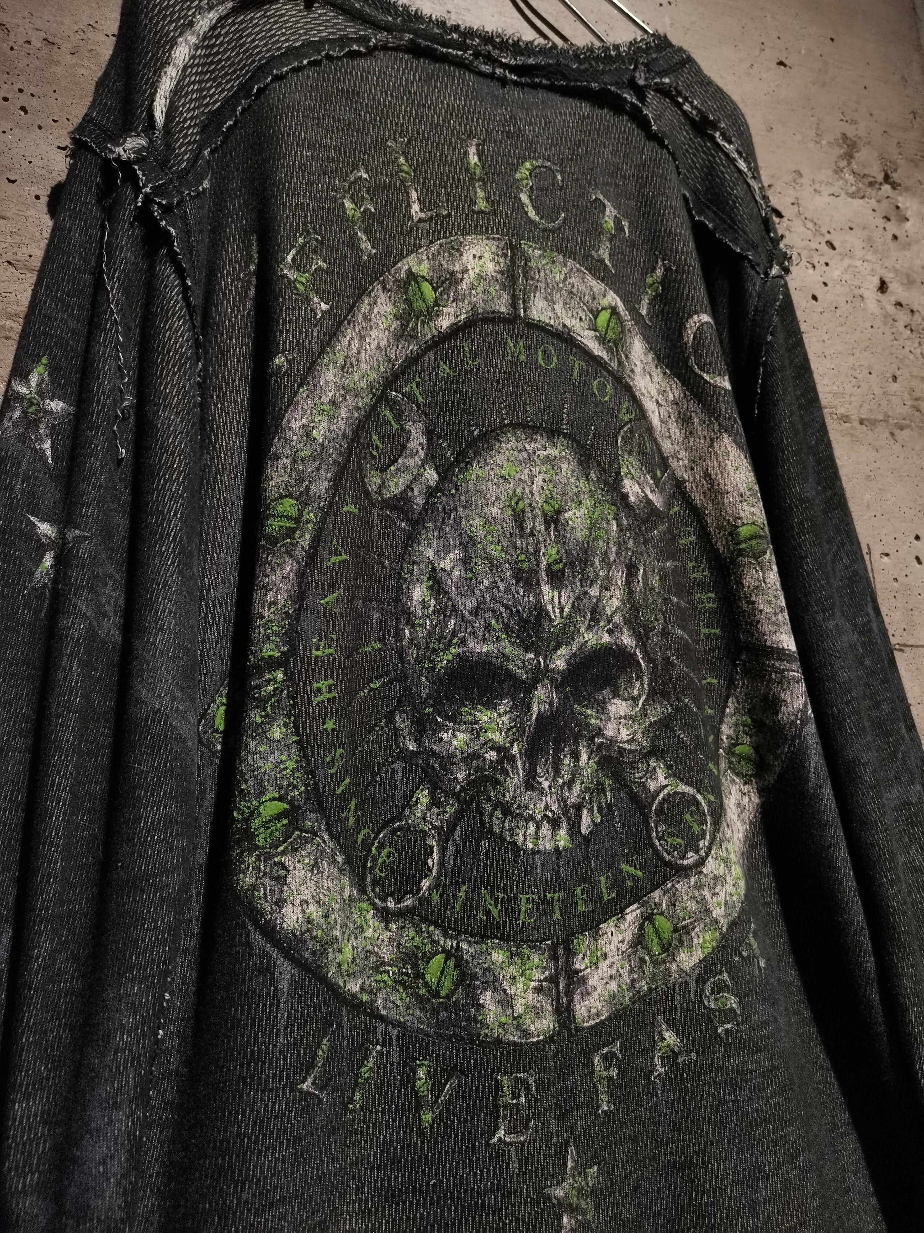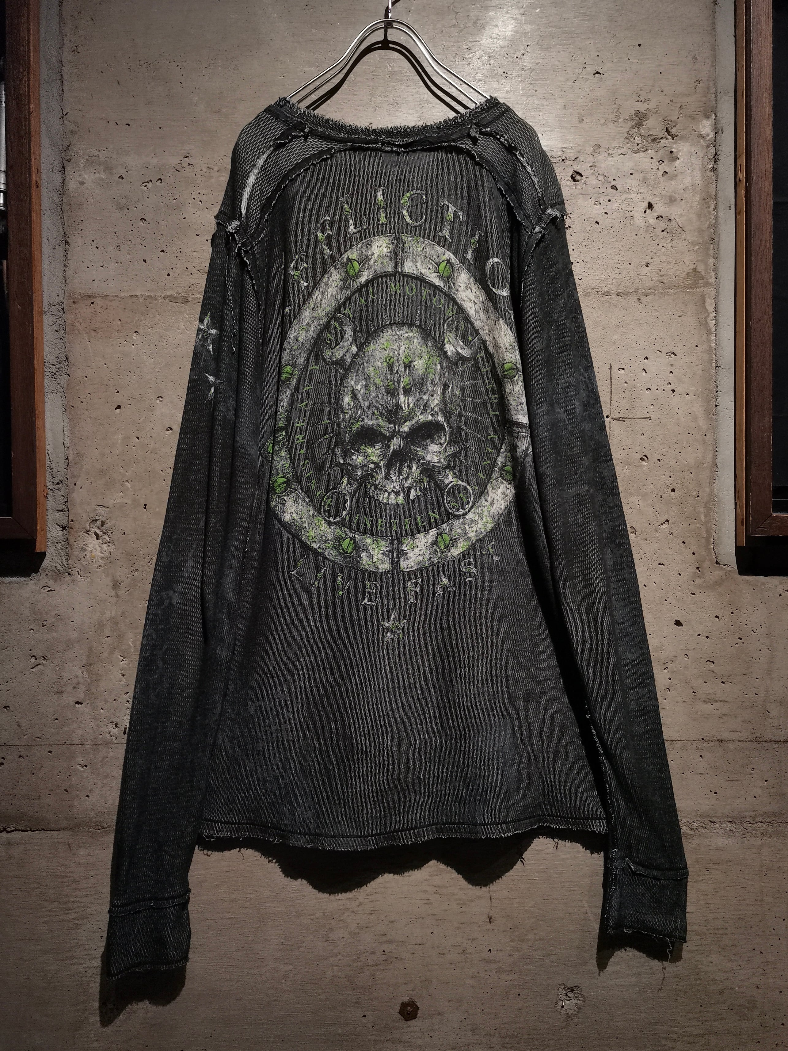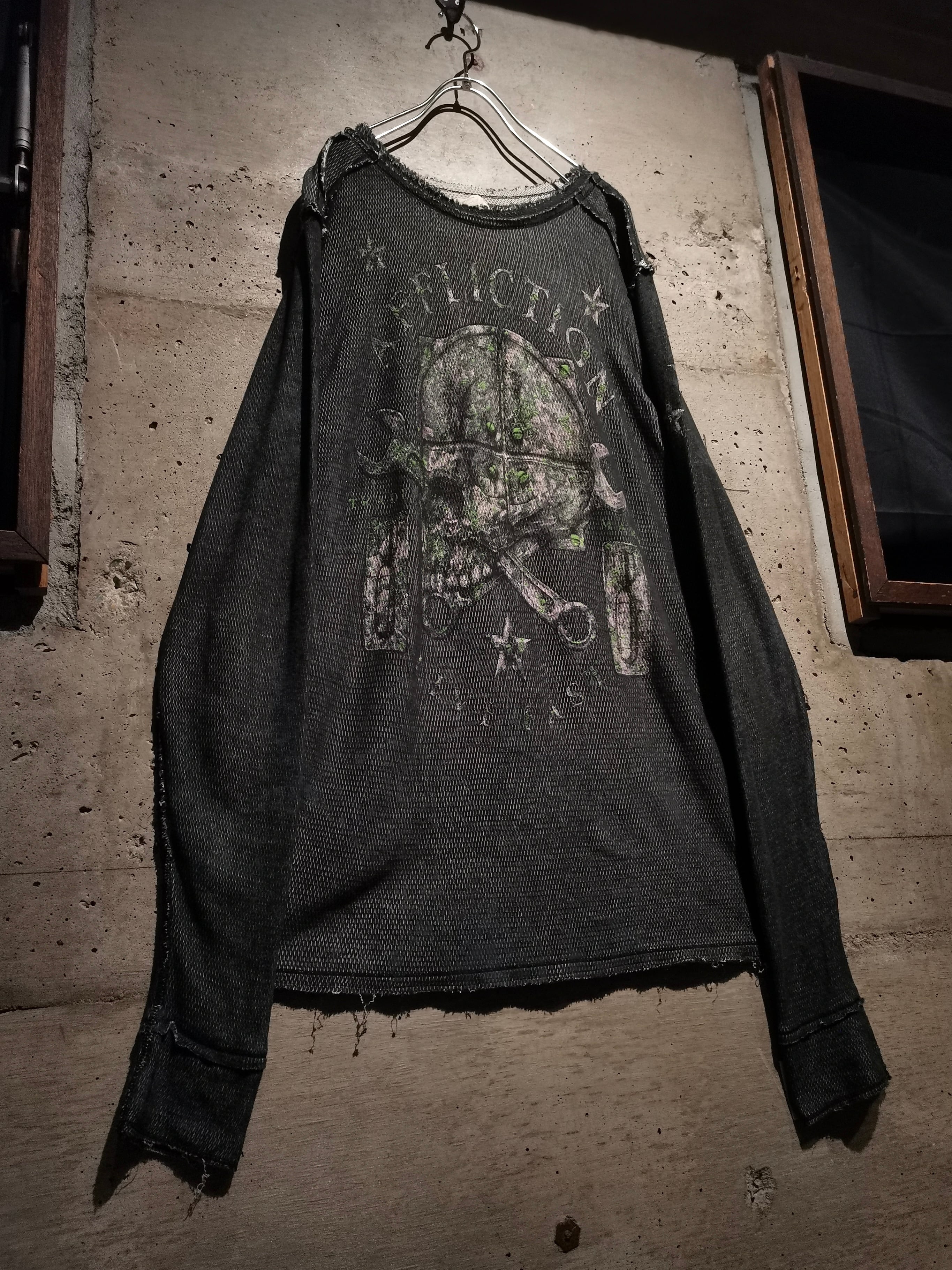 引き続きこの手のジャンルは当店でも非常に気分で力を入れて店頭でも展開中ですが、その中でも"Affliction"の稀有なリバーシブル仕様のサーマルロンTです。
