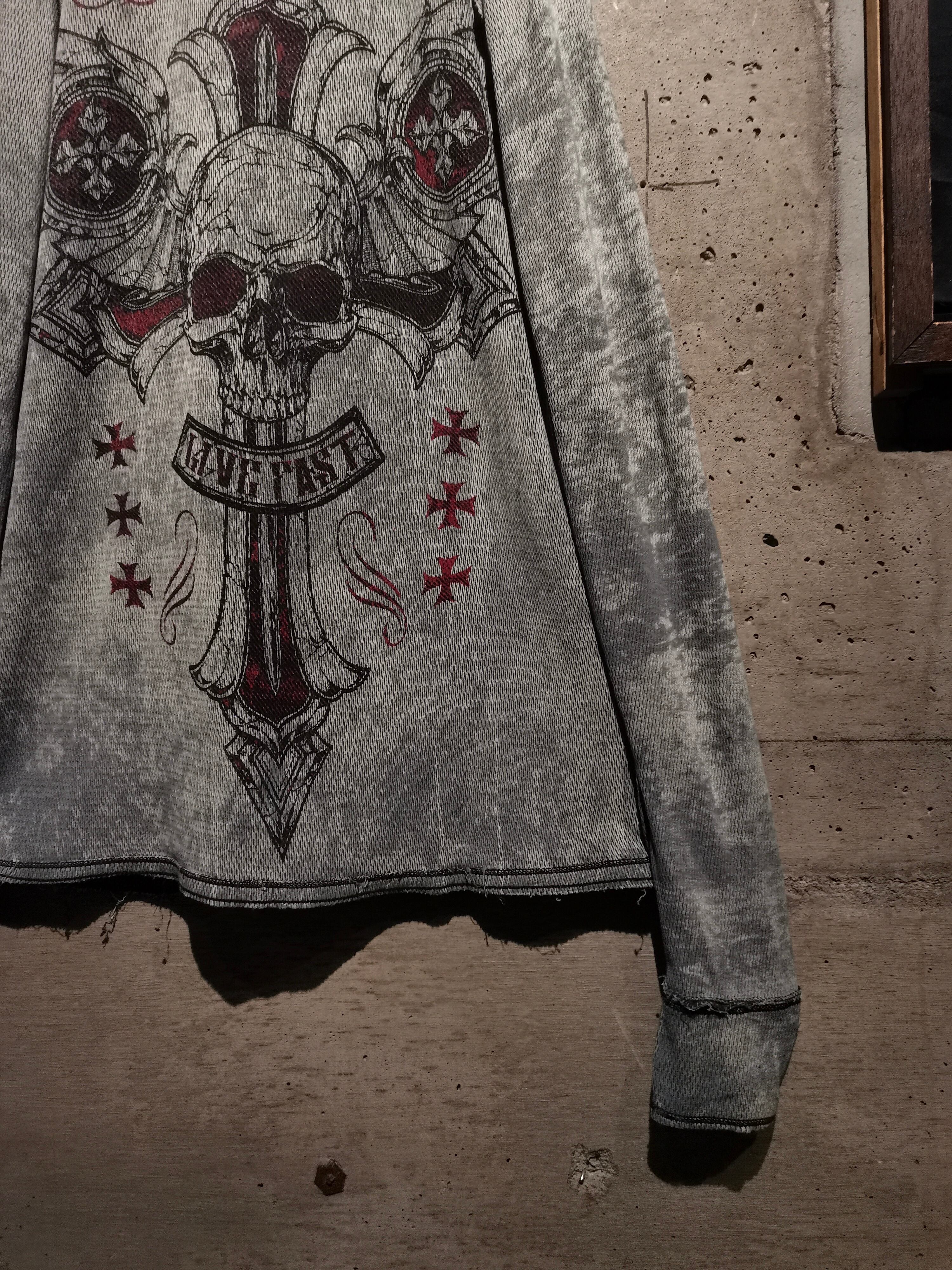 多くのアーティストやアスリートたちを魅了し、ジョシュ・バーネット、チャック・リデル、オジー・オズボーンなどとのコラボレーション実績もあるアメリカンカジュアルブランド"Affliction"より、スペシャルな1着をご紹介致します。