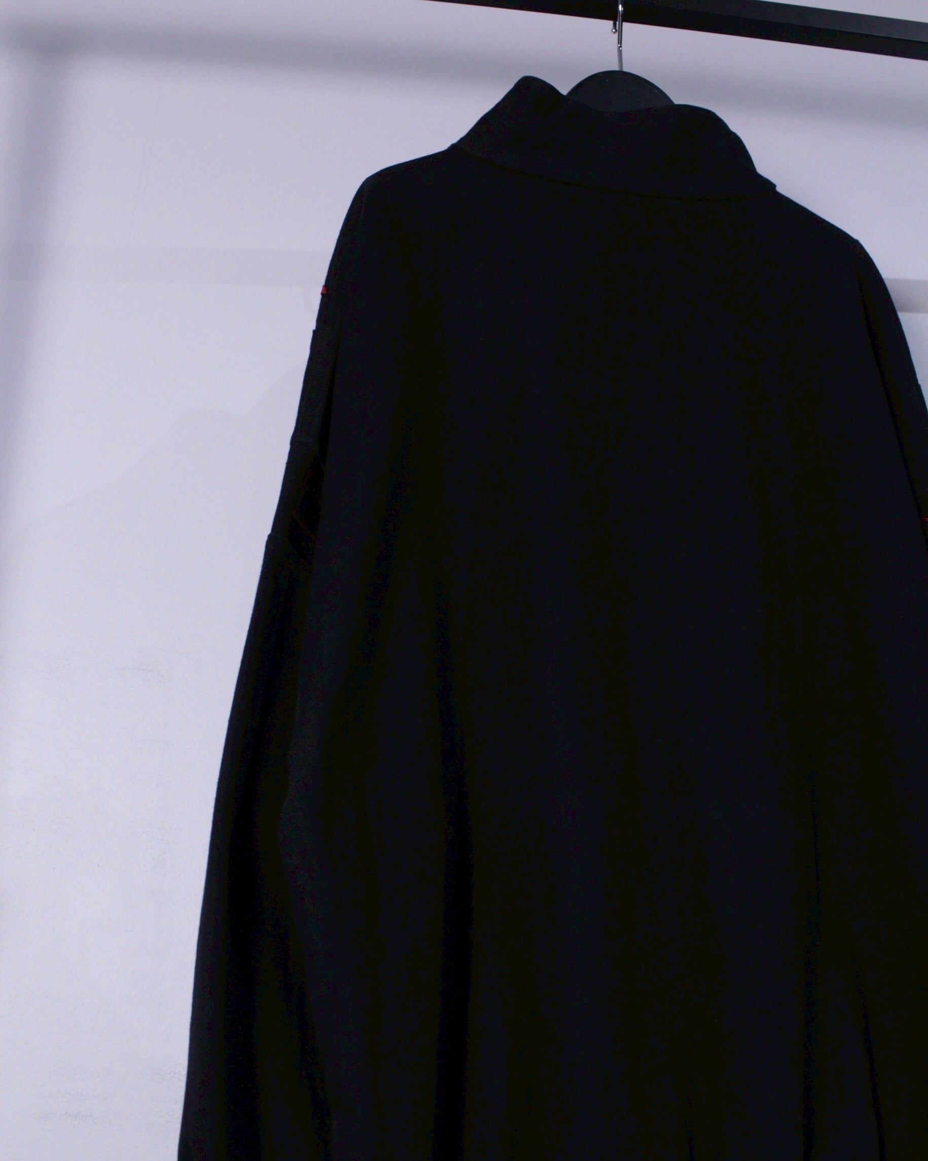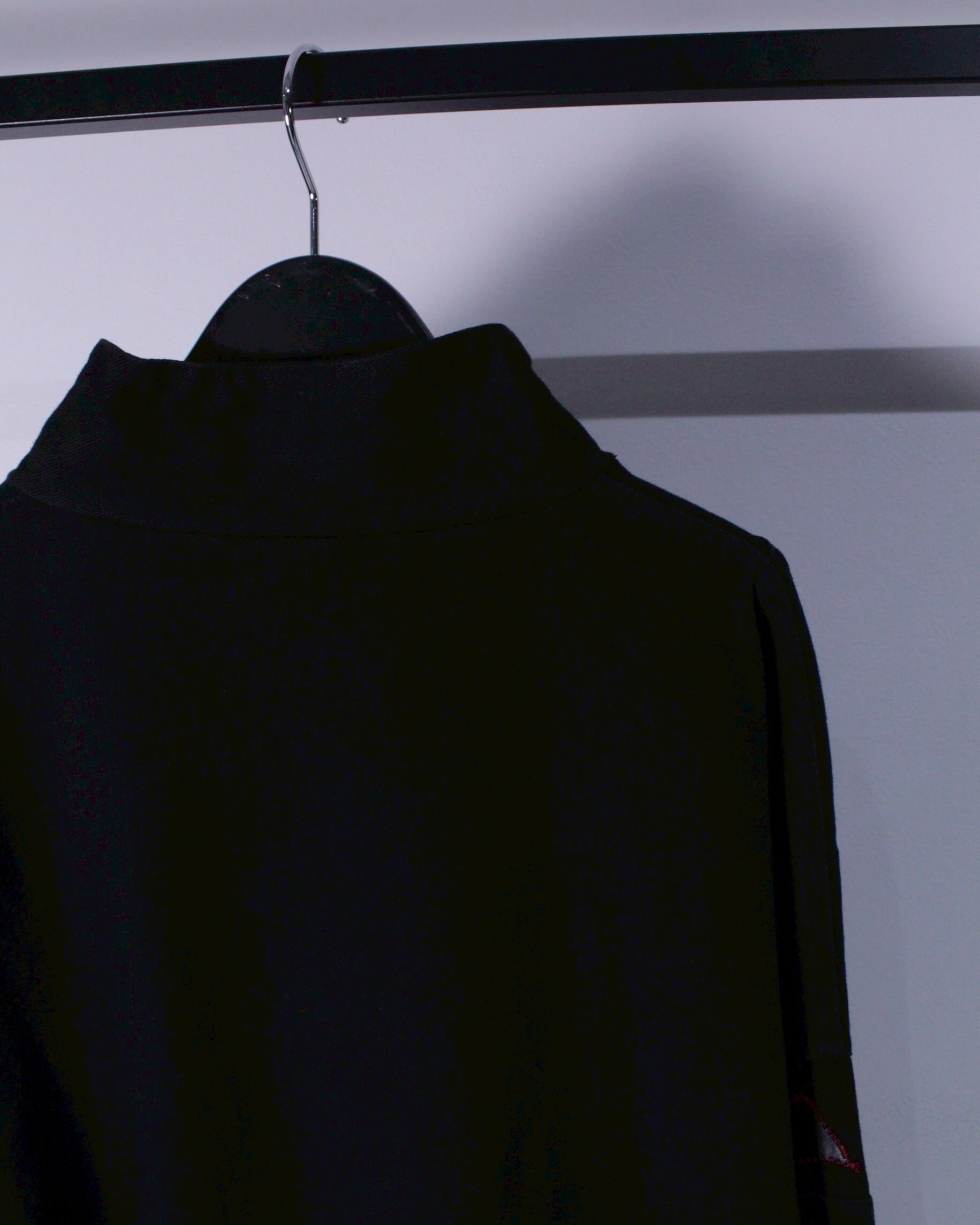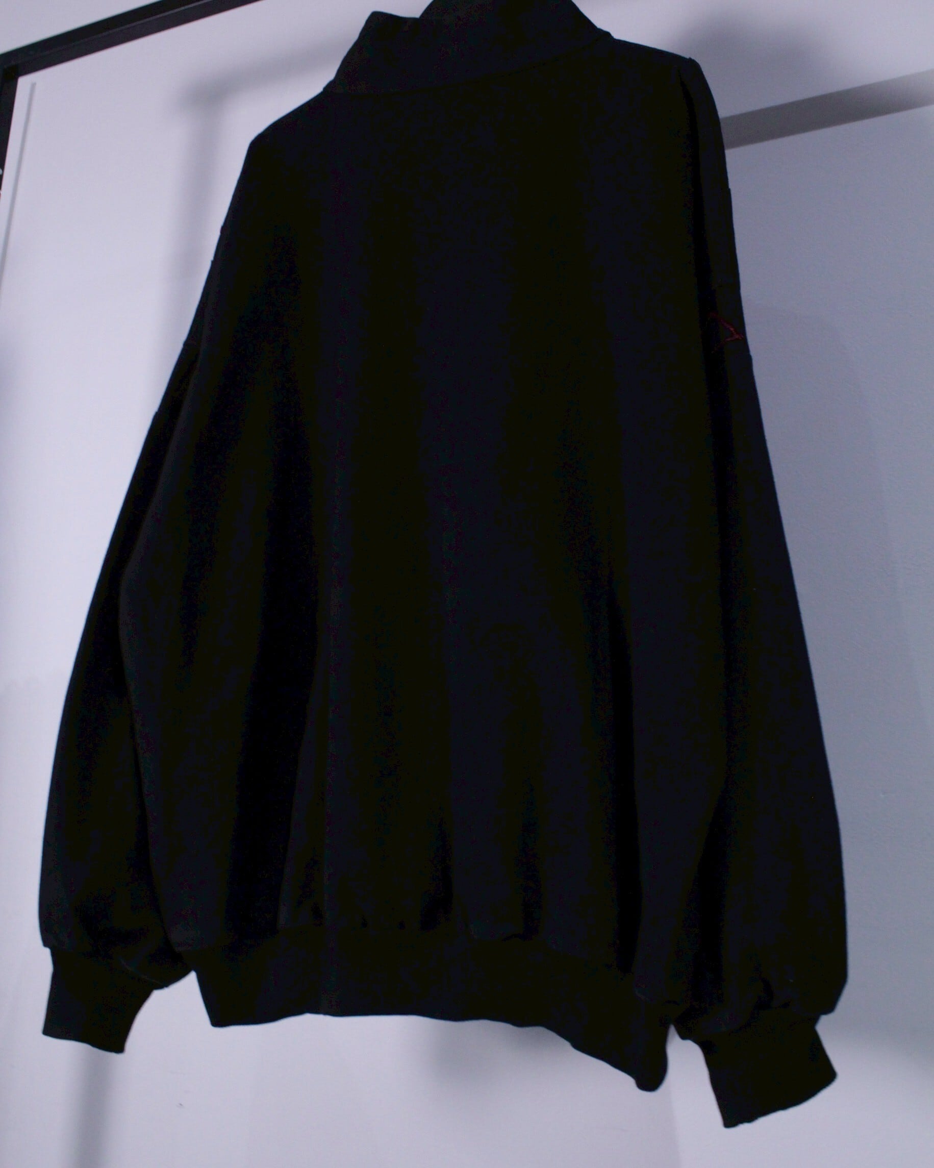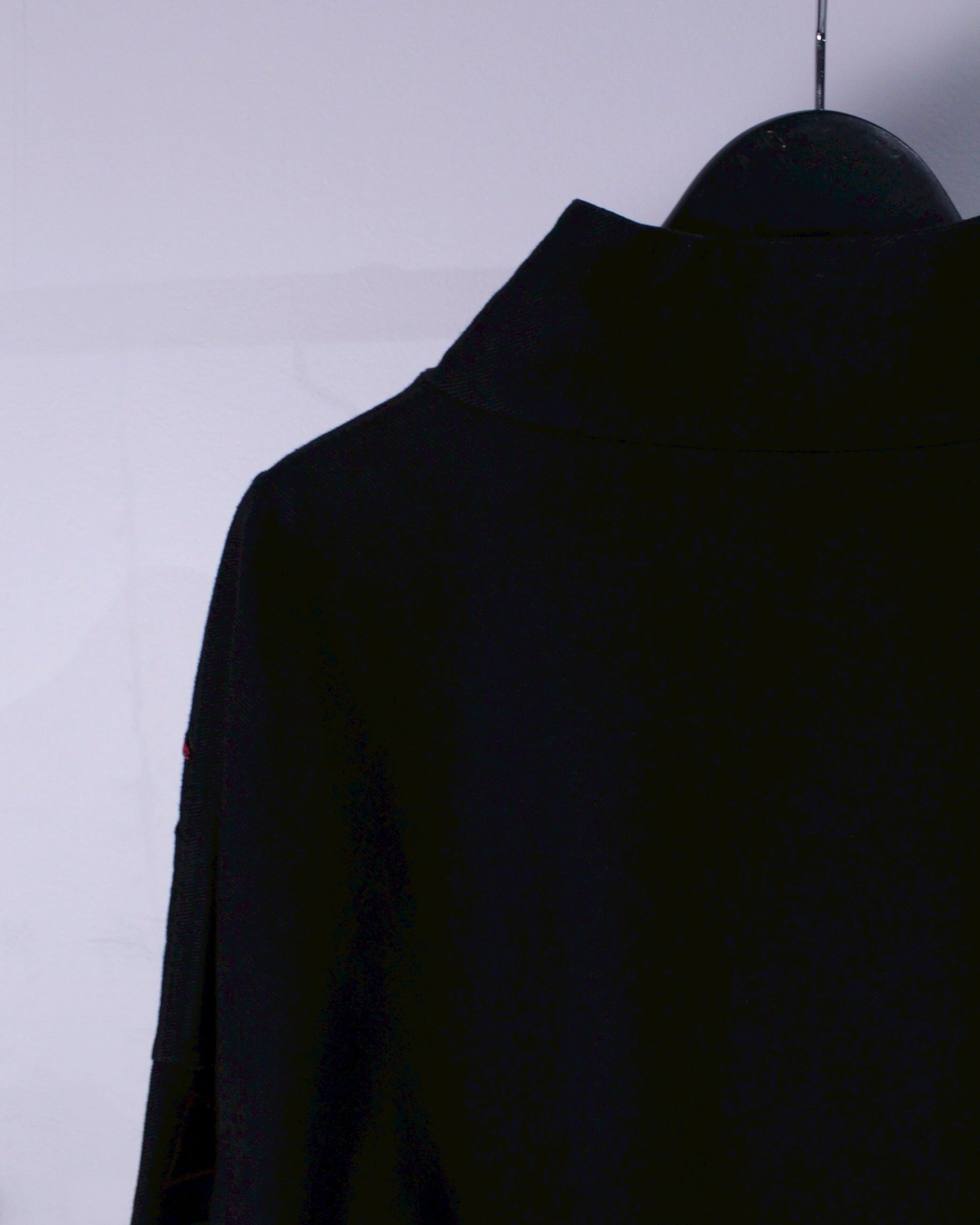ブラックのツイル織りの生地をボディに用いたプルオーバーハーフジップジャケット。