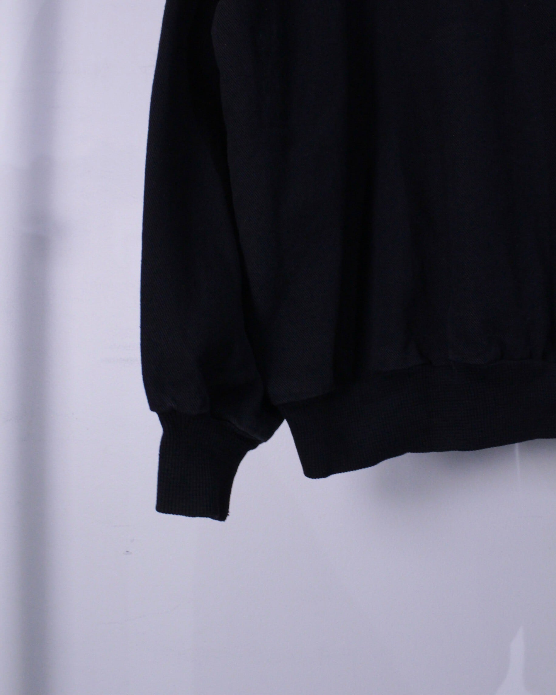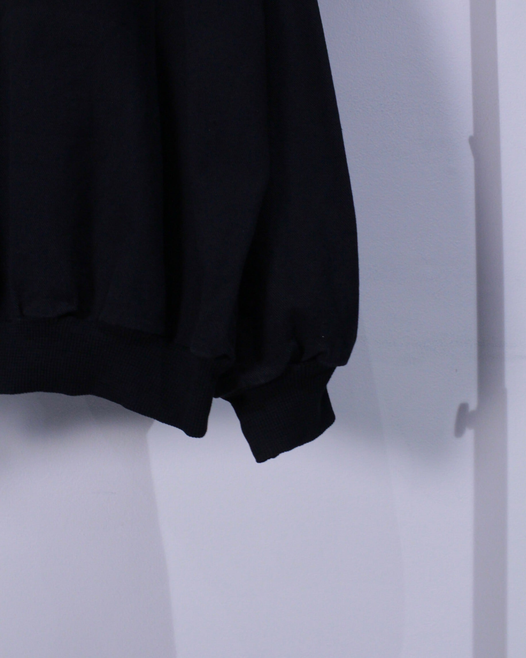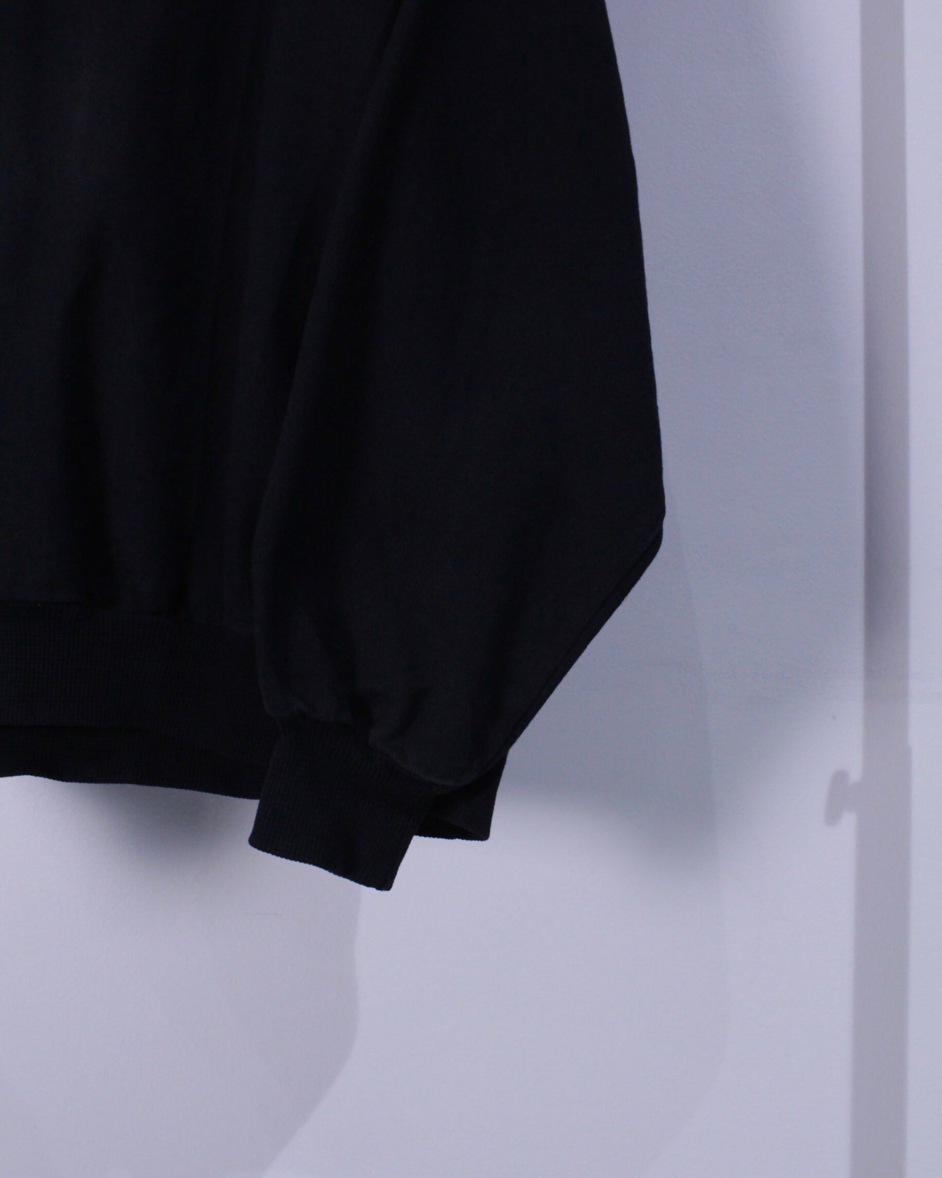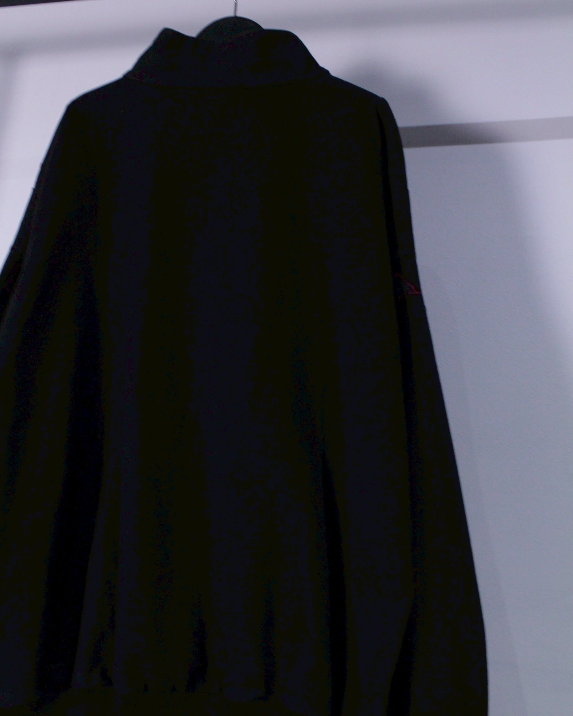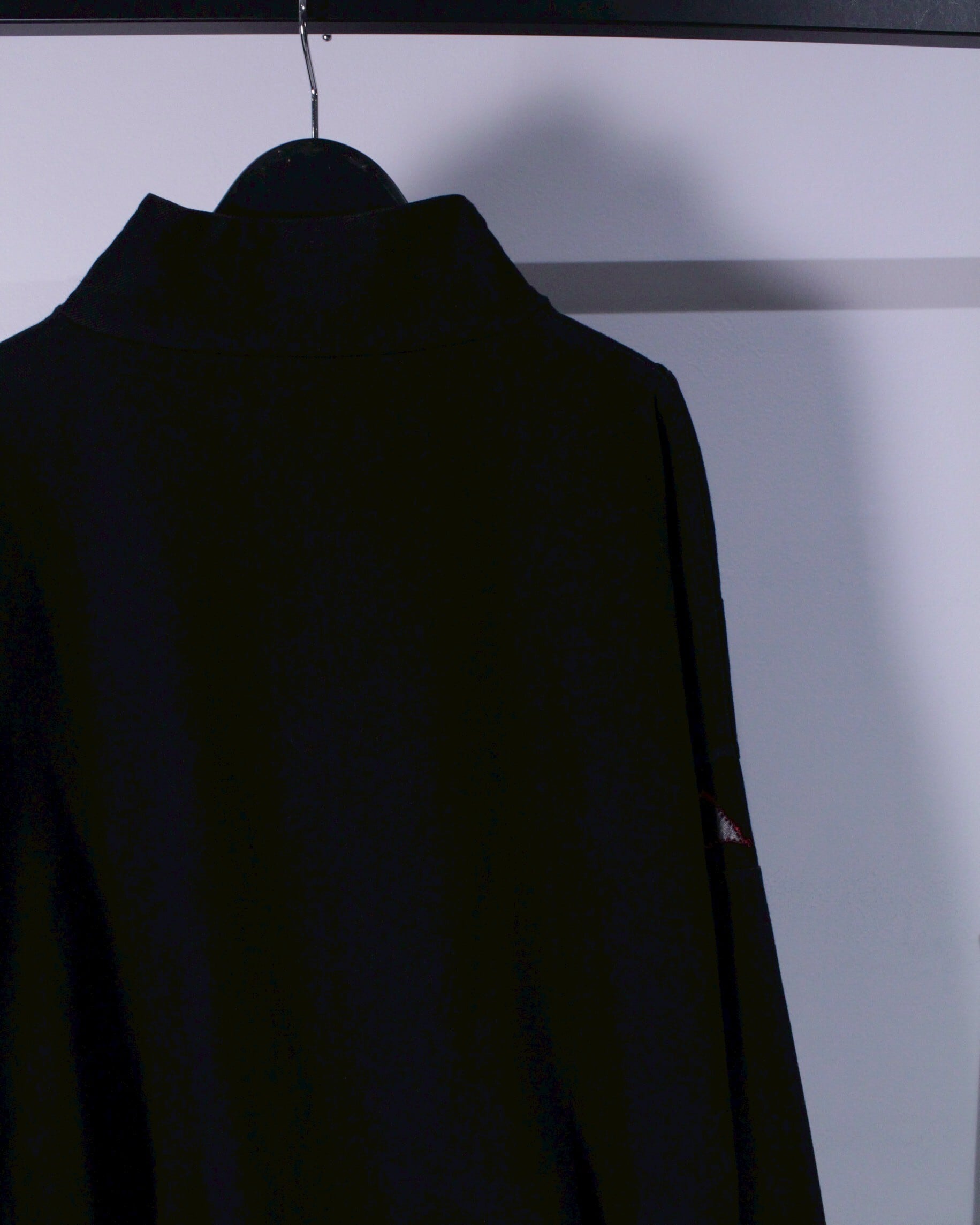 ブラックのツイル織りの生地をボディに用いたプルオーバーハーフジップジャケット。