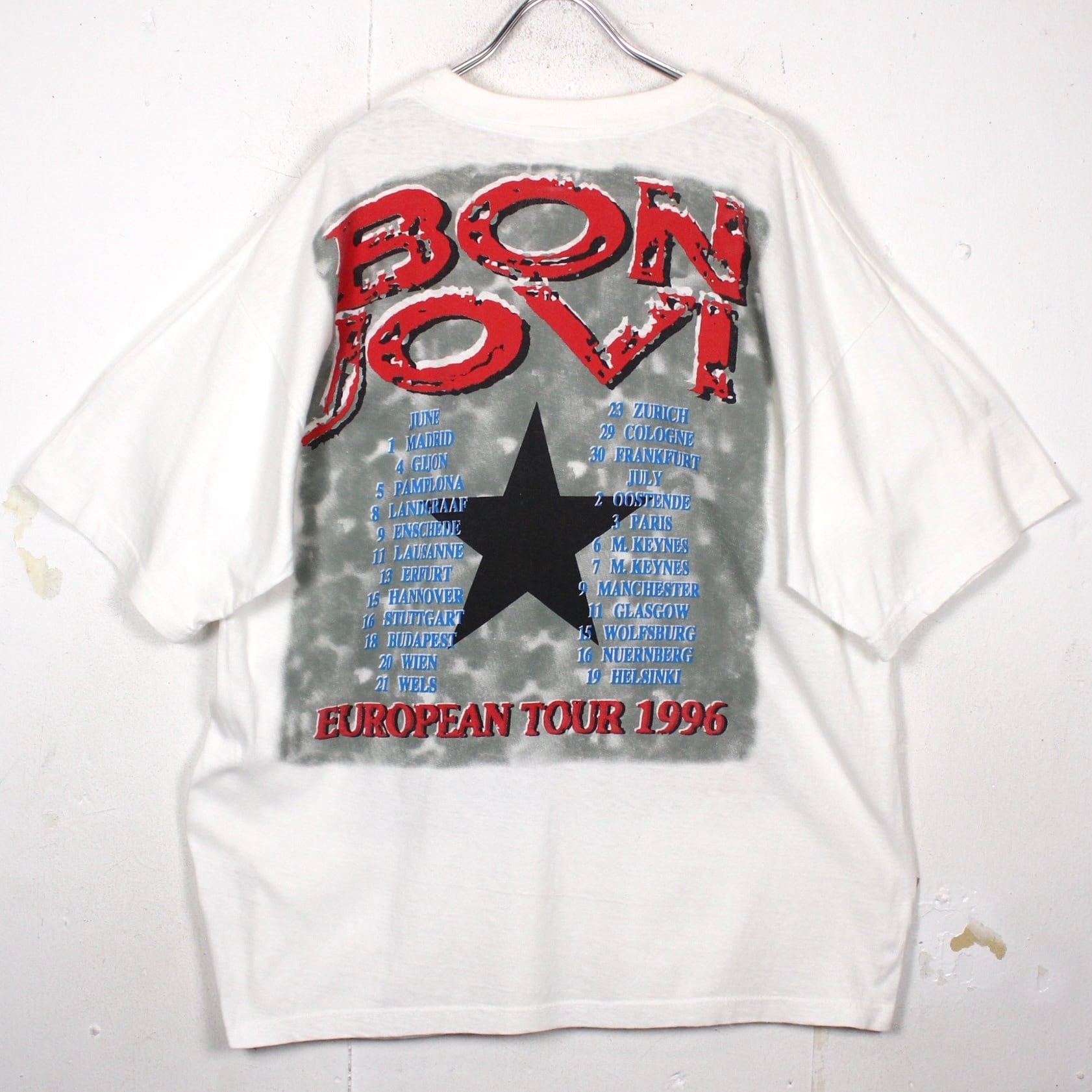 グランジ、ヒップホップが台頭した1990年代前半、"BON JOVI"も音楽業界で生き残りをかけて音楽面でもヴィジュアル面でも変化を遂げましたが、そんな中1996年に行われたヨーロッパツアーのTシャツ。