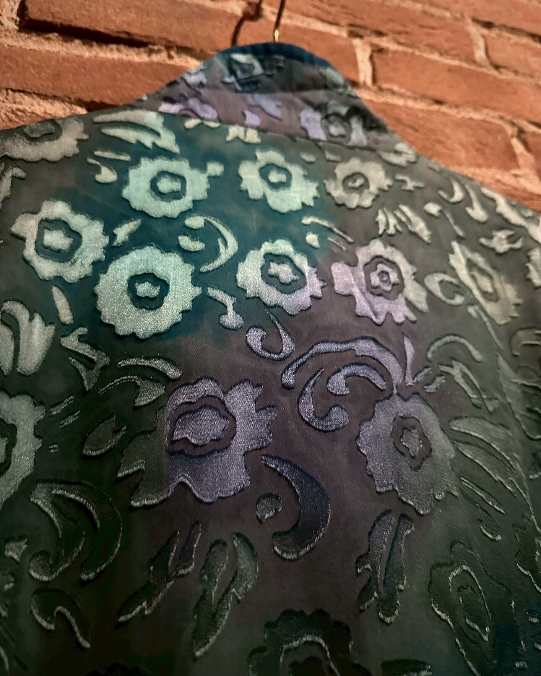 ボディには華麗に舞う花を上質なジャガード織りで表現。シアーと花柄の掛け合わせにより、上品さと高級感をムンムンに漂わせています。