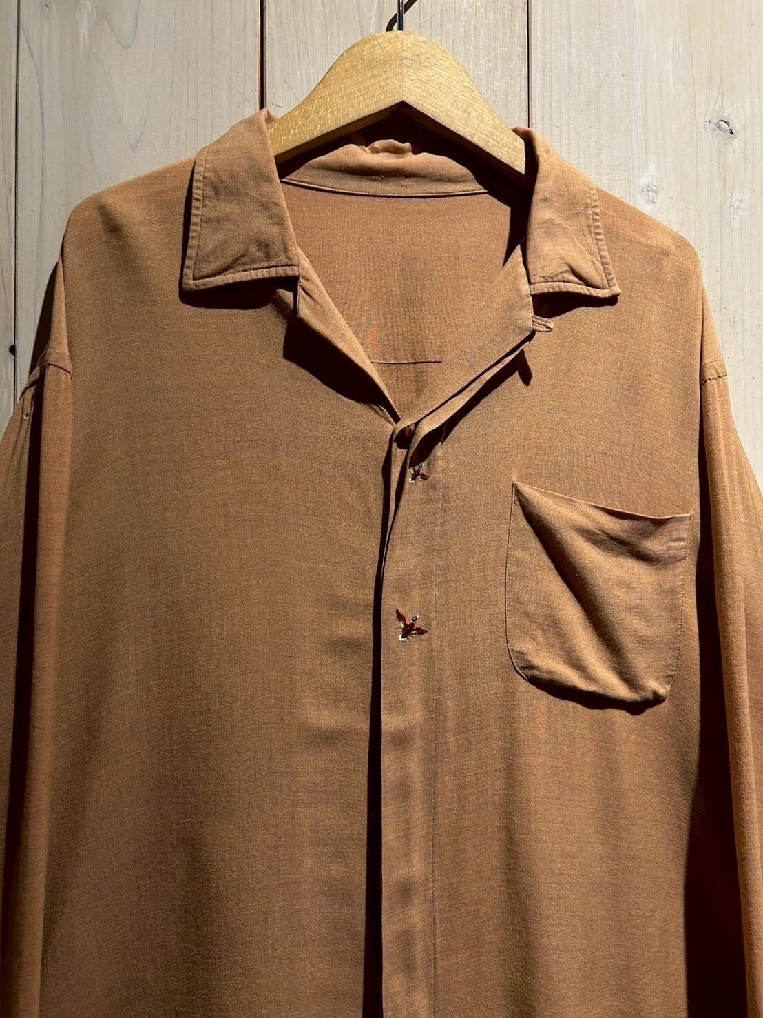 柔らかさの中にトロみのある、上質なレーヨンを用いた60'sヴィンテージの長袖オープンカラーシャツ。