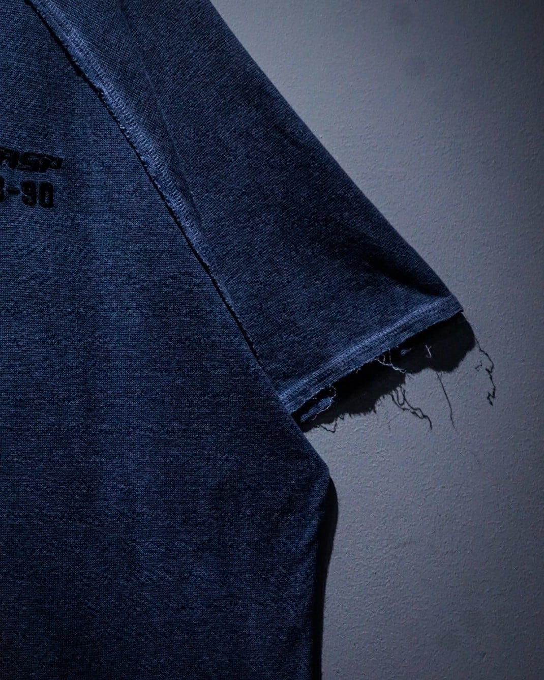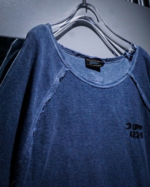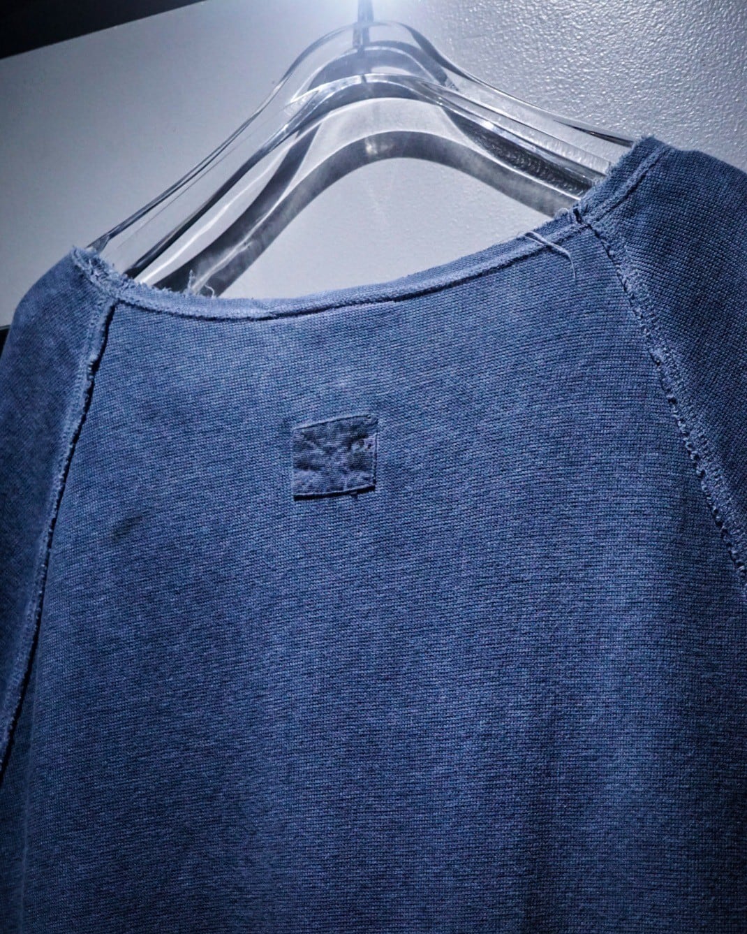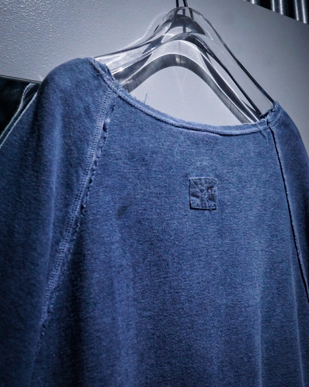 ラグランスリーブ仕様の肩部分のシーム部分はインサイドアウトのディテールをON。袖や裾から垂れるほつれをあえてそのままにすることで動きに加え、立体的な奥行きを生み出してくれています。
