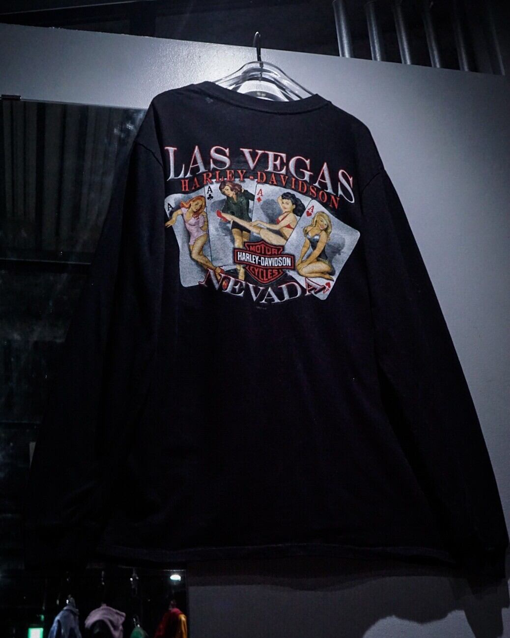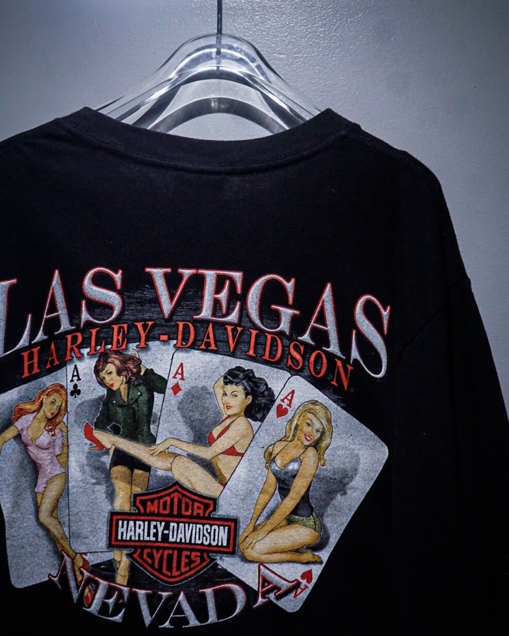 左胸、背面にはブランドロゴとLas Vegasの文字、背面にはアメリカらしい女性のトランプをプリントした1着。