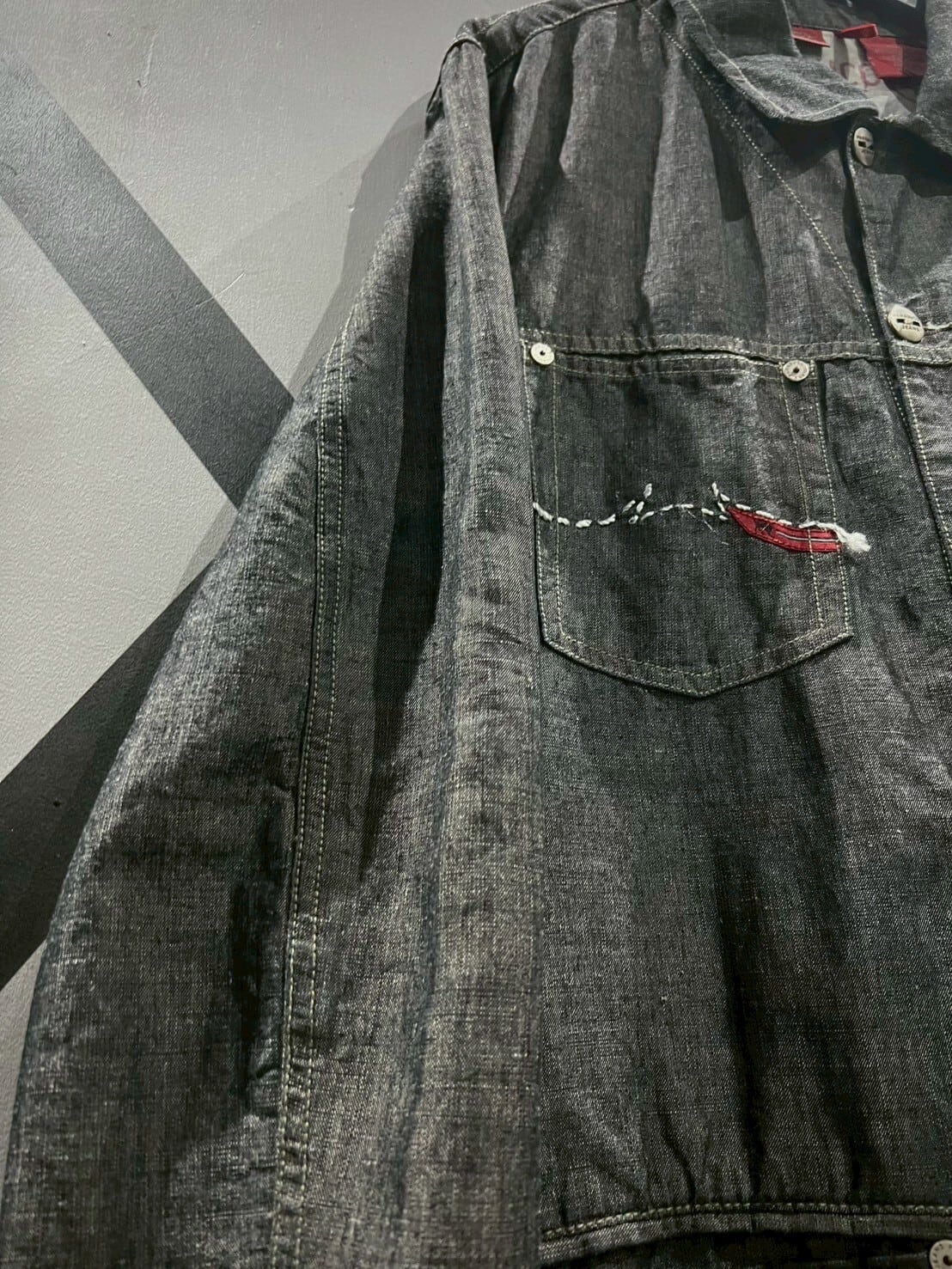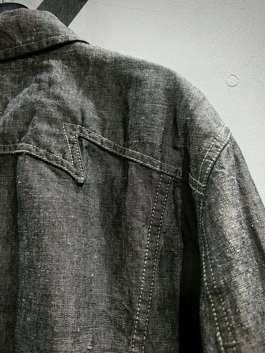 特徴的なヨークの切り替え、フロントには4つのポケットに、左胸にはステッチ、ボタンにはブランドネームのメタルボタン。