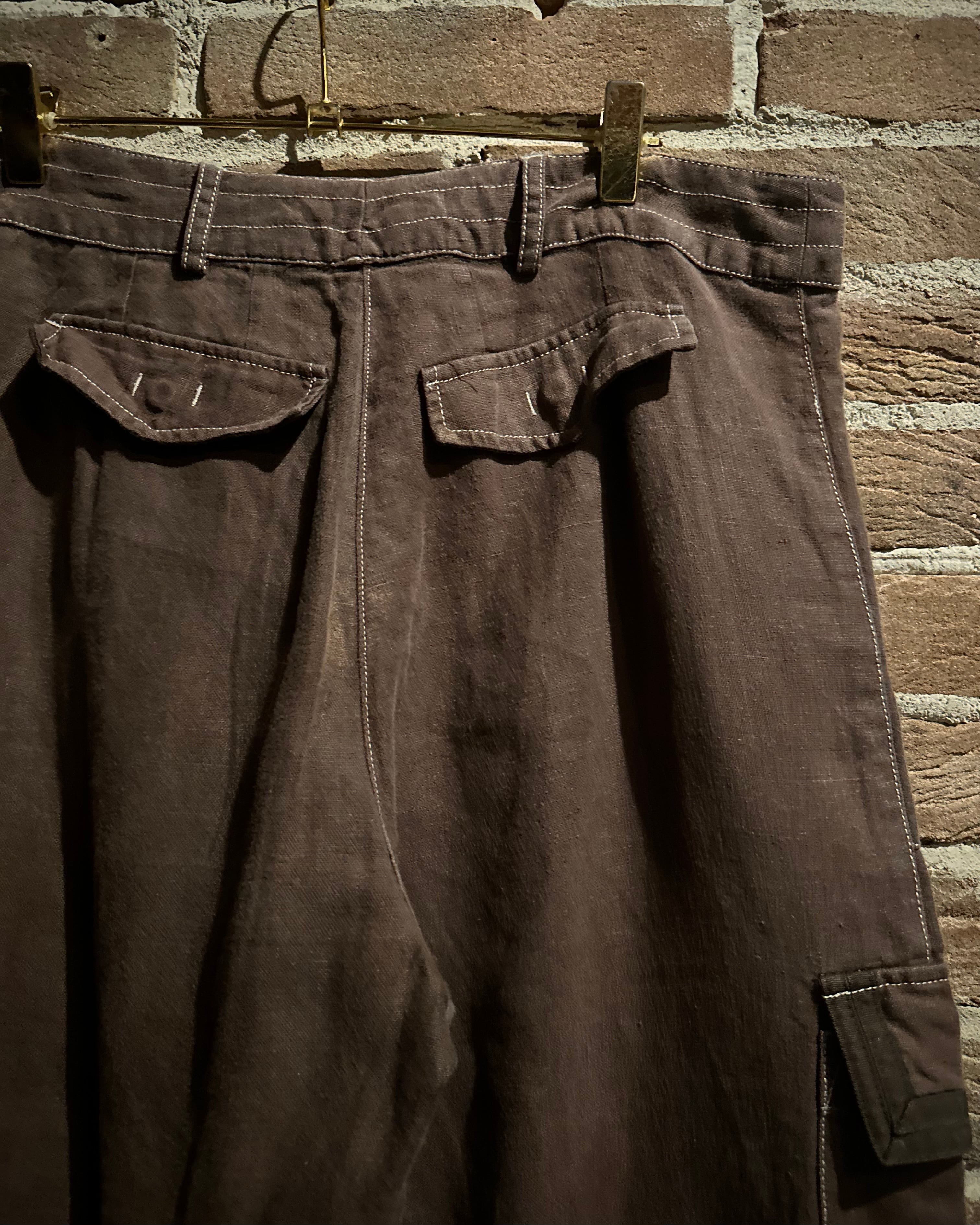 着れば着るほど味が出て育つ素材、リネンを用いたカーゴパンツ。生地感、素晴らしいパターンニングが相まって美しい落ち感を演出してくれます。