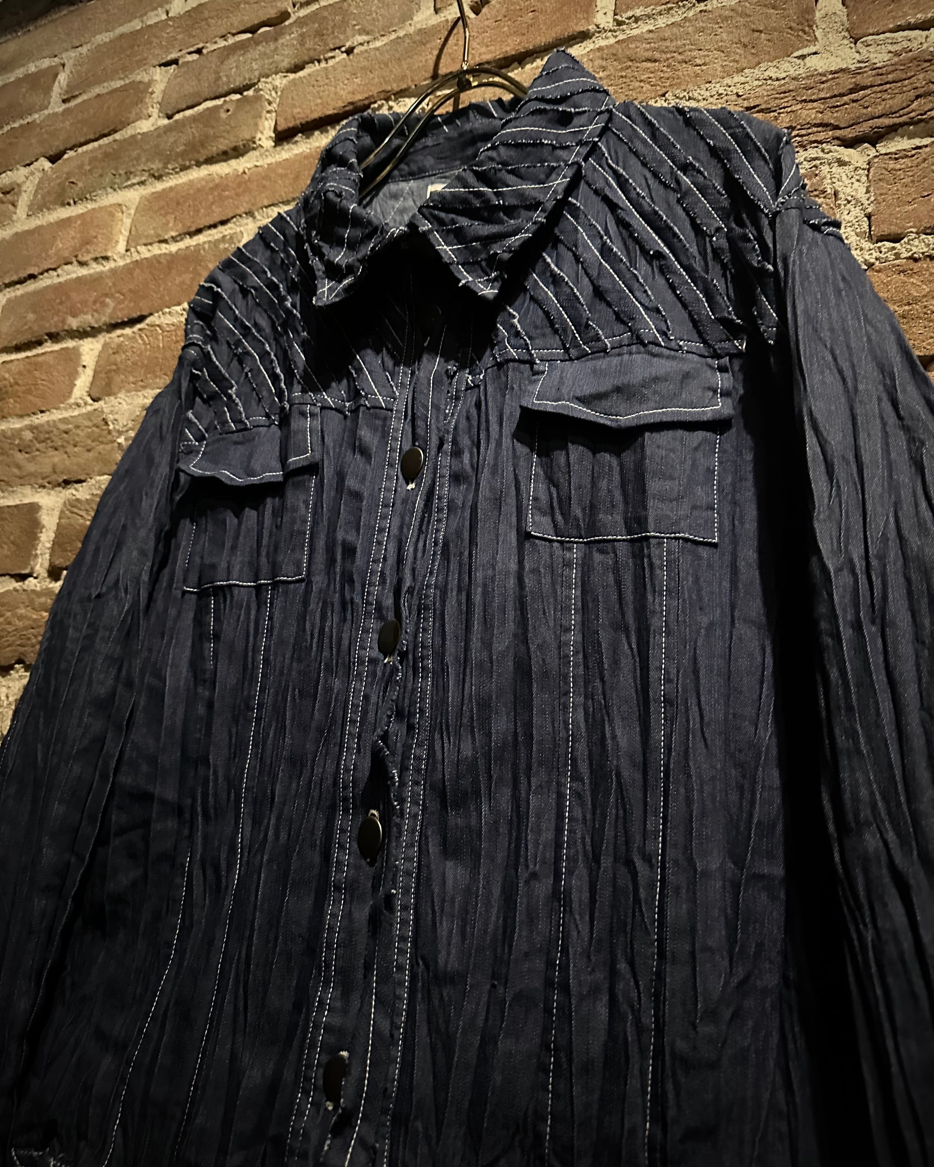 立体感のあるプリーツを施したボディに、切り替えデザインを載せたシャツジャケット。