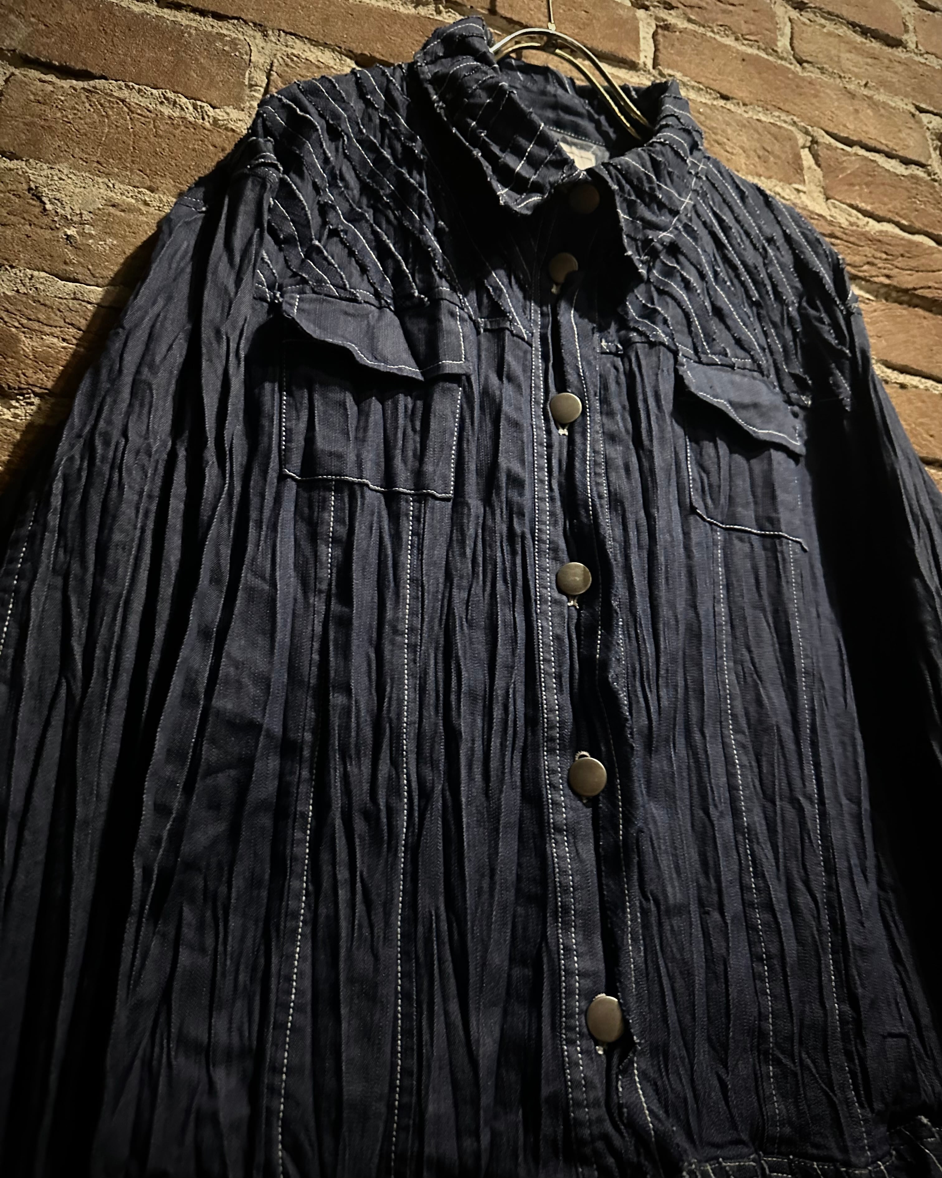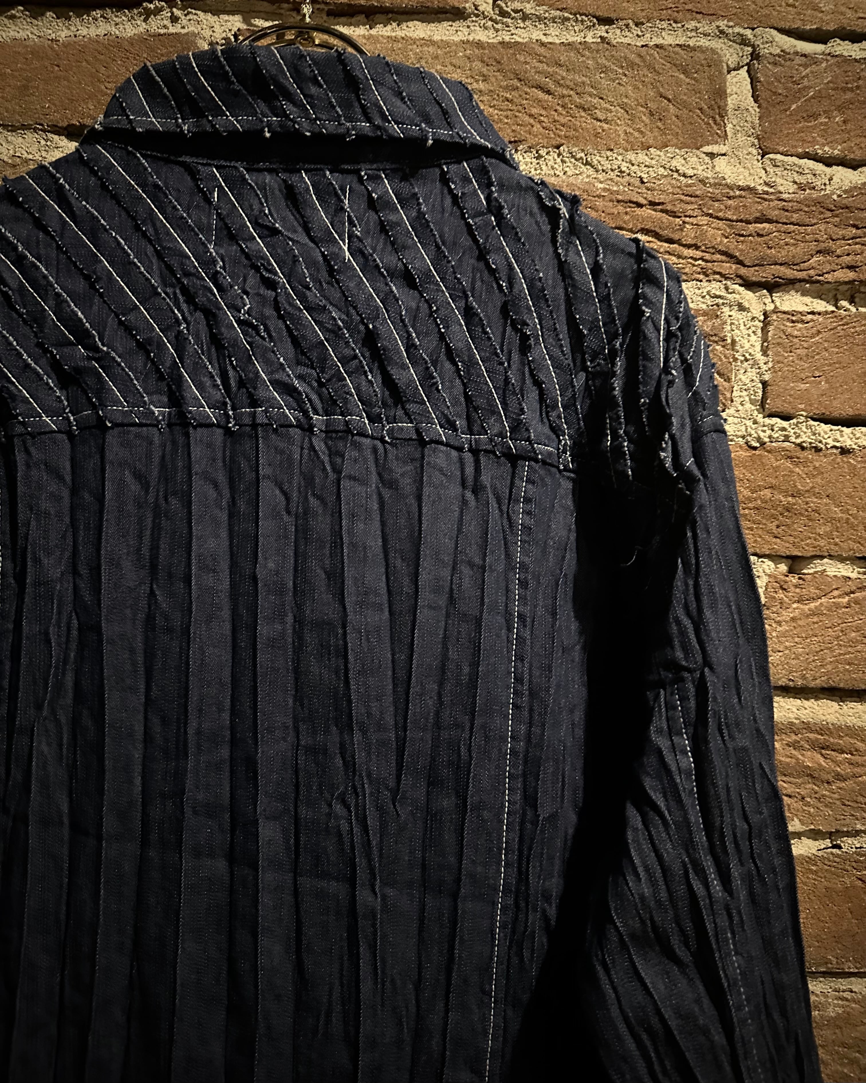 デニムのような風合いにプリーツの施しによって生まれる異質感が堪りません、、、