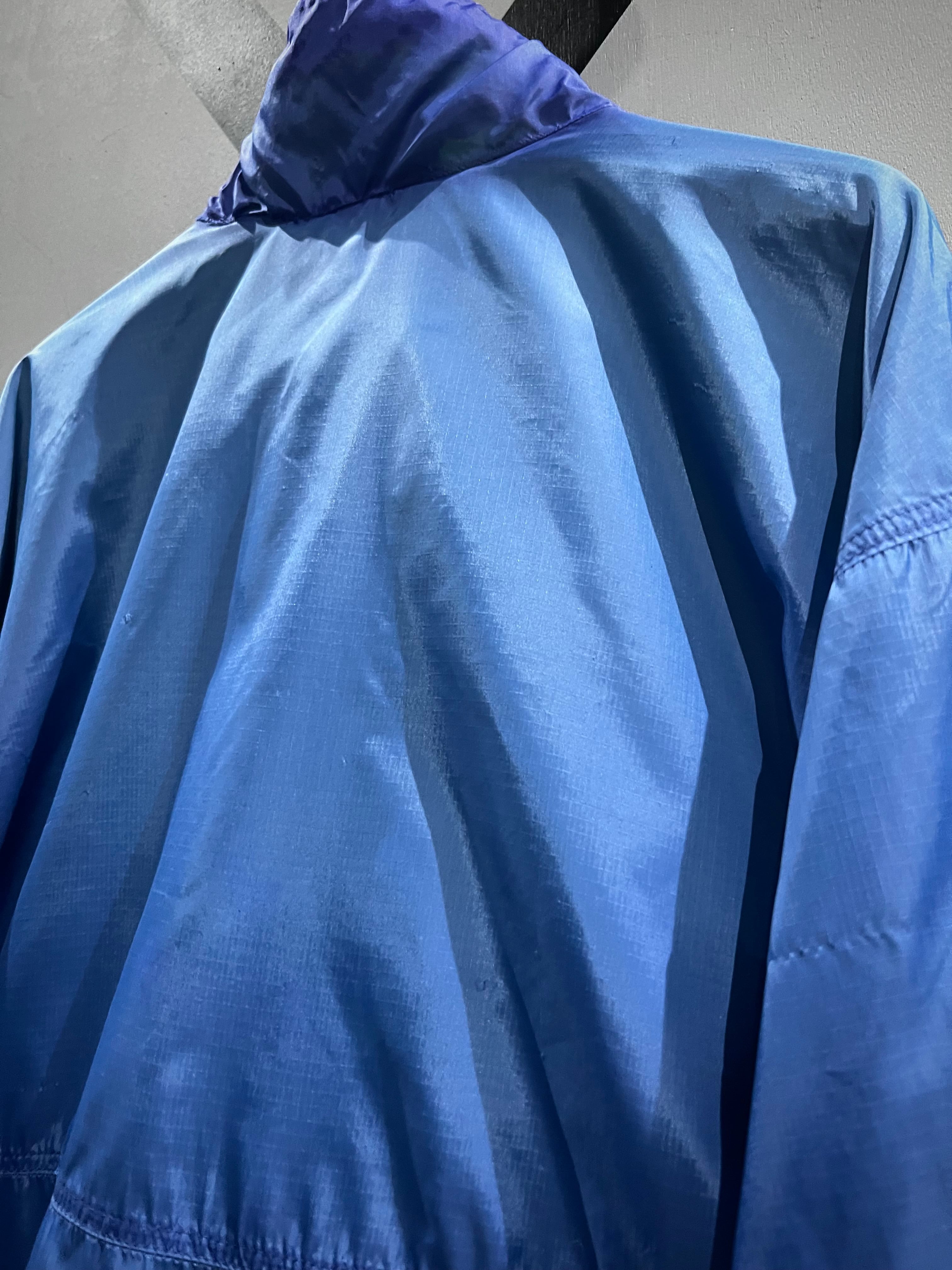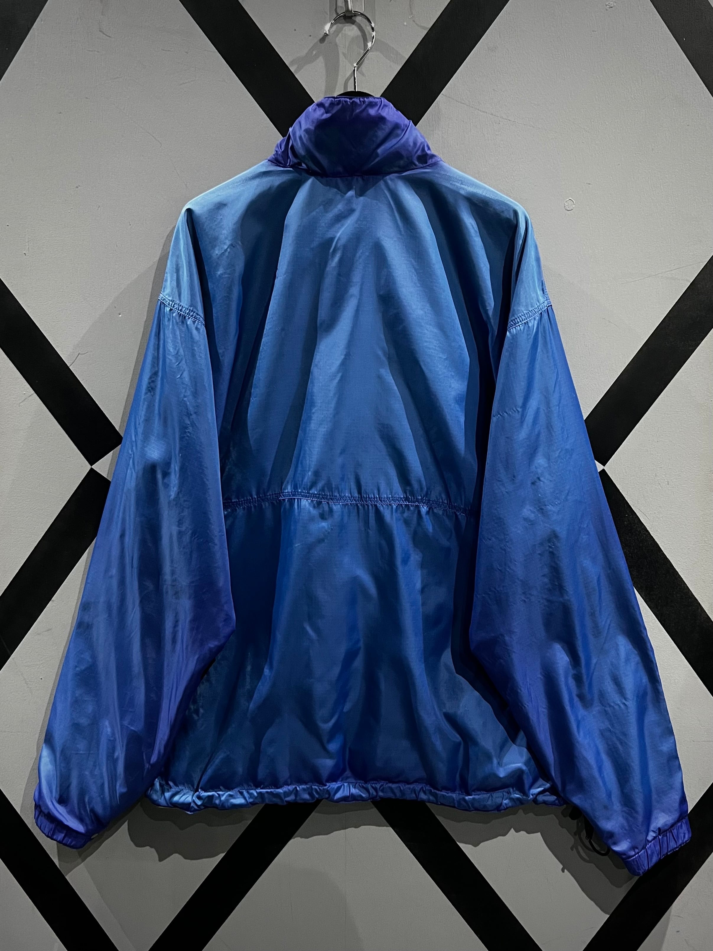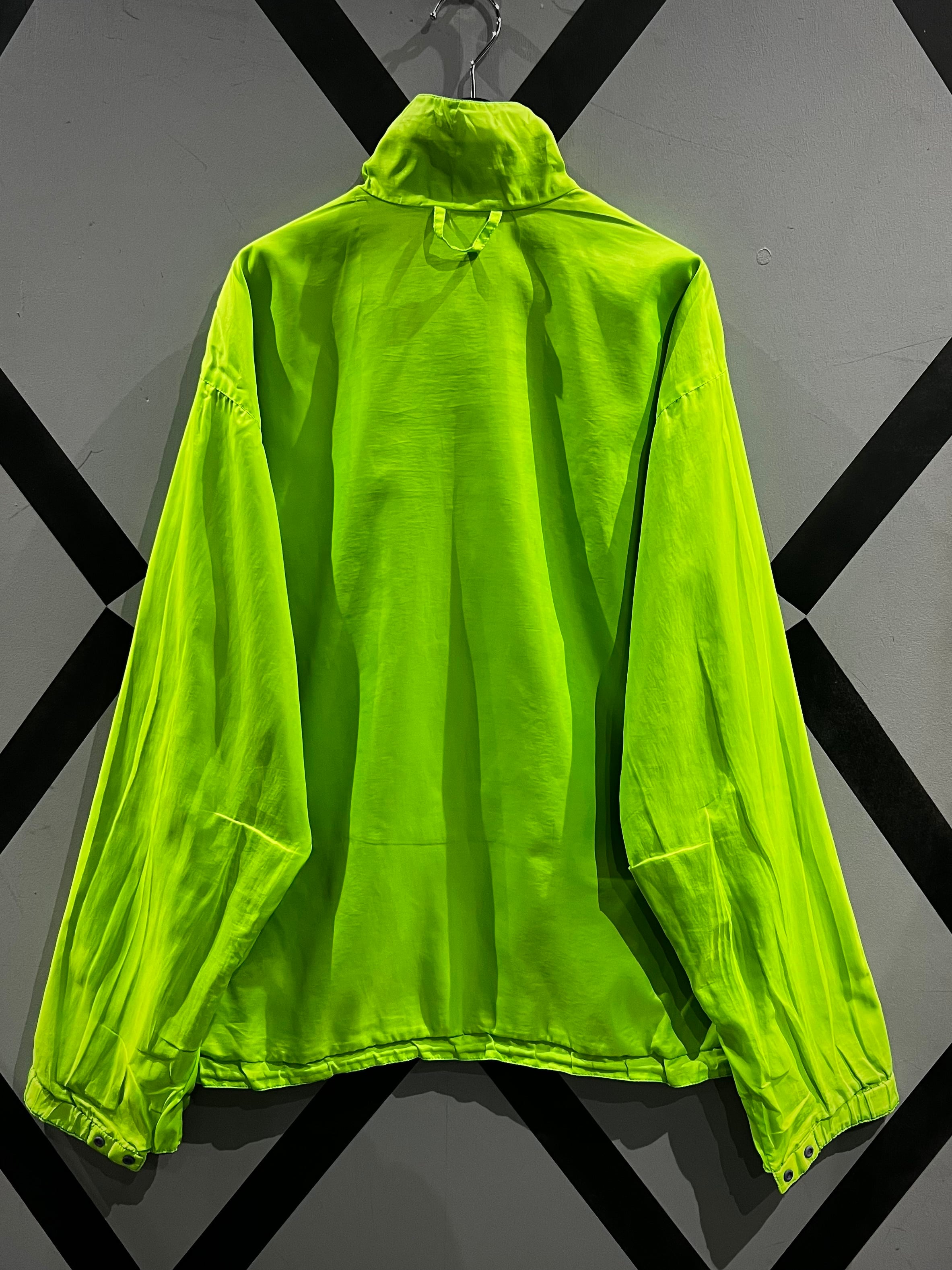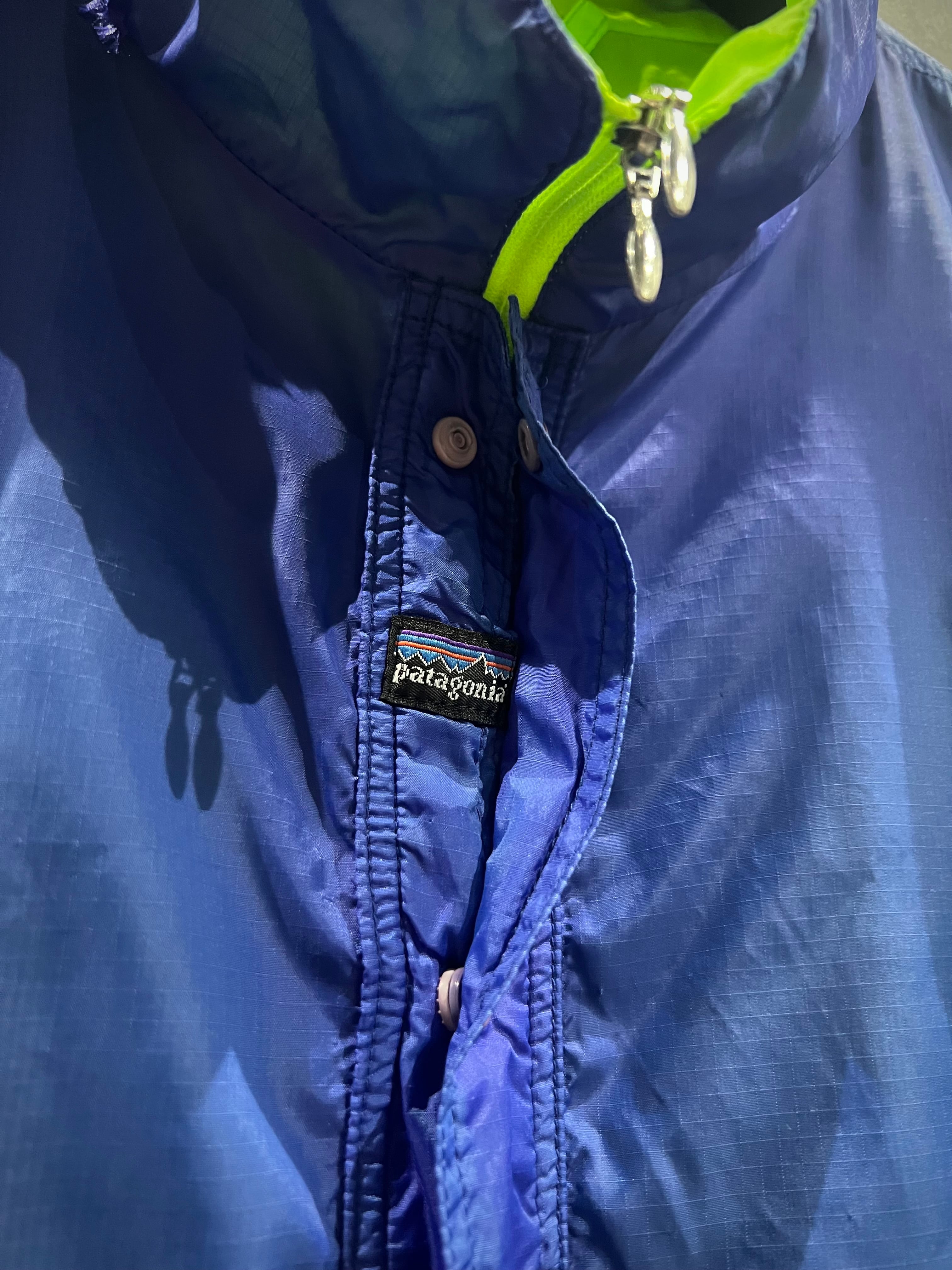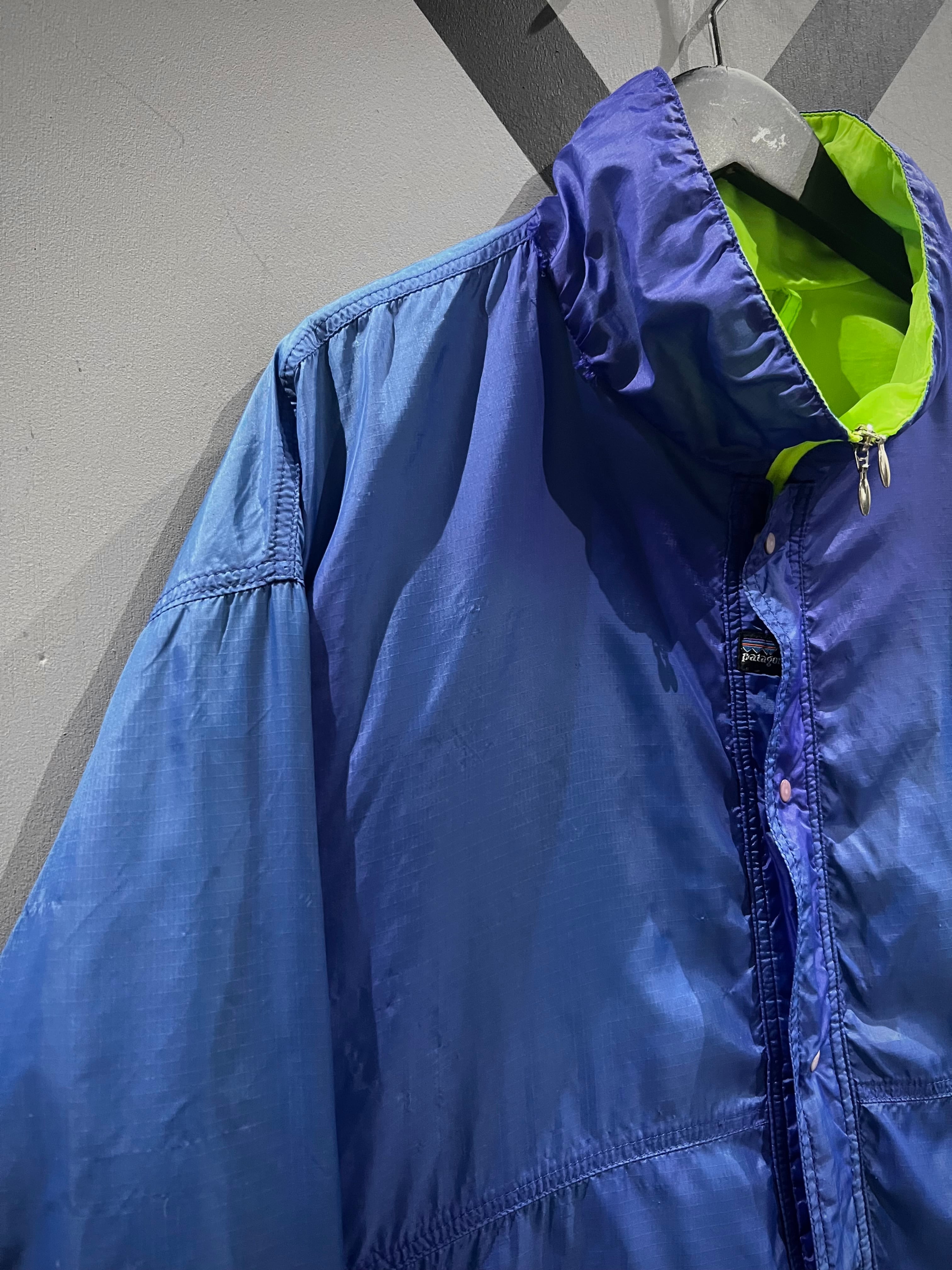 青のリップストップナイロンを用いて、ガバッと裏返すとネオングリーンへと切り替わるプルオーバー。