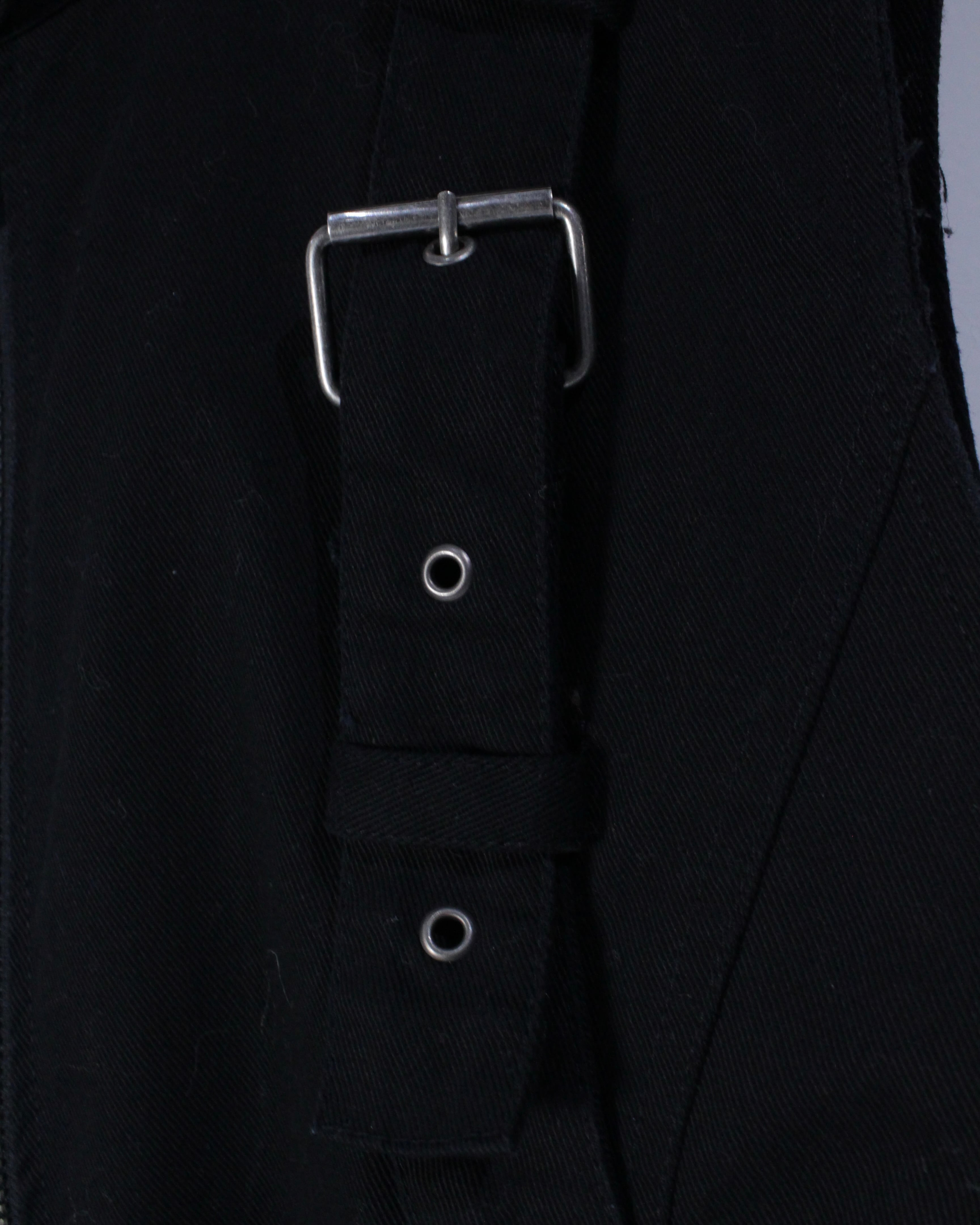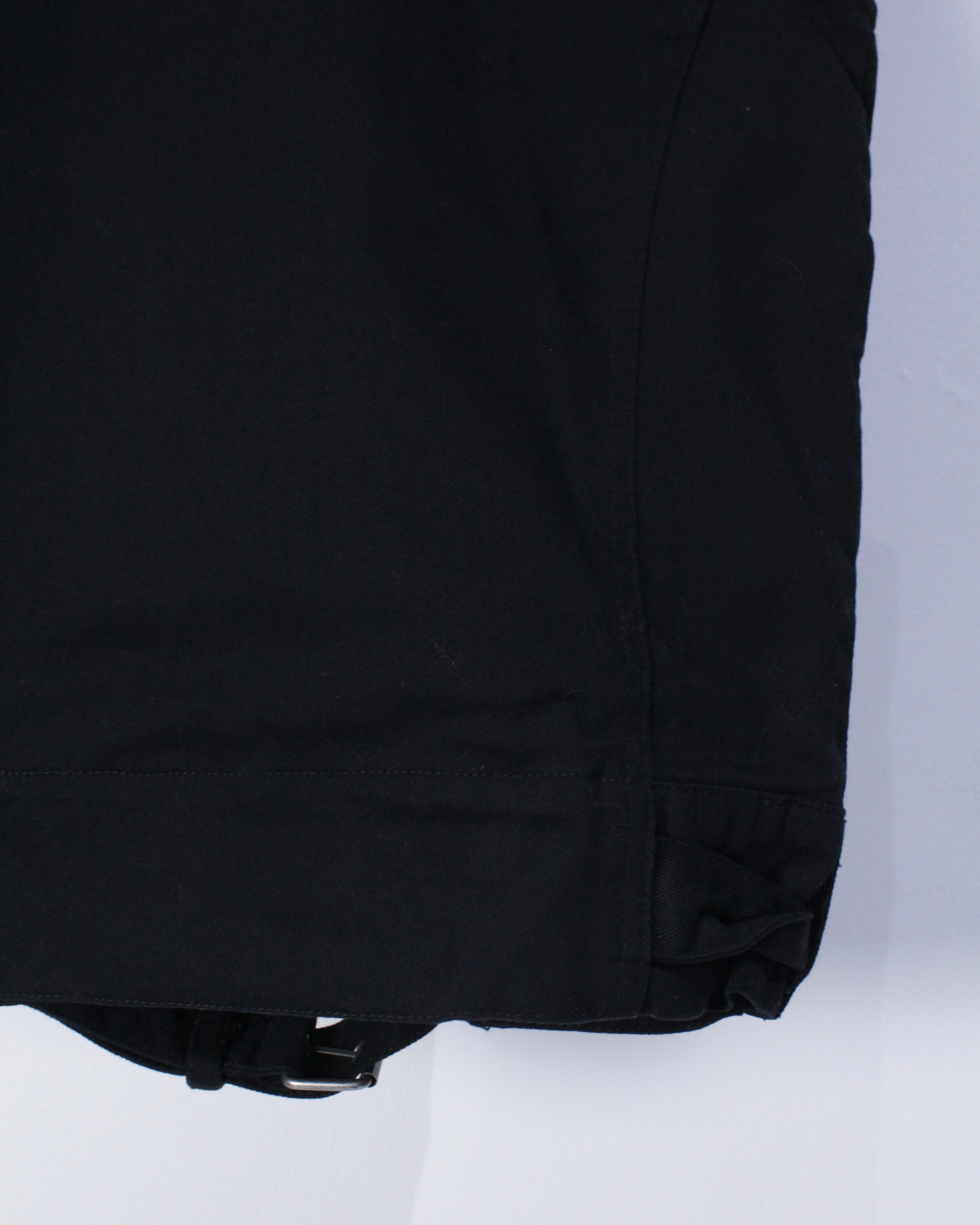 ブラックのボディに、両サイド、裾にベルトを施したデザインの1着。ベルトを絞ることでシルエットを変更することも可能です。