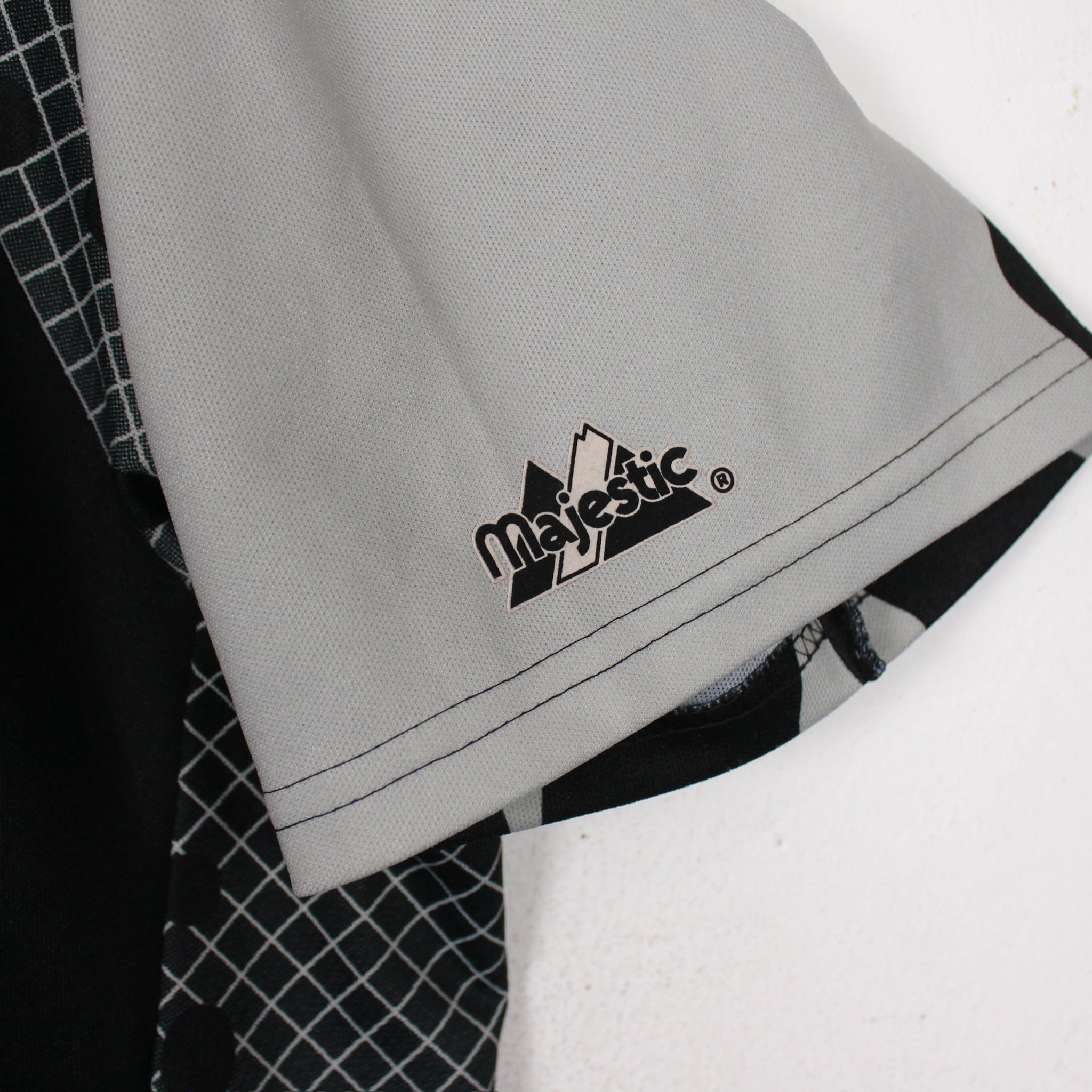 ジャージ素材のボディに、ヤンキースのロゴを左胸にON。アームから裾にこぼれ落ちるような柄を施した、他ゲームシャツよりもデザイン性の高い1着に仕上がっています。