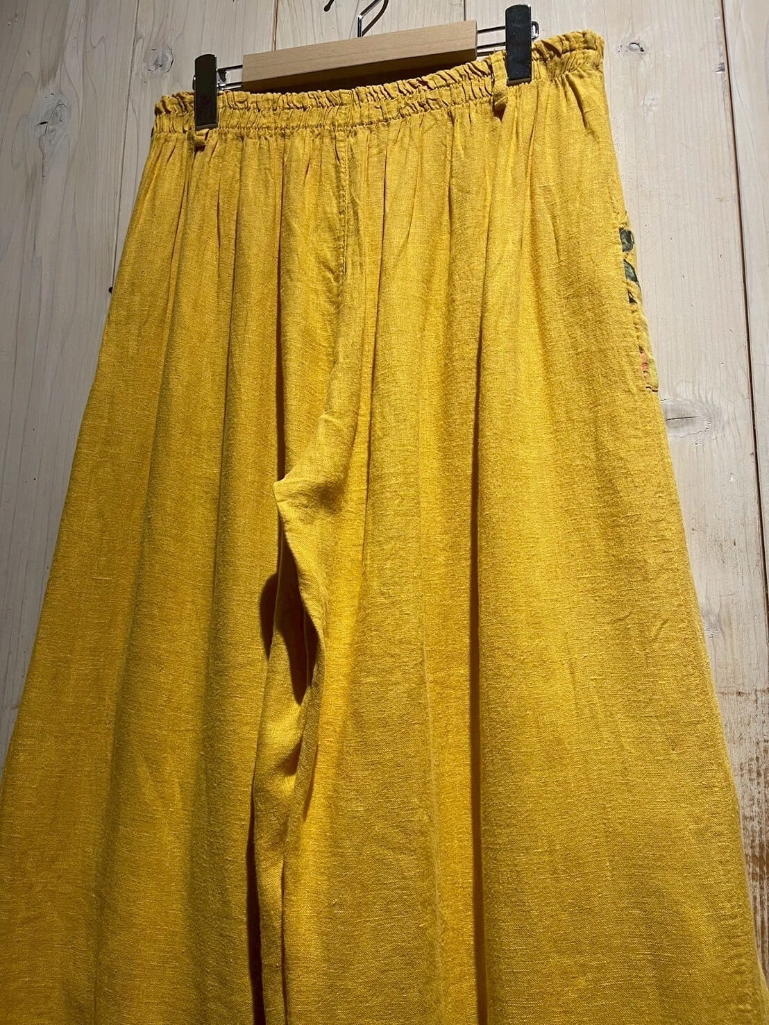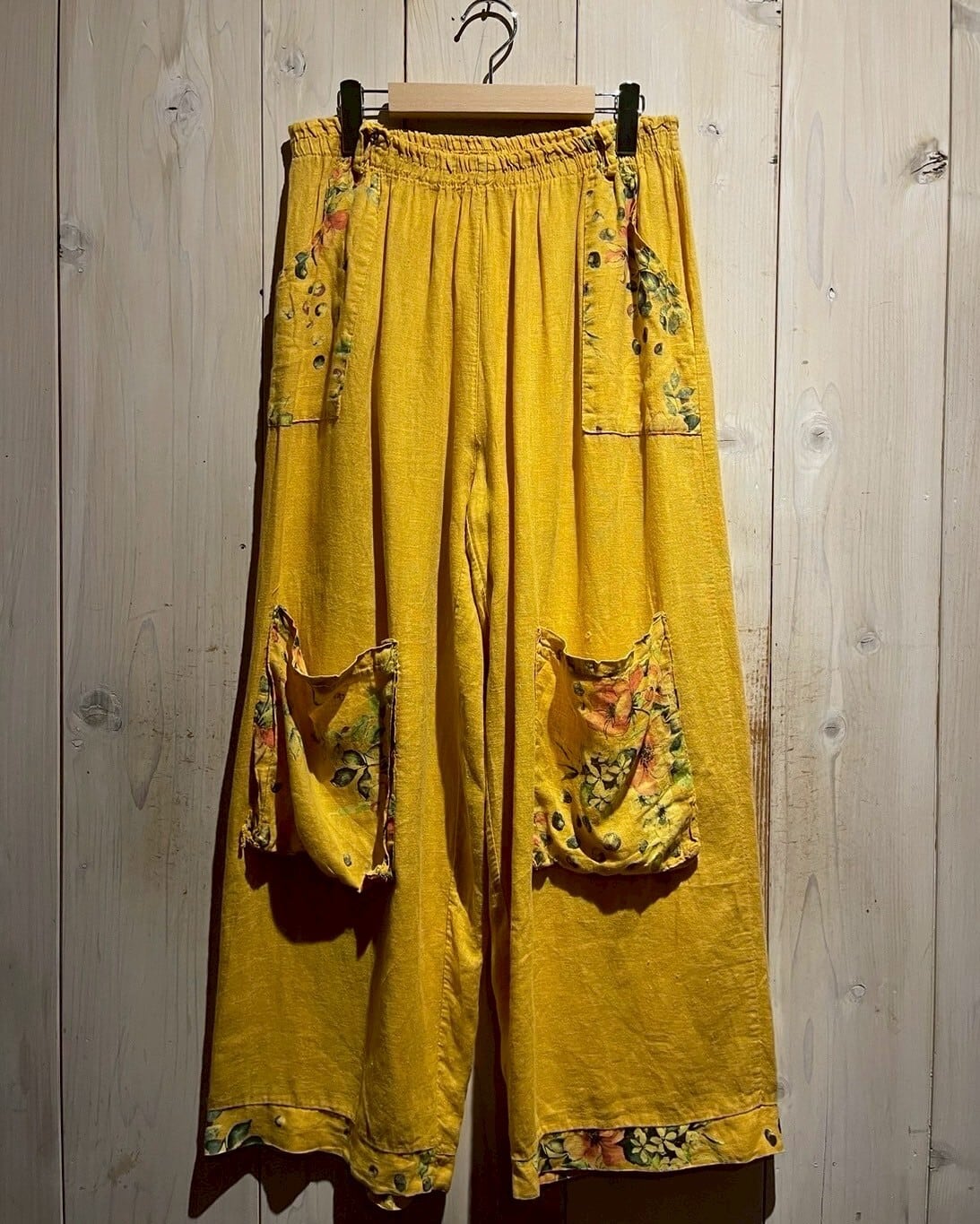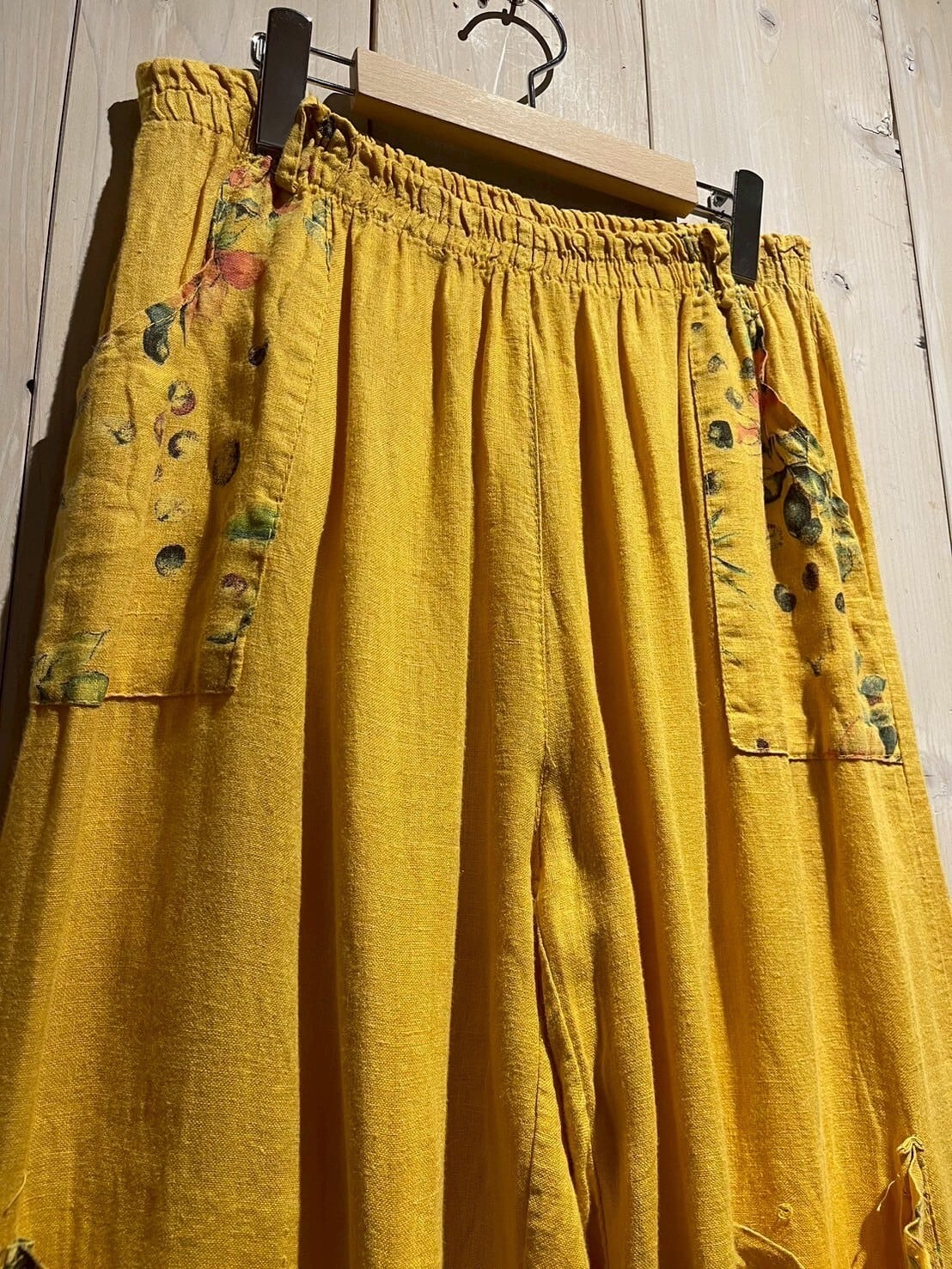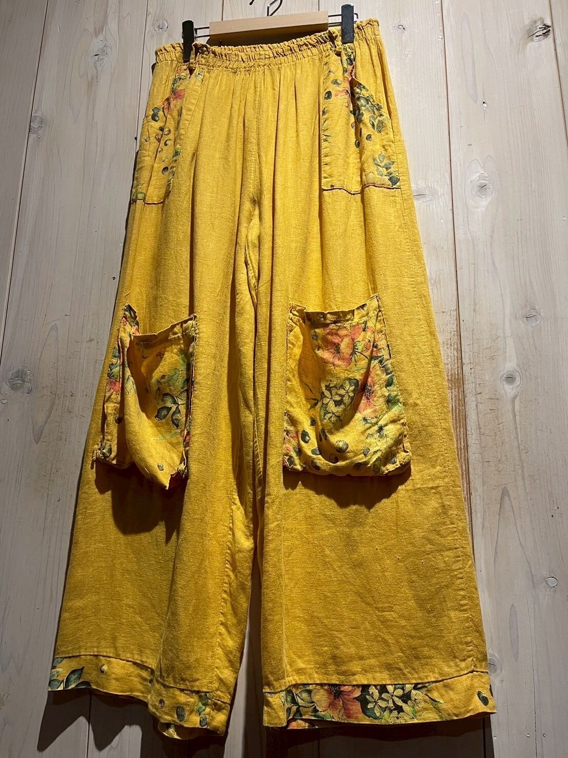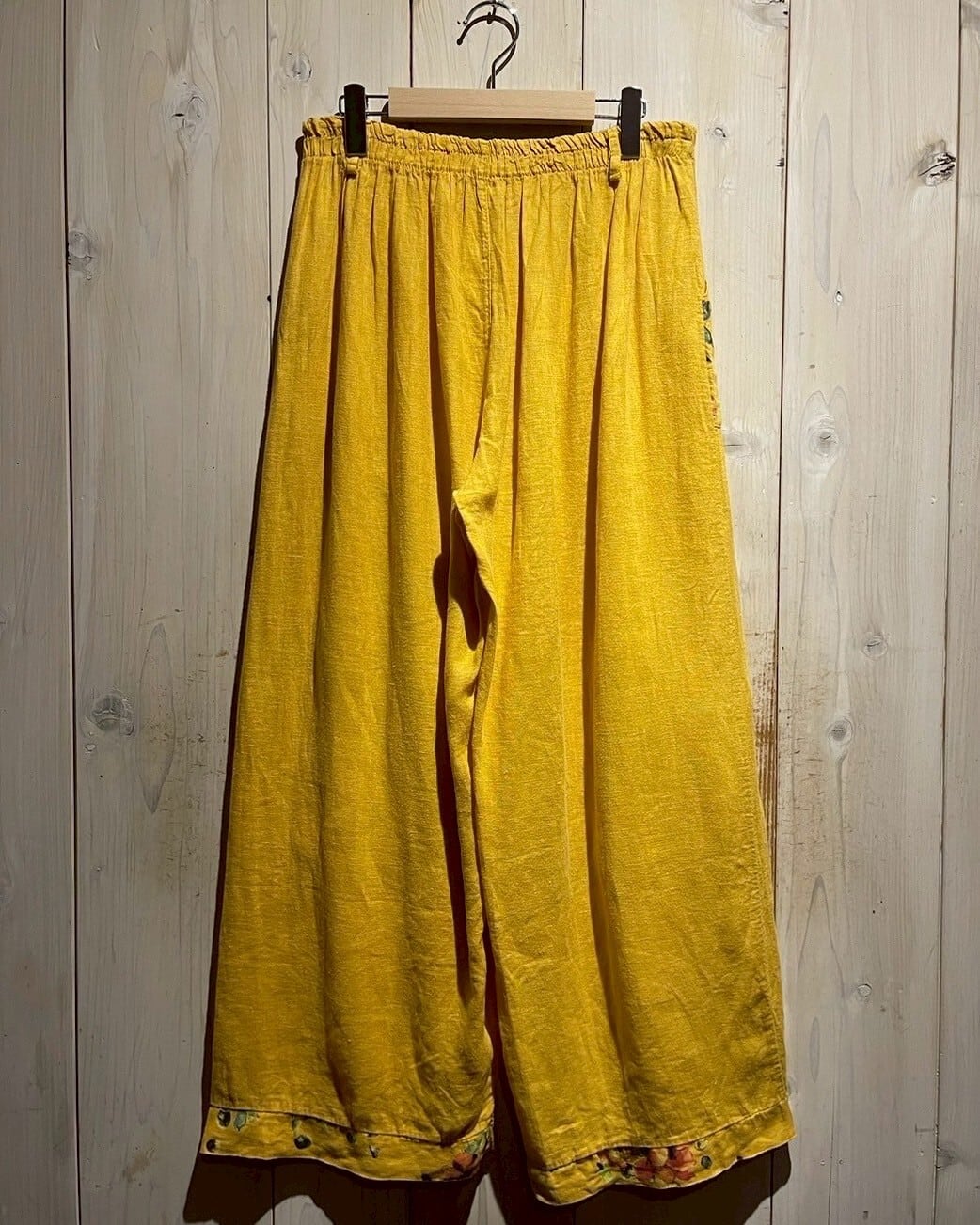 着れば着るほど味が出て育つ素材、リネンを用いたワイドシルエットのイージーパンツ。カラーにレトロな花柄のデザインや生地感、素晴らしいパターンニングが相まって美しい落ち感を演出してくれます。