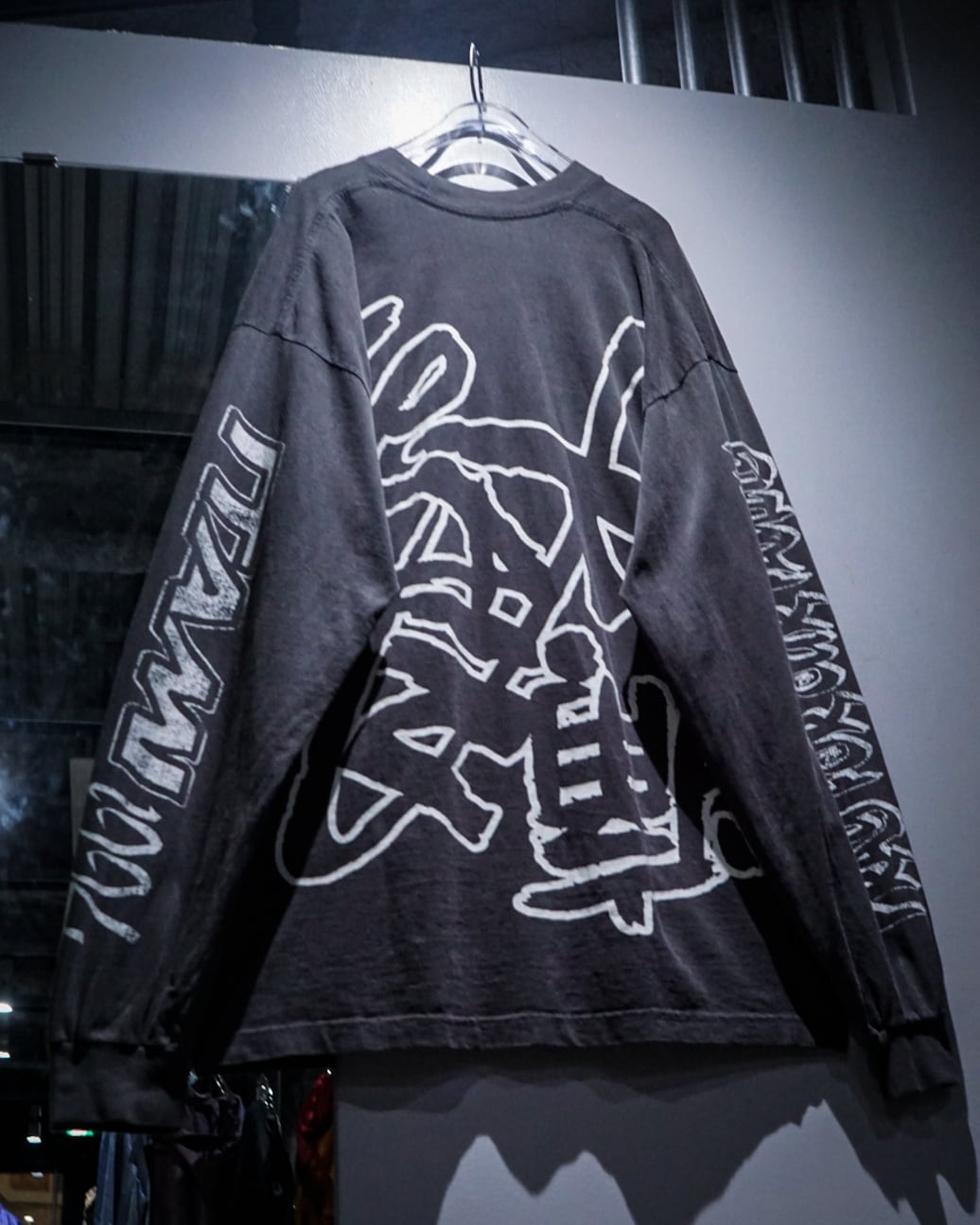 背面には漢字で"痛み"のデザイン。バックカルチャーのあるグラフィックの中にどこか抜け感のあるデザインバランスが絶妙なんです。ボディ全体にプリントされた抜かりないデザインのクオリティも◎