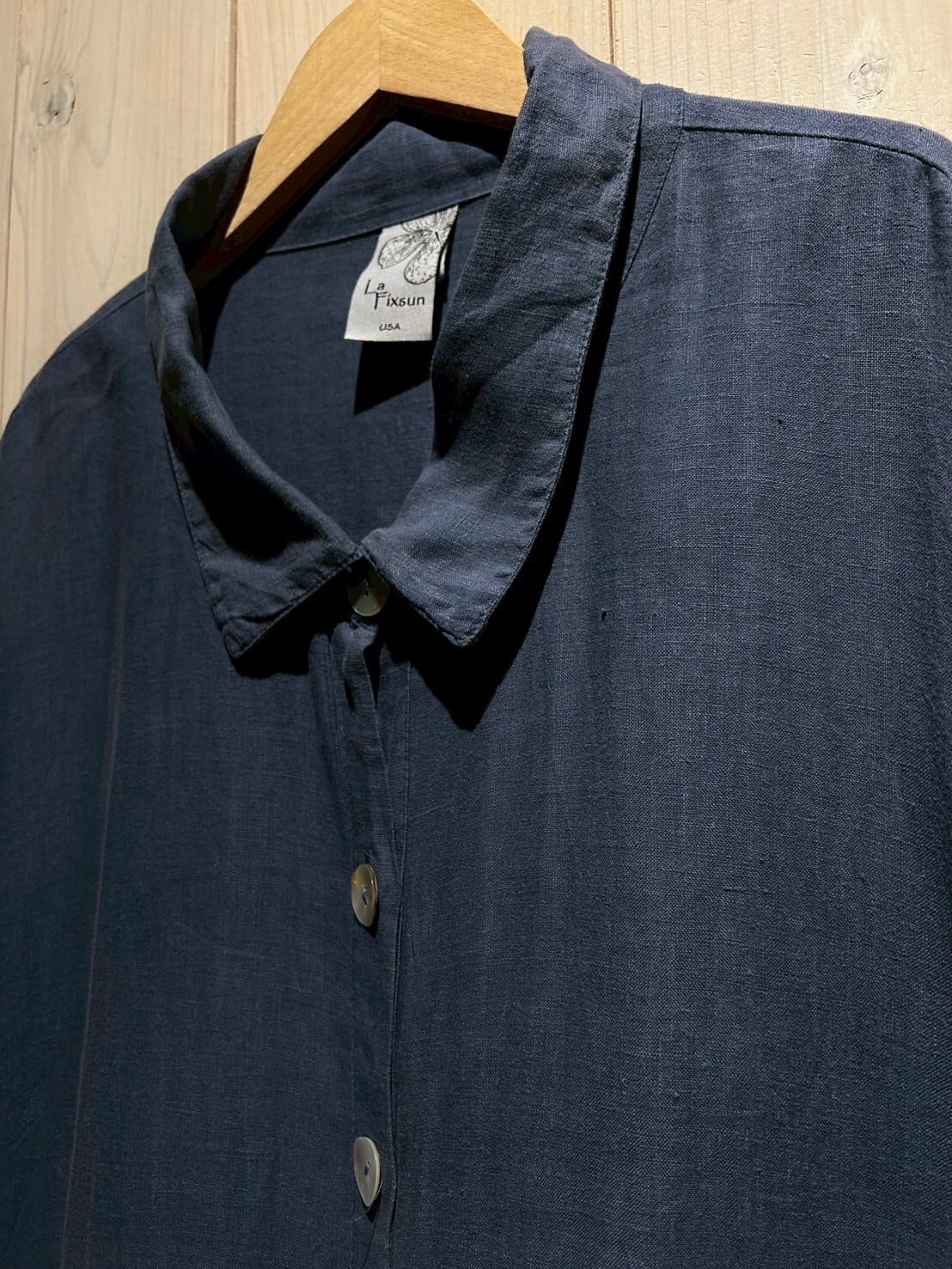 ボディのリネン素材は程よくヤレ感がありドレープ感を表現。特徴的なシルエットをしていますが、着用時にはスッと体に馴染みリネン特有の味をお楽しみいただけます。