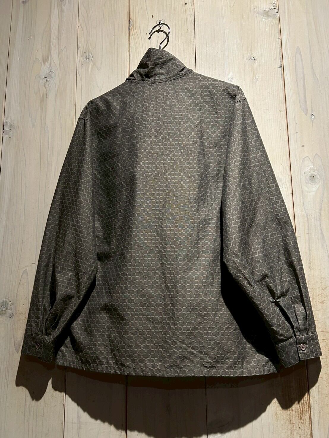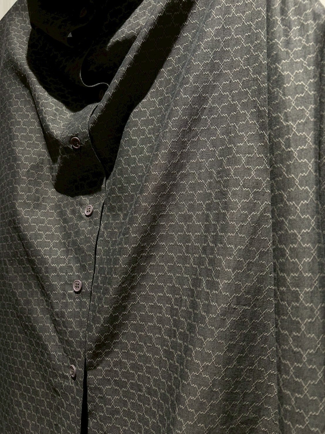 ブラウンのボディをベースに織りによって柄模様を載せ、さらにギミックを施した長袖シャツ。