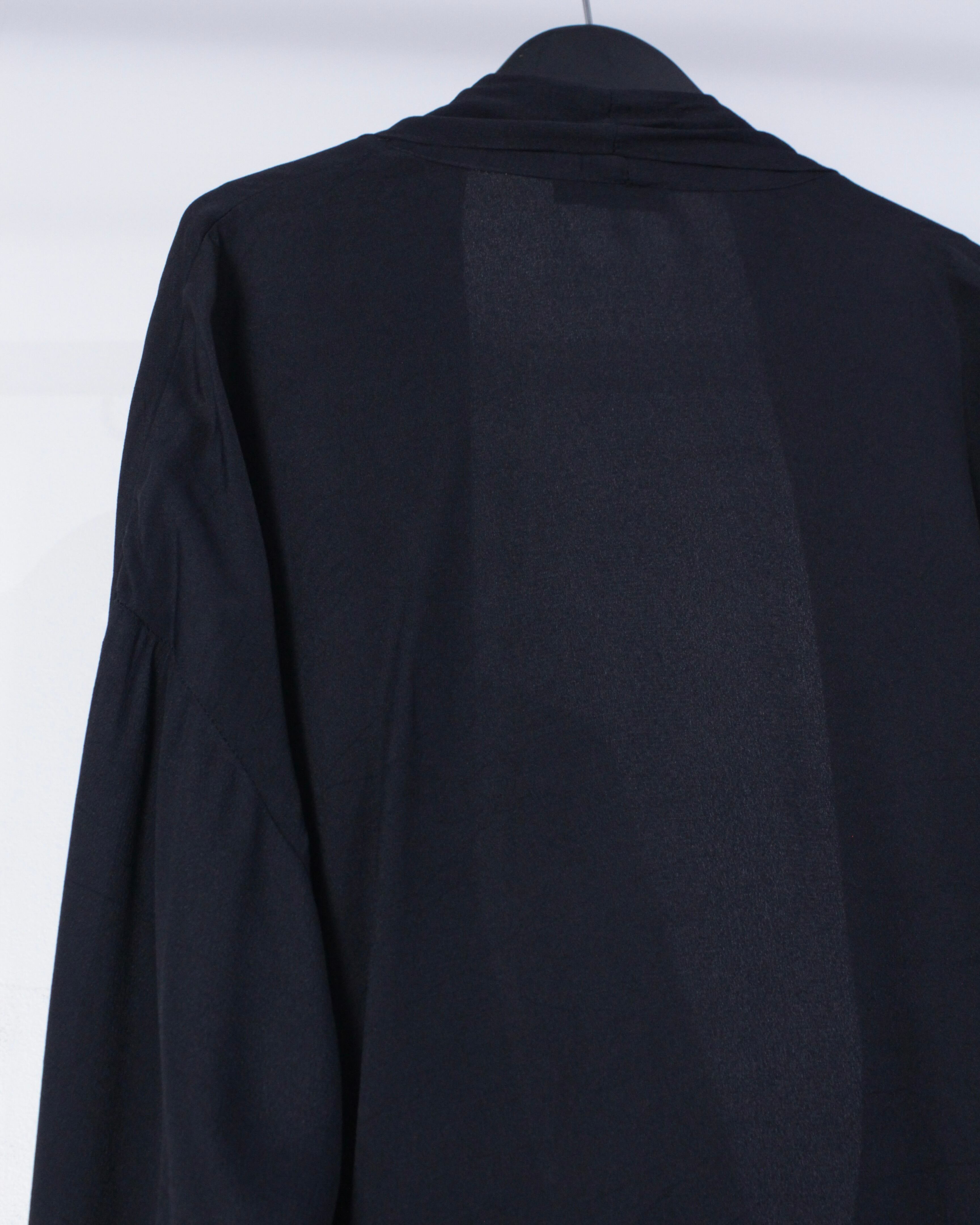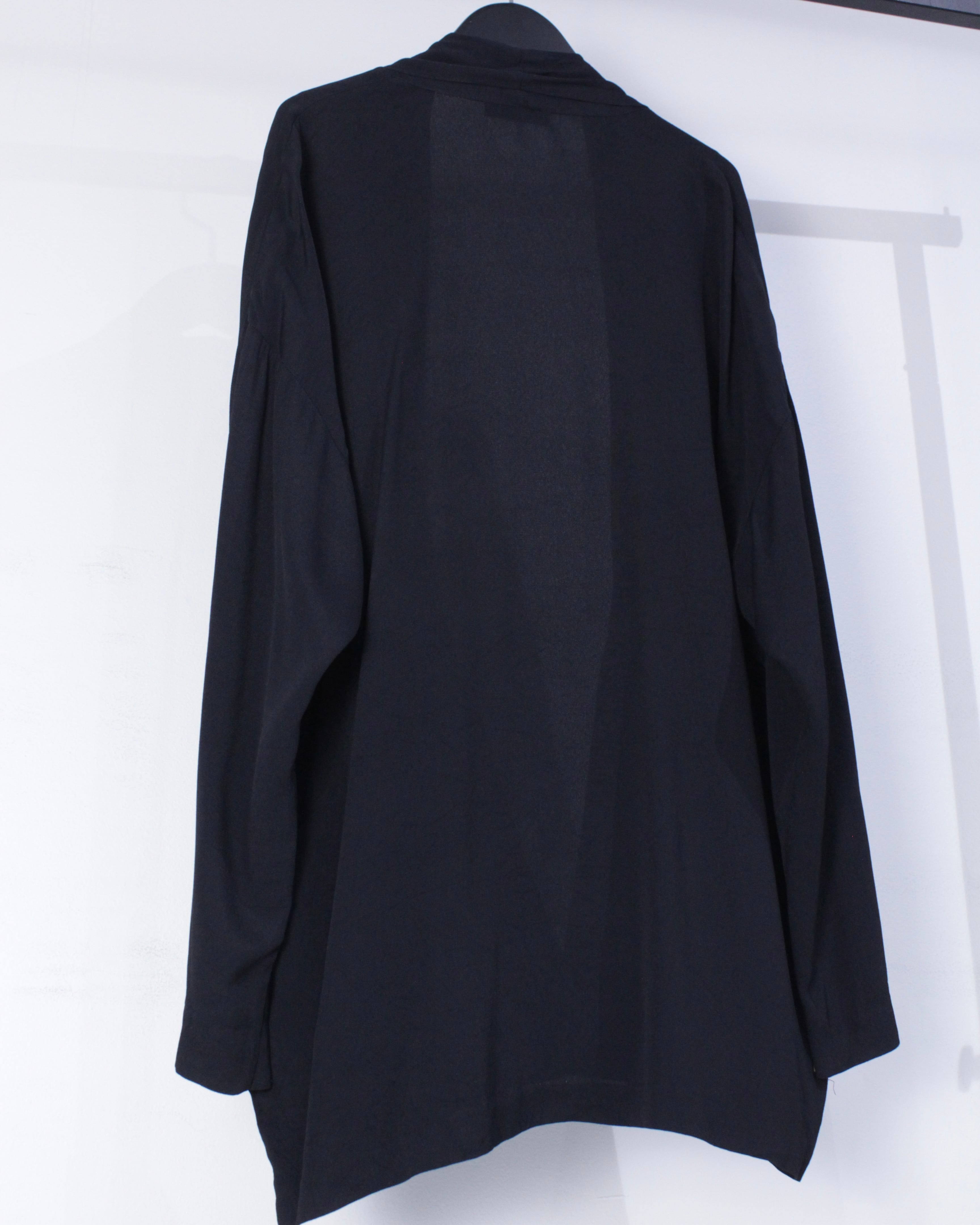 フロントは羽織りならではのボタンレスの仕様。身幅、アームホールが広く採られたルーズなサイジングでレイヤードの幅は無限大、様々なコーディネートに組み込めます。