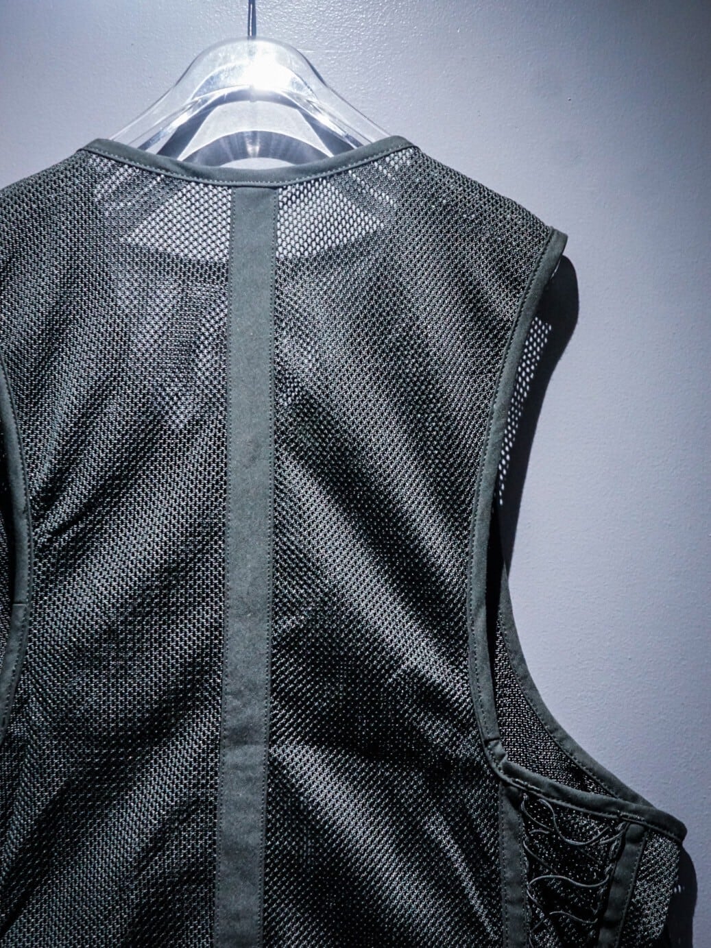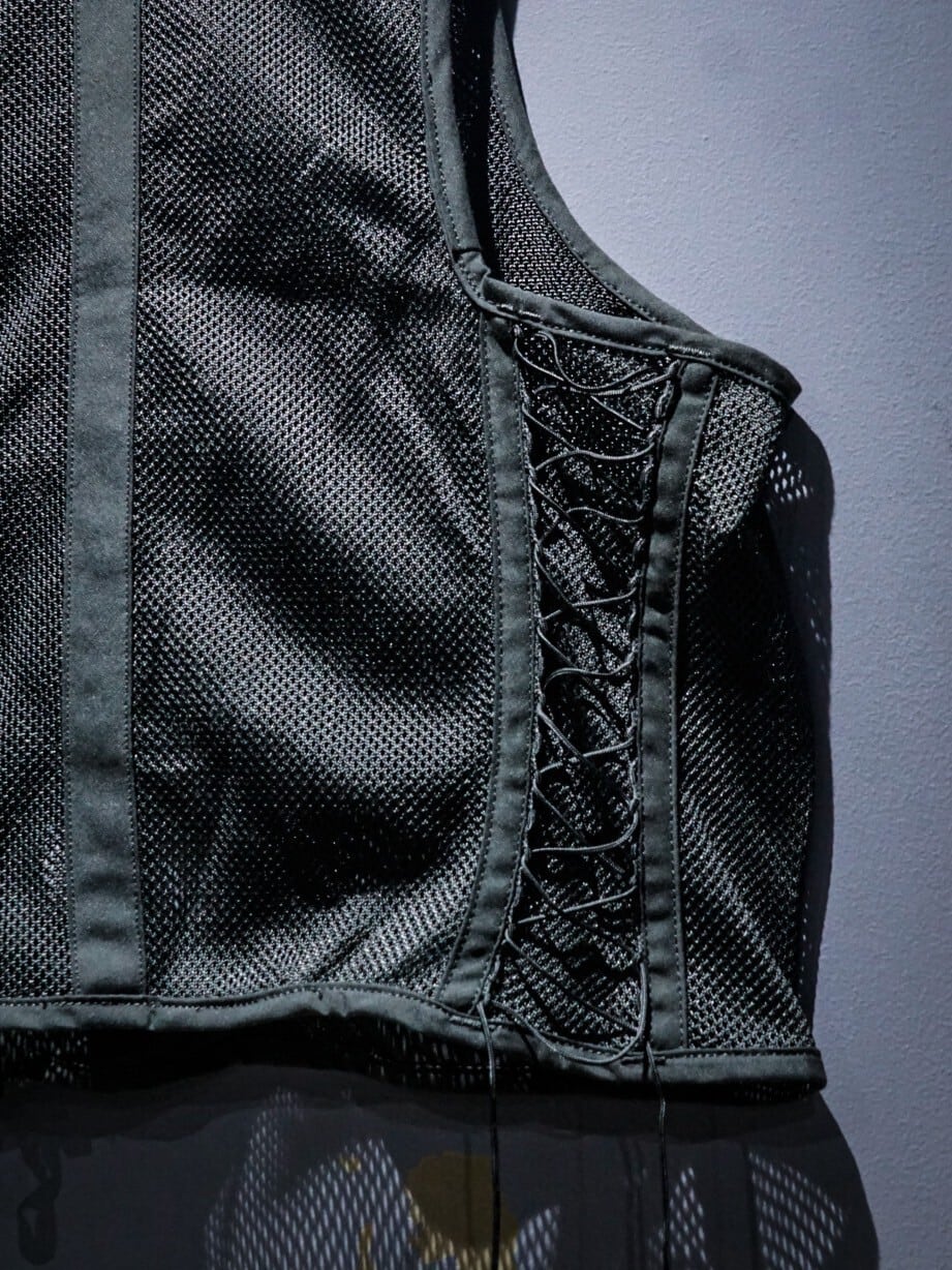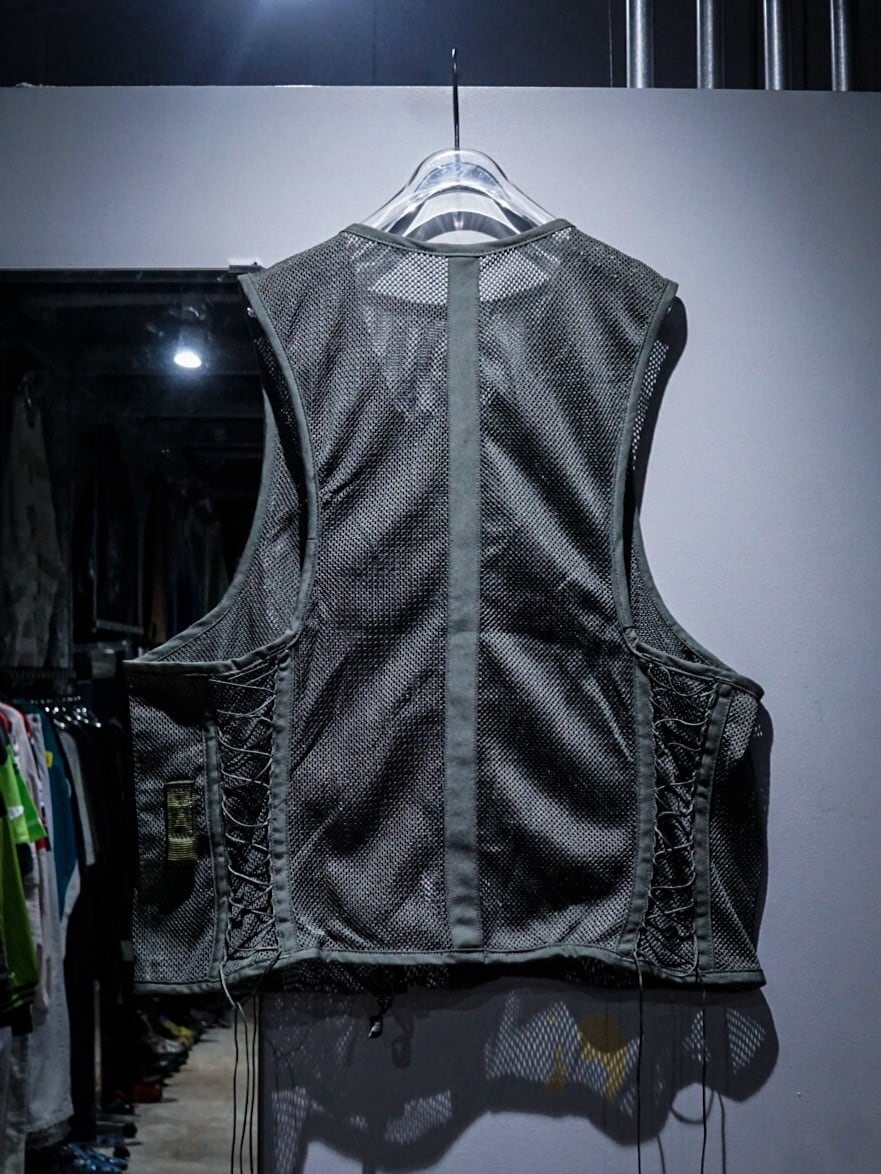 メッシュ素材をボディに使用する事で、通気性良く軽やかに着用でき、ナイフホルダーや無線機等を装着できるディテール等、ミリタリーらしい機能性の高いデザインに。
